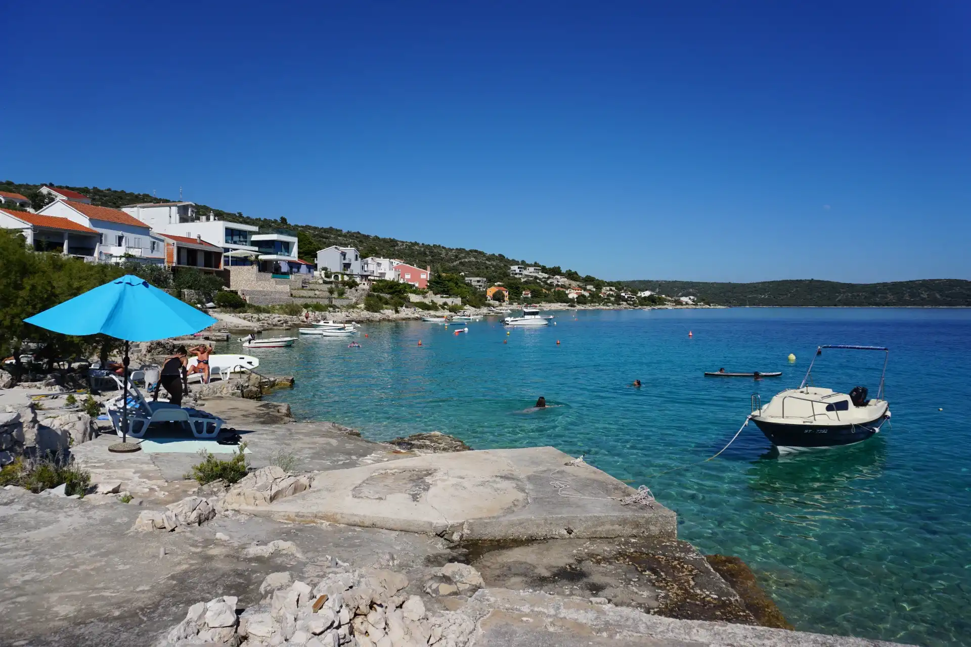 Vous recherchez un endroit pour vous détendre juste à côté de la mer cristalline, loin du bruit de la ville, et pourtant à proximité des installations nécessaires pour des vacances parfaites ? Alors vous pouvez envisager la maison de vacances Galeb. Nous sommes situés dans le petit village touristique de Sevid, entouré par la mer sur trois côtés. La petite île voisine occupera votre regard, qu'il vous faudra photographier ou nager. Nous proposons un hébergement de deux chambres comprenant une chambre avec un lit king et une chambre avec deux lits simples, des toilettes, une cuisine, un petit salon et une véranda entourée d'oliviers de 35 ans. A l'extérieur du bâtiment se trouve une cour avec une pergola, un barbecue, 2 transats et un parasol toujours à votre disposition. Un parking privé est également disponible. La plage de sable se trouve à seulement quelques pas de la propriété. Un restaurant, un café et un marché se trouvent également à proximité. Si vous êtes intéressé par des activités complémentaires, comme des excursions en bateau à la journée ou en location de bateaux, ou toute autre activité estivale, nous nous ferons un plaisir de vous aider à trouver ce qui vous intéresse. Pour toute question ou aide, nous sommes à la disposition de notre invités.