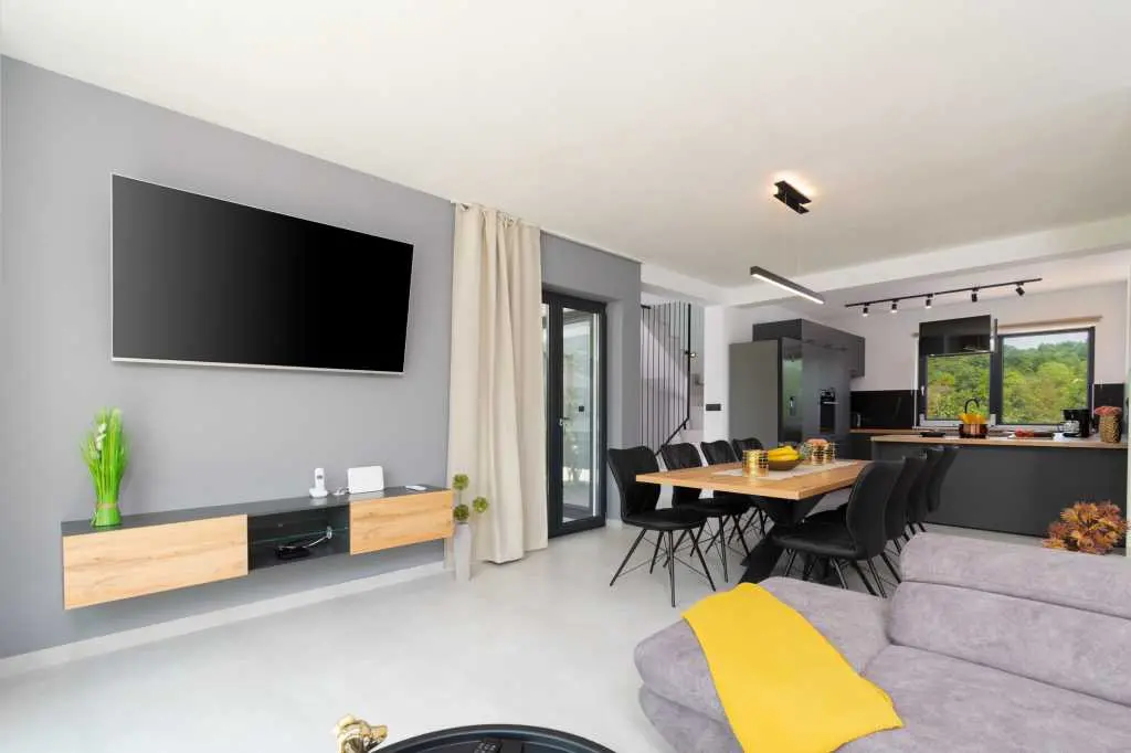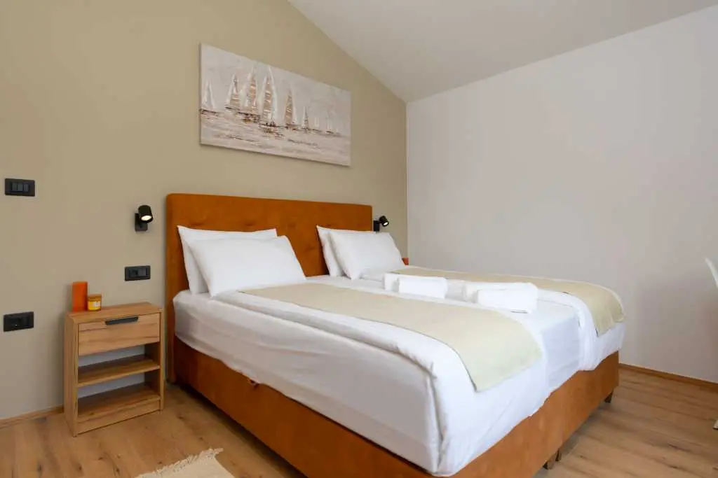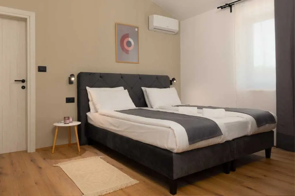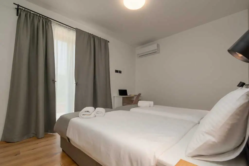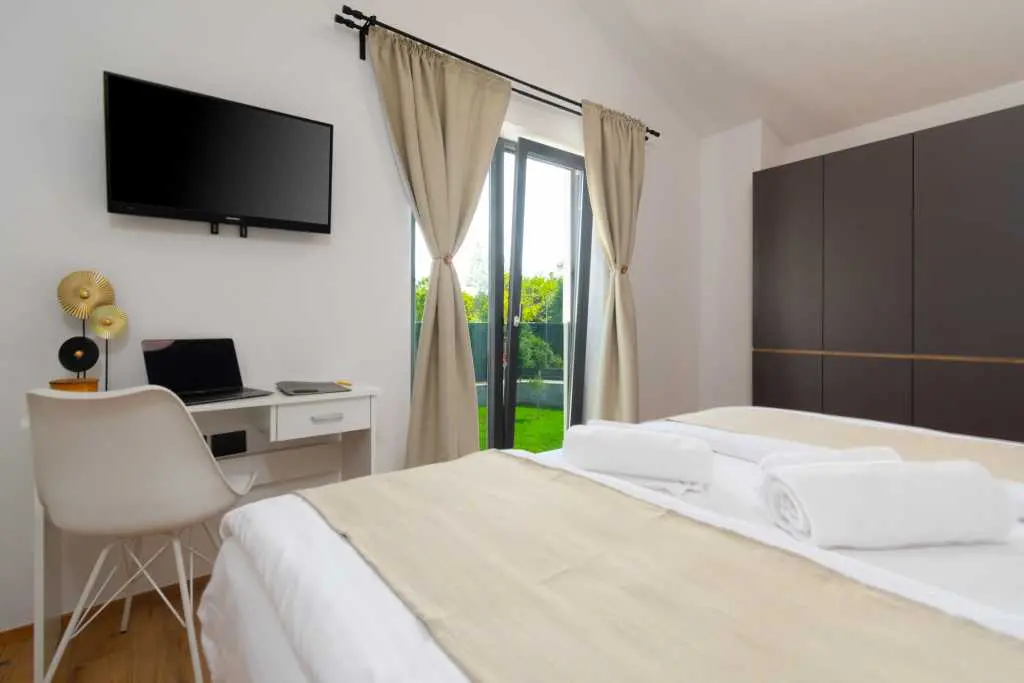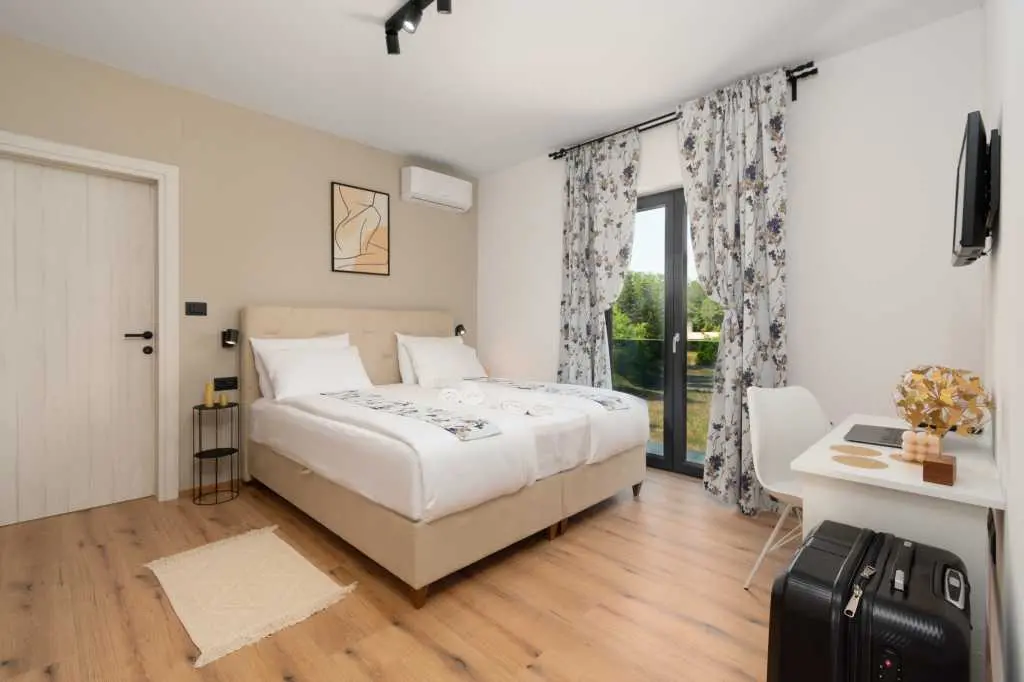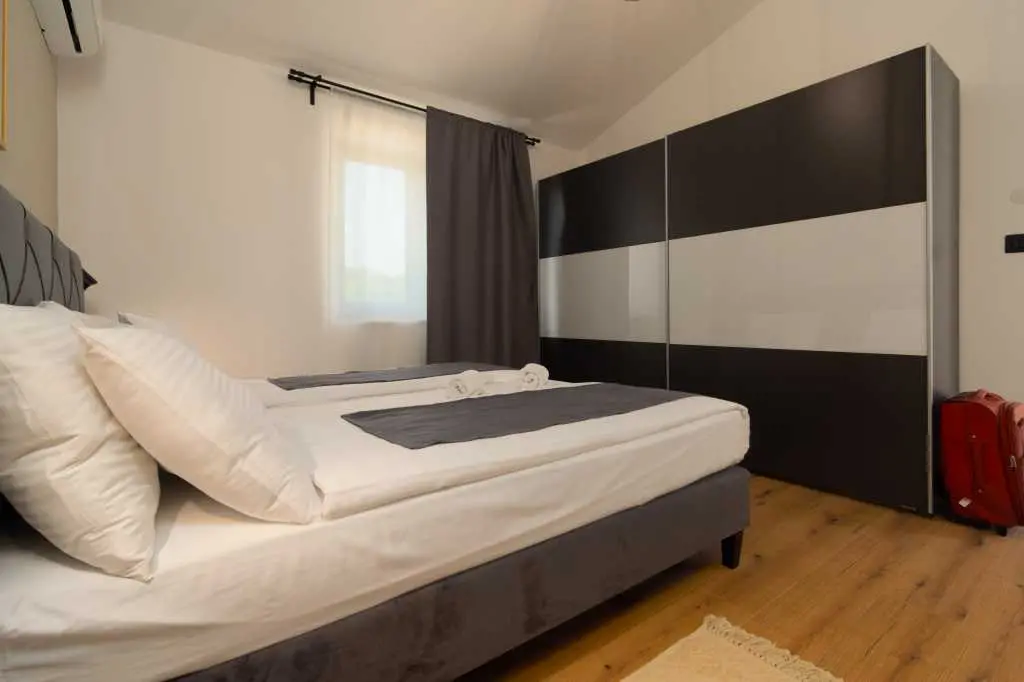 Dès que vous entrez dans la villa, vous êtes accueilli dans la zone la plus importante de la maison où vous passerez une grande partie de votre temps. Sur la droite, vous trouverez une cuisine entièrement équipée avec tout ce dont vous pourriez avoir besoin pour montrer vos talents de cuisinier. Sur votre gauche, il y a un salon avec une belle fenêtre surdimensionnée futuriste qui vous donne l'impression d'être fusionné avec le monde extérieur tout en profitant de vos films et émissions Netflix préférés dans une résolution 4K nette livrée sur un immense écran de 65 pouces. Le centre de la pièce est occupé par une table à manger en bois franc reliant la cuisine et le salon complétant ainsi la cohésion d'un espace contrôlé par un système d'éclairage à intensité variable vous permettant d'ajuster la luminosité de la pièce à votre guise. Pour ceux qui ne peuvent pas résister à ces collations de fin de soirée, il y a une chambre en suite au rez-de-chaussée à quelques pas de la cuisine, ce qui permet de voler facilement la nourriture de vos amis et de votre famille pendant la nuit :) les escaliers menant au sous-sol, vous trouverez une autre chambre avec sa propre salle de bain. En montant à l'étage supérieur, vous vous familiarisez avec 2 chambres MASTER avec salle de bains privative partageant un charmant balcon où vous pourrez lire quelques livres, vous détendre avec quelques verres ou simplement profiter des chauds rayons du soleil. Deux chambres sont prêtes à travailler offrant un bureau et une connexion WiFi avec une vitesse allant jusqu'à 40 Mbps. Ils disposent également d'une télévision par satellite et d'un balcon français modernisé donnant aux chambres une toute nouvelle dimension. Au moment où vous vous réveillez le matin et descendez, vous avez 2 options pour commencer votre journée. Allez dans la cuisine et préparez-vous un café/thé, ou avancez par les portes du balcon et sautez directement dans une piscine. Le choix t'appartient! Une fois que la lumière du jour s'estompe et que la nuit d'été prend le devant de la scène, toute la propriété est complétée par des veilleuses, des lumières ambiantes du balcon à la lumière de la piscine, créant une atmosphère calme et maussade. N'oubliez pas que la maison a beaucoup de fenêtres et de portes en verre ajoutant une autre couche à toute l'expérience de la nuit, rendant tout un peu plus éclatant. Mélangez cela avec une salle à manger extérieure donnant sur la piscine et vous avez une formule parfaite pour des soirées d'été idéales. Cette formule comprend bien sûr un excellent hébergement avec des réponses rapides, beaucoup de recommandations et de conseils, une communication facile et une grande attention globale aux détails, alors venez rester avec nous, nous serions heureux de vous avoir comme invités :)