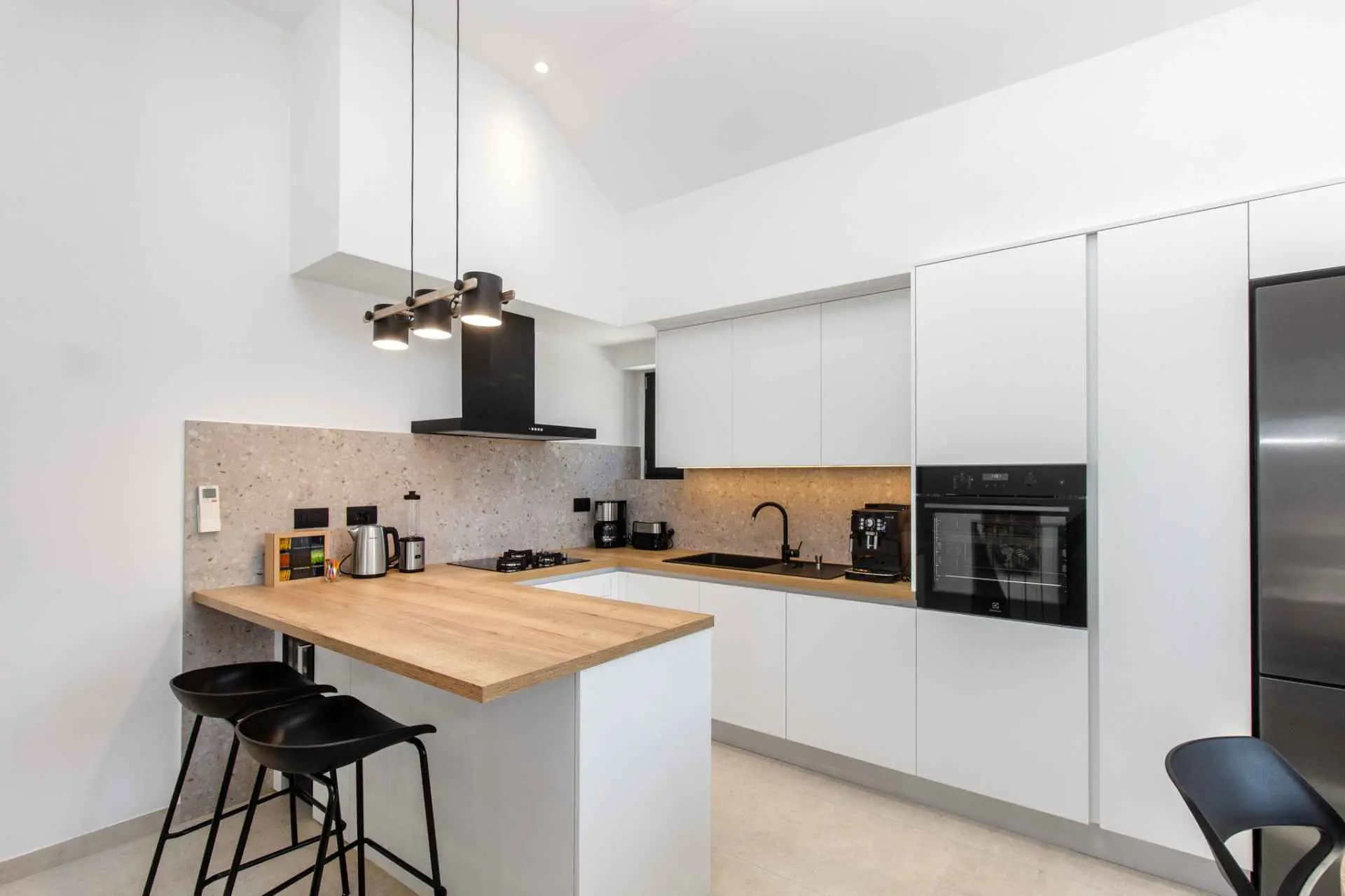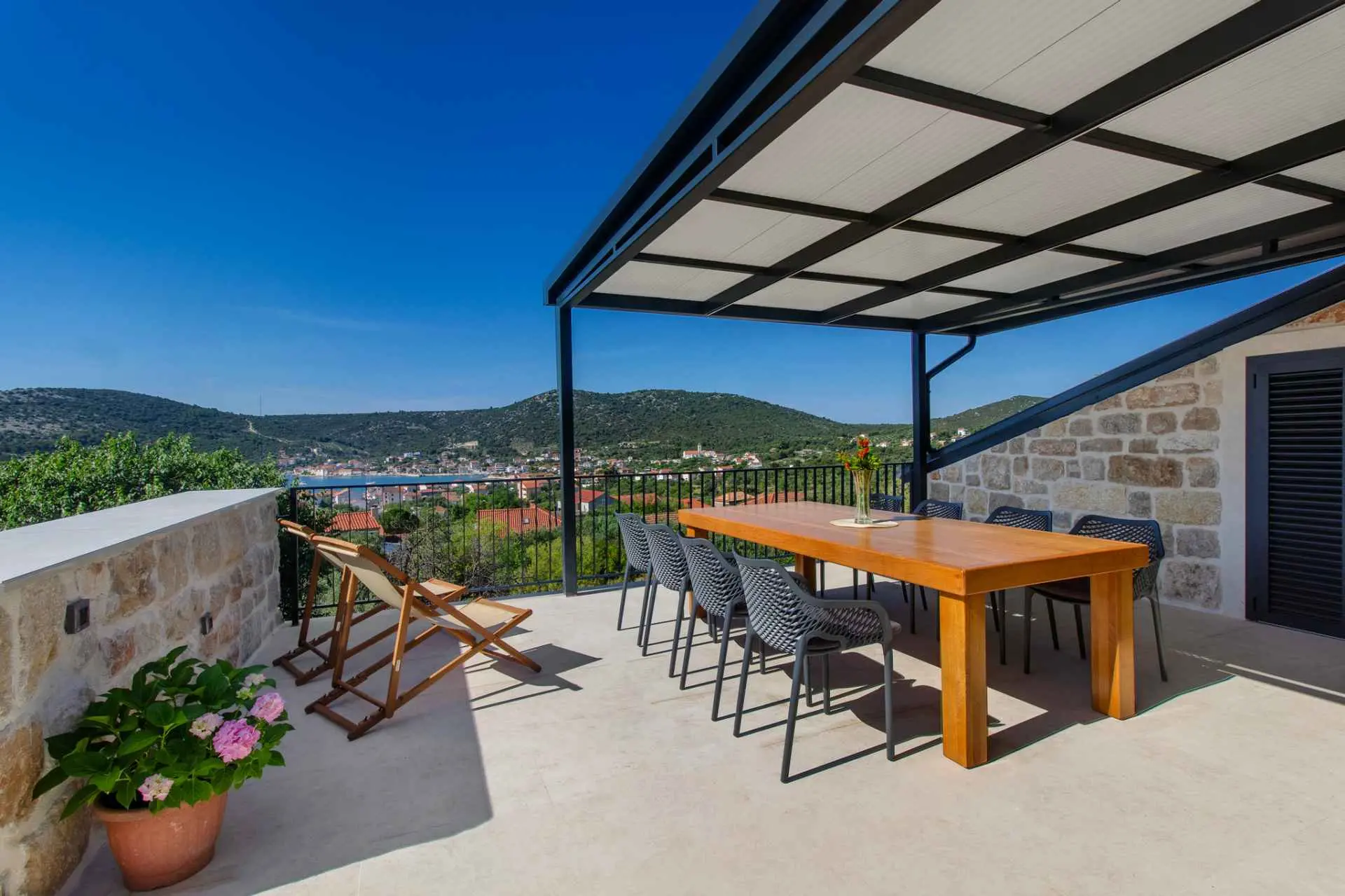 Découvrez une magnifique villa moderne nichée dans la charmante ville de Vinišće, idéale pour les familles et les petits groupes en quête de vacances croates inoubliables. Ce logement spacieux peut accueillir confortablement jusqu'à 6 adultes et 2 enfants, avec 3 chambres équipées de 3 lits king-size et d'un canapé-lit double pratique. La villa dispose d'une gamme impressionnante d'équipements pour vous garantir un séjour confortable et agréable. Profitez de la piscine privée chauffée de 2,70 x 6,90 mètres, idéale pour vous détendre et vous rafraîchir pendant les chaudes journées d'été. Les espaces extérieurs sont tout aussi accueillants, avec une terrasse ensoleillée, un espace barbecue, un coin repas extérieur et du mobilier de jardin. À l'intérieur, la villa offre des commodités modernes telles que la climatisation, le chauffage au sol et le Wi-Fi. La cuisine entièrement équipée comprend tous les appareils électroménagers essentiels comme un réfrigérateur, un lave-vaisselle, un four, une machine à café, etc. Pour vous divertir, quatre télévisions connectées sont à votre disposition. Avec ses 3 salles de bains privatives et ses toilettes séparées, ses grands espaces et ses équipements pratiques comme une planche à repasser, une trousse de premiers secours et un extincteur, la Villa Mare vous assure confort et sécurité. La propriété accepte les animaux de compagnie, jusqu'à deux sur demande et moyennant un supplément. Un parking privé pour deux voitures est également disponible. Située à seulement 1 000 mètres de magnifiques plages de sable et de rochers, la villa offre un accès facile aux commodités locales. Un supermarché se trouve à moins de 700 mètres, et plusieurs restaurants et cafés sont à proximité. Explorez les magnifiques environs, avec l'aéroport de Split à seulement 26 kilomètres et le magnifique parc national de Krka accessible en voiture. Profitez d'une vue imprenable sur la mer, la piscine et le jardin depuis ce havre de paix croate idyllique. La Villa Mare vous attend pour des vacances inoubliables ! Arrivée autonome. Lit bébé et chaise haute disponibles sur demande. Les animaux de compagnie sont admis sur demande moyennant un supplément de 15 euros par animal et par nuit à l'arrivée. 2 animaux maximum autorisés. Il est interdit de fumer dans la maison, uniquement à l'extérieur. Un parking pour deux voitures est disponible. La maison peut accueillir jusqu'à 6 adultes et 2 enfants. Trois salles de bains privatives et des toilettes séparées. Playstation 5 dans le salon. Toutes les chambres sont équipées de la télévision, de la climatisation et d'un accès au jardin. Piscine extérieure avec douche, chaises longues, barbecue et coin repas. Chauffage au sol pour la saison froide.