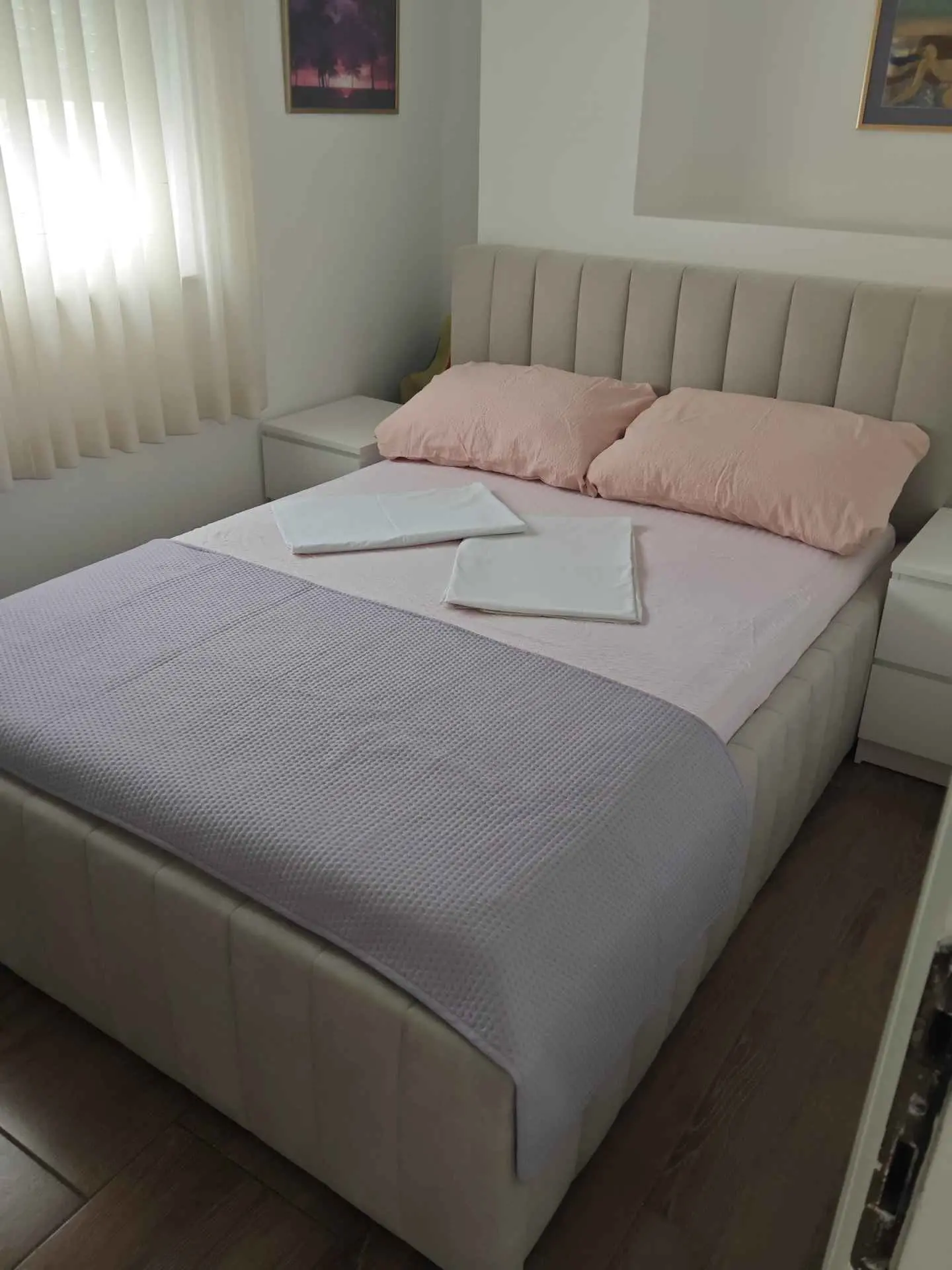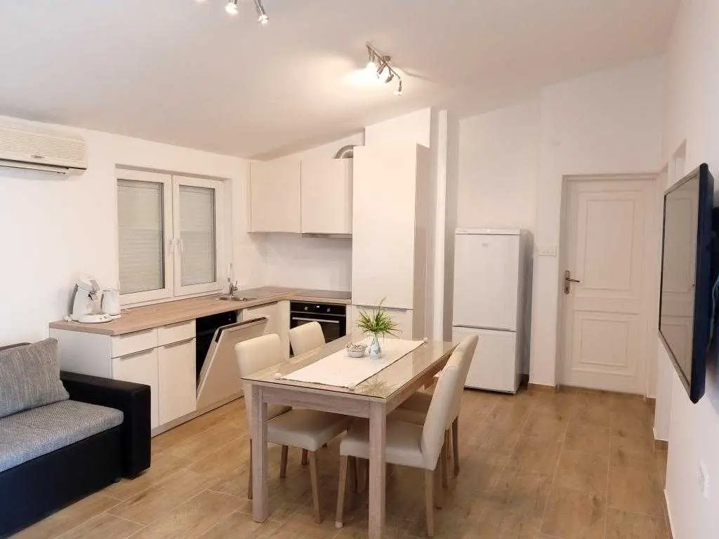 L'appartement Nina est situé au premier étage d'une maison familiale et il se compose de 3 chambres, d'un séjour avec cuisine, d'une salle de bain avec WC et d'un autre WC séparé. L'appartement dispose d'une grande terrasse semi-couverte avec un grand barbecue qui est clôturé pour la sécurité où les enfants peuvent jouer. La plage est à seulement trois minutes à pied où se trouve le restaurant. Verre de bienvenue gratuit. Nous sommes à votre service pour toutes informations. Bienvenue!