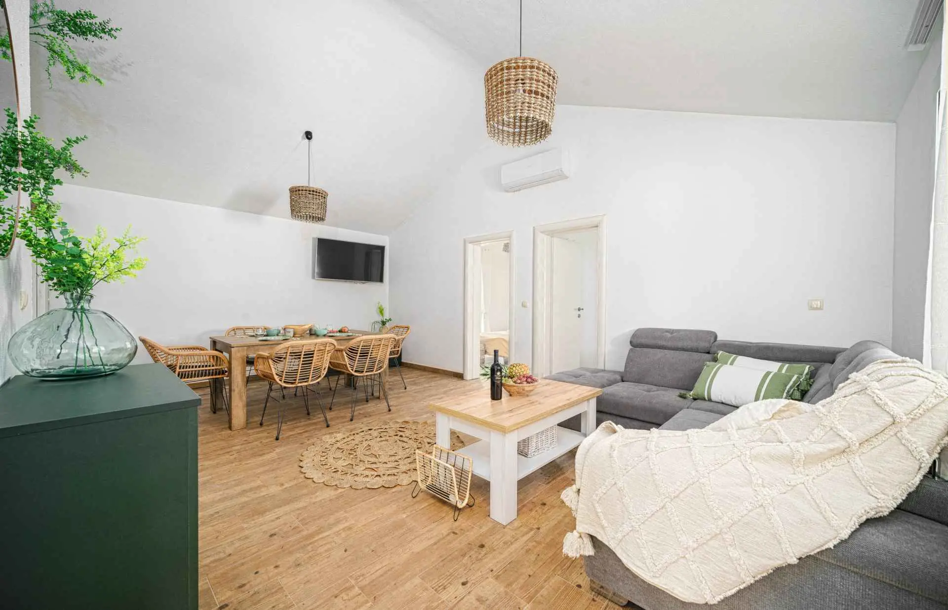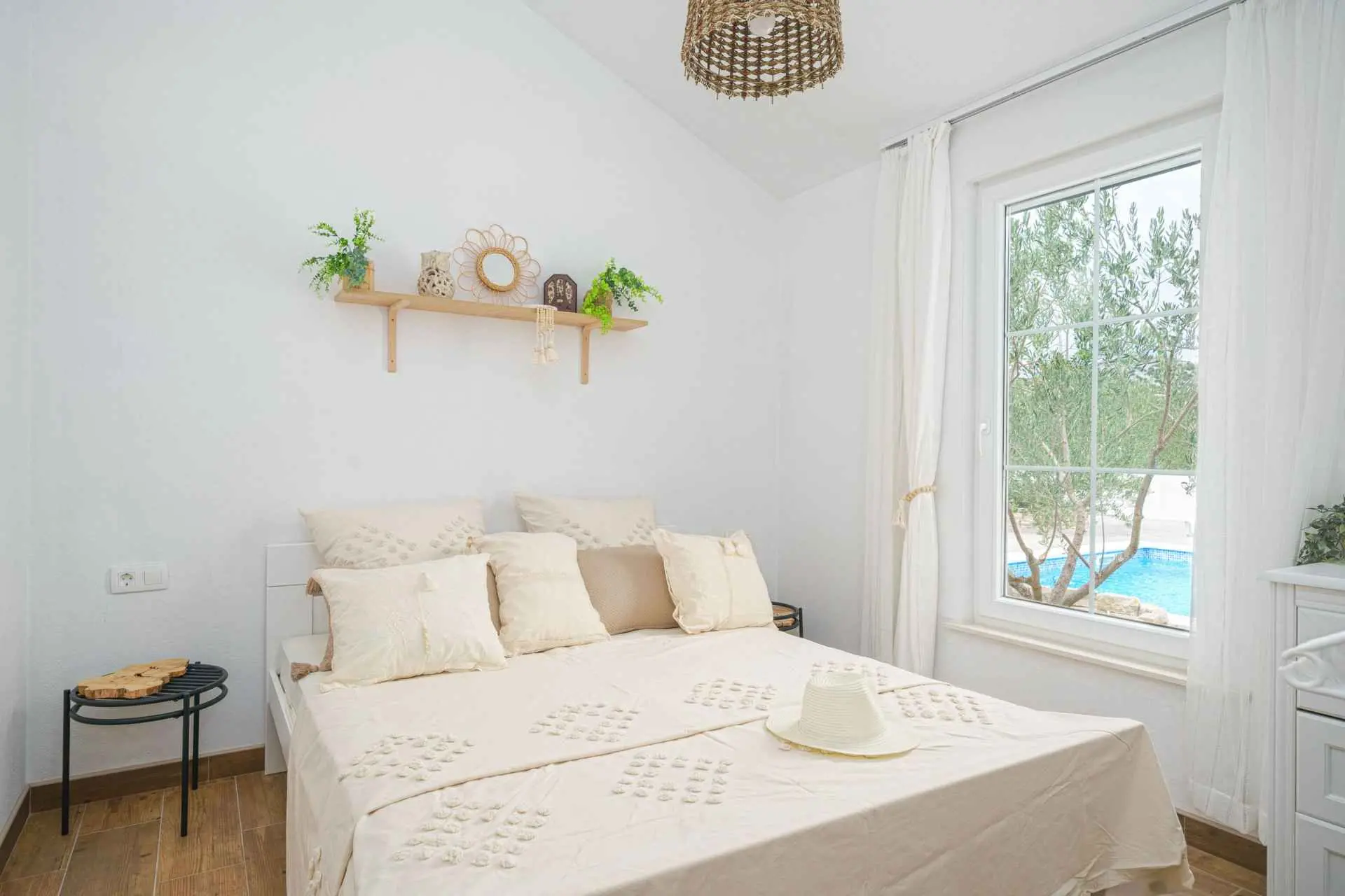 Découvrez un havre de paix moderne et confortable niché dans le charme rural de Vodice, en Croatie. Cette charmante villa allie parfaitement confort et commodité pour les familles et les petits groupes en quête de vacances inoubliables. Pouvant accueillir jusqu'à 4 adultes et 2 enfants, la Villa Ivana dispose de deux chambres aux couchages modulables, dont un lit double, un canapé-lit double et deux lits simples. La villa dispose de deux salles de bains avec douche et de toilettes supplémentaires, garantissant confort et intimité à tous les hôtes. Au cœur de la villa se trouve une kitchenette équipée d'équipements modernes tels qu'une cuisinière à gaz, un réfrigérateur, un congélateur, un lave-vaisselle, une cafetière et toute la vaisselle nécessaire. Le spacieux salon et la salle à manger offrent un espace généreux pour se réunir et profiter de moments conviviaux. À l'extérieur, vous trouverez une belle piscine privée de 8 x 4 mètres, entourée d'une terrasse ensoleillée avec mobilier de jardin et chaises longues. Le terrain clôturé de 800 m² comprend un jardin, un espace barbecue et une terrasse de 40 m², idéale pour les repas en plein air et la détente. Pour vous divertir, vous trouverez une télévision connectée à écran plat, une table de ping-pong et un espace enfants. La villa offre également des équipements pratiques tels que la climatisation, le Wi-Fi, un coffre-fort et un fer à repasser. Située à seulement 8 km des magnifiques plages et du centre de Vodice, la Villa Ivana offre un accès facile aux restaurants, cafés et attractions locales. Parmi les attractions à proximité, citons le parc national de Krka, le lac de Vrana et l'aéroport de Zadar, ce qui en fait un point de départ idéal pour explorer la magnifique côte dalmate. Un animal de compagnie bien élevé est le bienvenu et la propriété dispose d'un parking privé pouvant accueillir jusqu'à trois véhicules. Veuillez noter que les événements et les groupes de jeunes ne sont pas autorisés. L'accès à la maison se fait par un chemin de terre. Utilisez le lave-linge et les autres appareils électroménagers pendant la journée, car ils sont alimentés par l'énergie solaire. Un lit bébé et une chaise haute sont disponibles sur demande. Les petits animaux de compagnie sont admis moyennant un supplément de 10 EUR par nuit, payable à l'arrivée. Il est interdit de fumer dans la maison, uniquement à l'extérieur. Un parking est disponible pour trois voitures. Coin salon, barbecue, piscine, douche, transats et trampoline. Accessible aux personnes à mobilité réduite.
