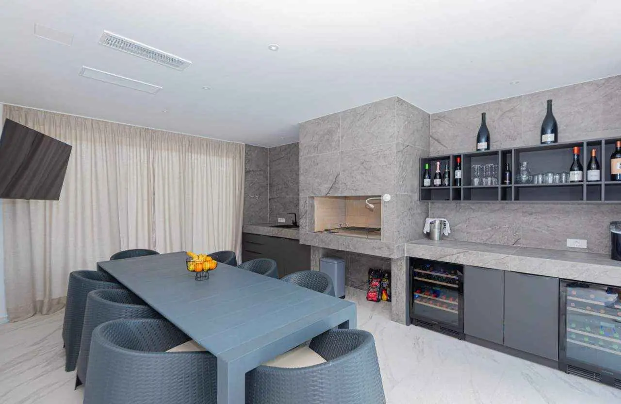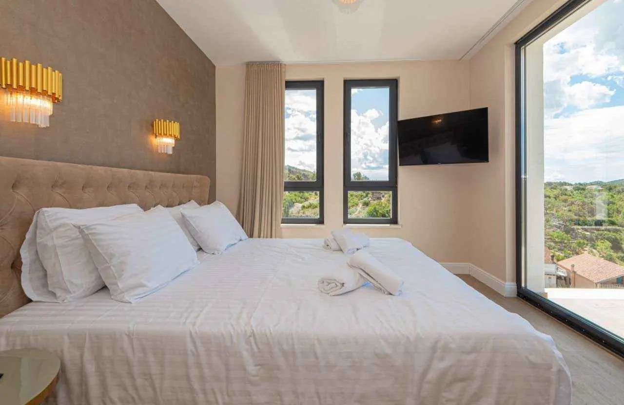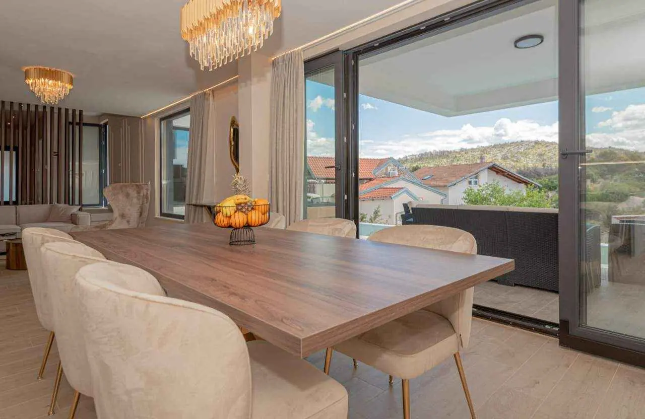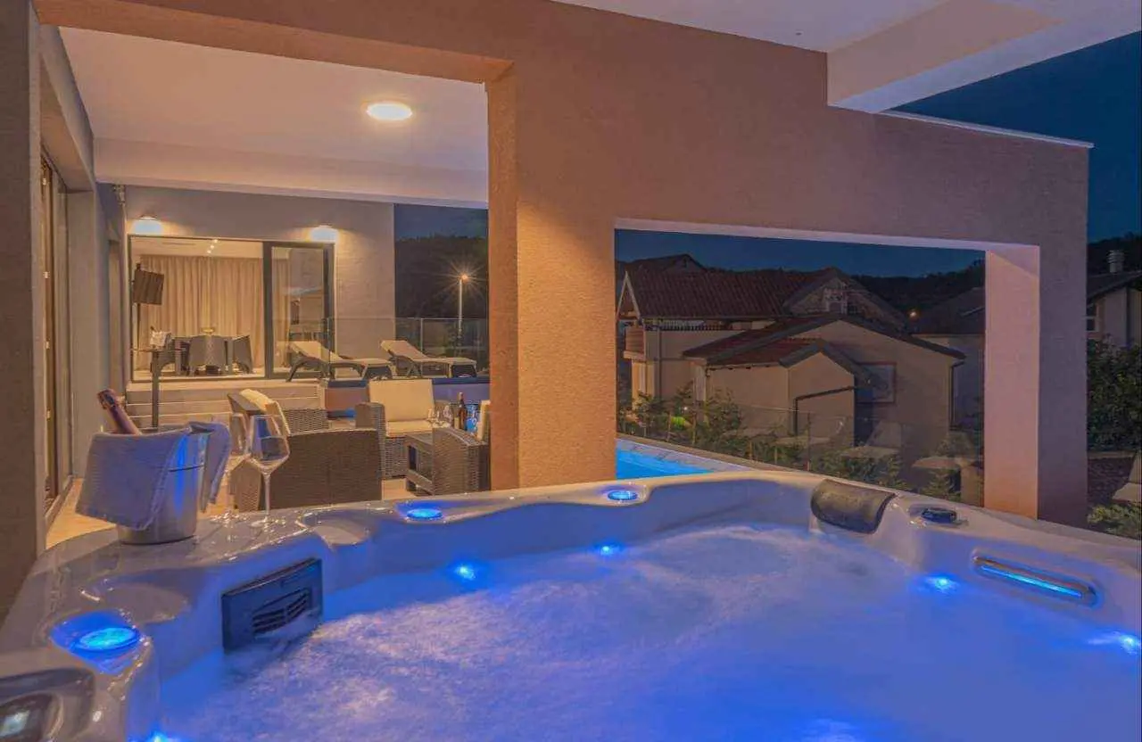 Évadez-vous dans notre superbe villa dans la charmante ville de Zaton ! Cette propriété moderne et magnifique allie confort et luxe, avec une gamme d'équipements haut de gamme pour un séjour inoubliable. Plongez dans un intérieur spacieux et bien aménagé, où vous trouverez 4 chambres douillettes, chacune dotée de son propre charme. Installez-vous confortablement dans les lits moelleux, avec un choix de lits king-size ou queen-size, et réveillez-vous frais et dispos, prêt à explorer la région. La villa dispose de 3 salles de bains, avec douche et toilettes séparées, garantissant intimité et confort à tous les hôtes. Profitez de la chaleur apaisante du sauna privé ou détendez-vous dans le jacuzzi, idéal pour un moment de détente après une journée d'aventure. À l'extérieur, vous serez accueilli par une magnifique oasis de verdure. Profitez du soleil sur les confortables chaises longues ou allumez le barbecue pour un délicieux repas en plein air. La piscine privée de 13 x 3 mètres est l'endroit idéal pour se rafraîchir et profiter d'une baignade rafraîchissante. La cuisine moderne de la villa est équipée de tout le nécessaire, notamment d'un réfrigérateur, d'un congélateur, d'un four, d'un lave-vaisselle et bien plus encore, pour concocter de délicieux repas en toute simplicité. Savourez vos créations culinaires dans la spacieuse salle à manger ou sur le balcon, en admirant la vue magnifique. Restez connecté grâce au Wi-Fi haut débit et divertissez-vous grâce aux multiples téléviseurs à écran plat. Un bureau, une planche à repasser et un extincteur sont également à votre disposition pour votre confort et votre sécurité. Entourée d'un charmant jardin et d'un terrain clôturé, la villa offre un havre de paix et d'intimité. Explorez les attractions à proximité, notamment la magnifique plage de Zvizda, à seulement 2 kilomètres, et le centre animé de Zaton, à seulement 450 mètres à pied. Que vous recherchiez une escapade relaxante ou des vacances pleines d'aventure, notre villa à Zaton a tout pour plaire. Réservez votre séjour dès aujourd'hui et découvrez l'alliance parfaite du confort, du luxe et de la beauté naturelle. Le Wi-Fi et la climatisation sont gratuits. La climatisation est présente dans toute la maison. Le parking est gratuit et disponible sur place. Les animaux de compagnie ne sont pas admis. Il est interdit de fumer dans la maison, uniquement à l'extérieur. Un lit bébé est disponible. La maison est divisée en rez-de-chaussée et premier étage. Occupation maximale : 8 adultes + 1 bébé. Espace repas extérieur avec barbecue, télévision à écran plat et bar à vin. Jacuzzi, piscine et sauna sont disponibles. Télévision à écran plat avec accès Internet et Netflix. Quatre chambres, quatre télévisions, deux salles de bains privatives, une salle de bains séparée et des toilettes séparées. Deux chambres ont accès à la terrasse. Belle vue sur Zaton. Surveillance vidéo à l'extérieur de l'établissement.