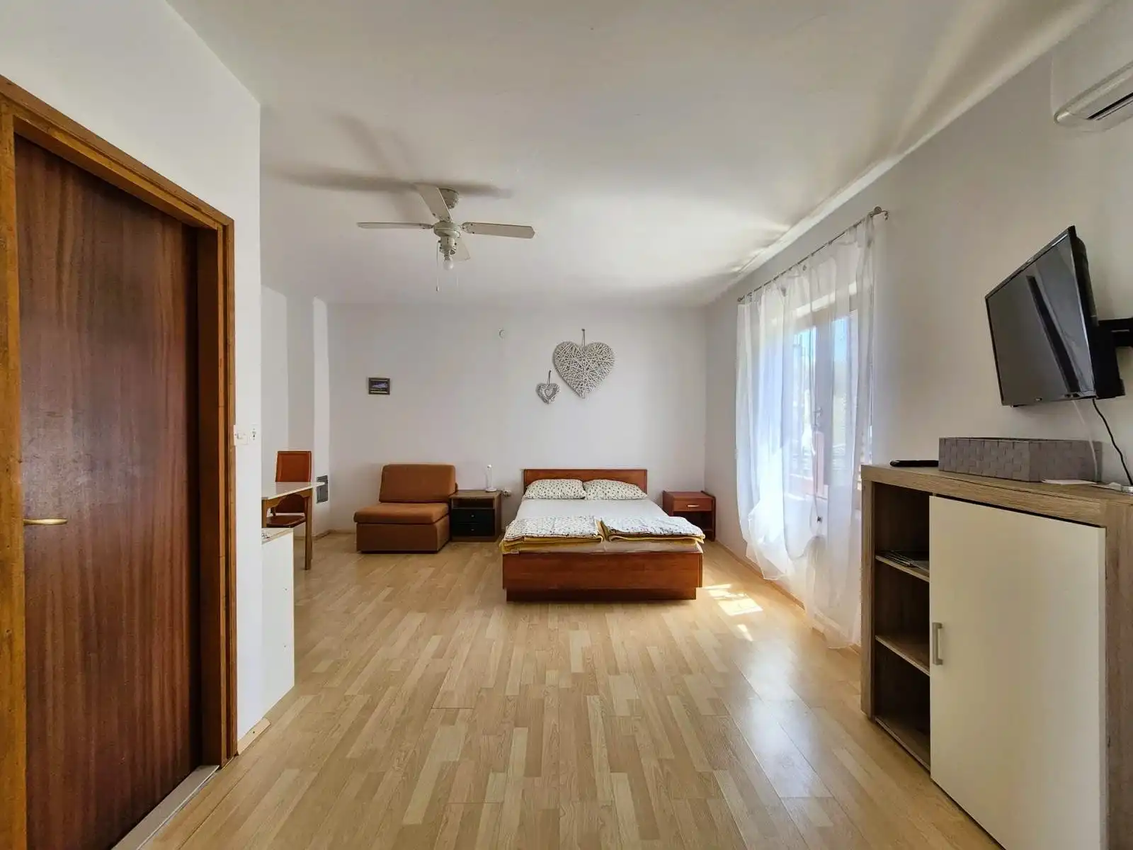 Iznajmljujem dvokrevetni (2*), trokrevetni (3*) i četvorokrevetni studio (3*) i dvosobni apartman (3*), sa kuhinjom i velikom blagavaonom. Kuća se nalazi iznad gradske plaže Soline. Miran dio grada u kome se objekat nalazi obezbedjuje miran san i prijatne večeri. Apartmani imaju zaseban ulaz, klimu, TV, balkon, ispred i iza kuće se nalazi sto sa stolicama i klupama. Parking je obezbeđen i besplatan. Kuća se nalazi 700 m od plaže. Biograd je poznat po svojim jedinstvenim plažama, gdje bijeli borovi natkrivaju plaže,stvarajući prirodan hlad. Idealno je za odmor sa djecom, pošto ima puno zanimljivog sadržaja za najmlađe. Dođite i uživajte u Biogradu i odmoru.