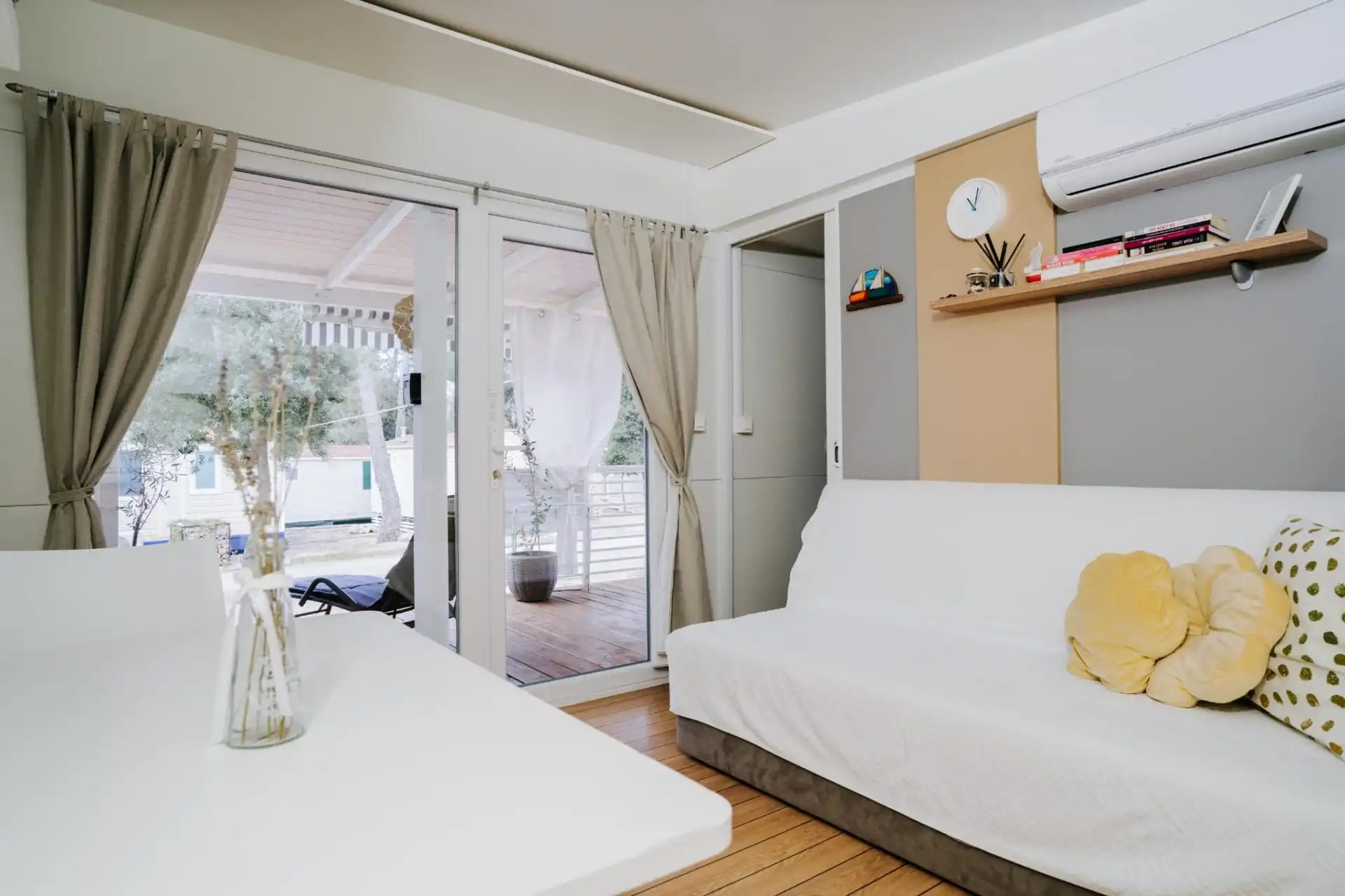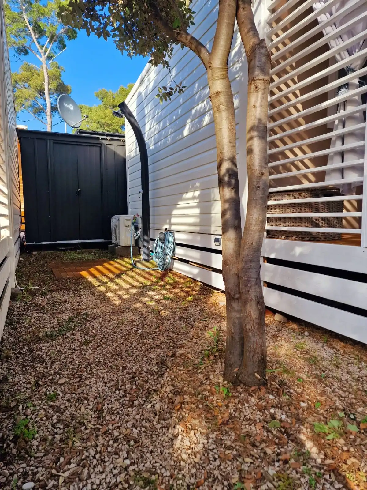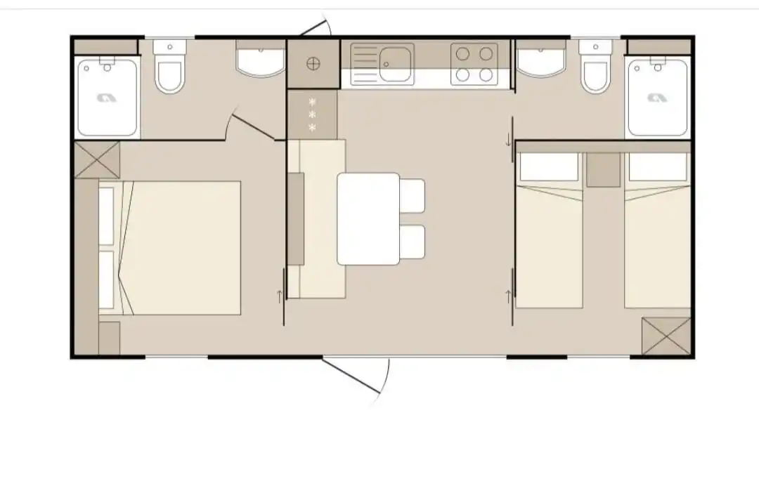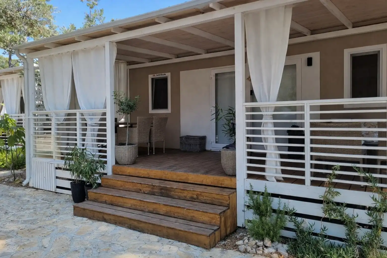 Mobile Home Sole su luksuzne mobilne kućice. Nalaze se u mirnom dijelu kampa Park Soline u Biogradu na Moru. Moderno opremljena mobilna kućica za 8 osoba (6+2) 42m2+terasa 30m2. Mobilna kućica ima 3 spavaće sobe i 2 kupaonice, opremljenu kuhinju s perilicom posuđa, veliku terasu sa stolom za 8 osoba i lounge garniturom, roštilj, solarni tuš, ležaljke i 1 privatno parkiralište. Moderno opremljena mobilna kućica za 6 osoba (4+2) 34m2+terasa 25m2. Mobilna kućica ima 2 spavaće sobe i 2 kupaonice, opremljenu kuhinju s perilicom posuđa, veliku terasu sa stolom za 6 osoba i lounge garniturom, roštilj, solarni tuš, ležaljke i 1 privatno parkiralište. Mobilne kućice Sole se nalaze 300 metara od plaže Soline, restorana, kafića, trgovine, pekarne, dječjeg igrališta. Popularne zanimljivosti u blizini mobilnih kućica Sole uključuju plažu Soline, plažu Dražice, plažu Bošana, Zavičajni muzej Biograd, marinu Kornati i dva parka prirode - Vransko jezero i Telašćica. Najbliža zračna luka je Zračna luka Zadar, udaljena 28 km od smještaja.