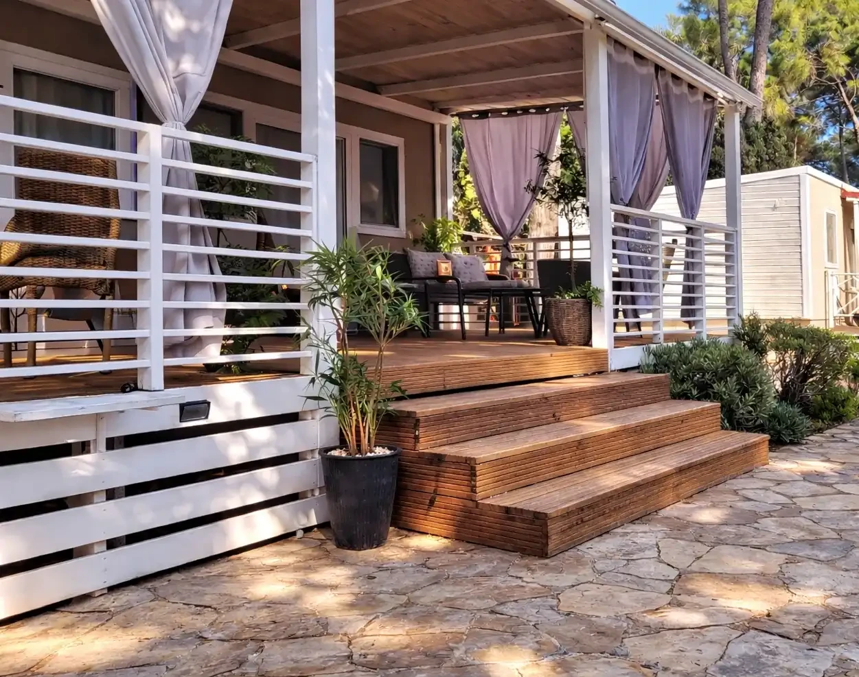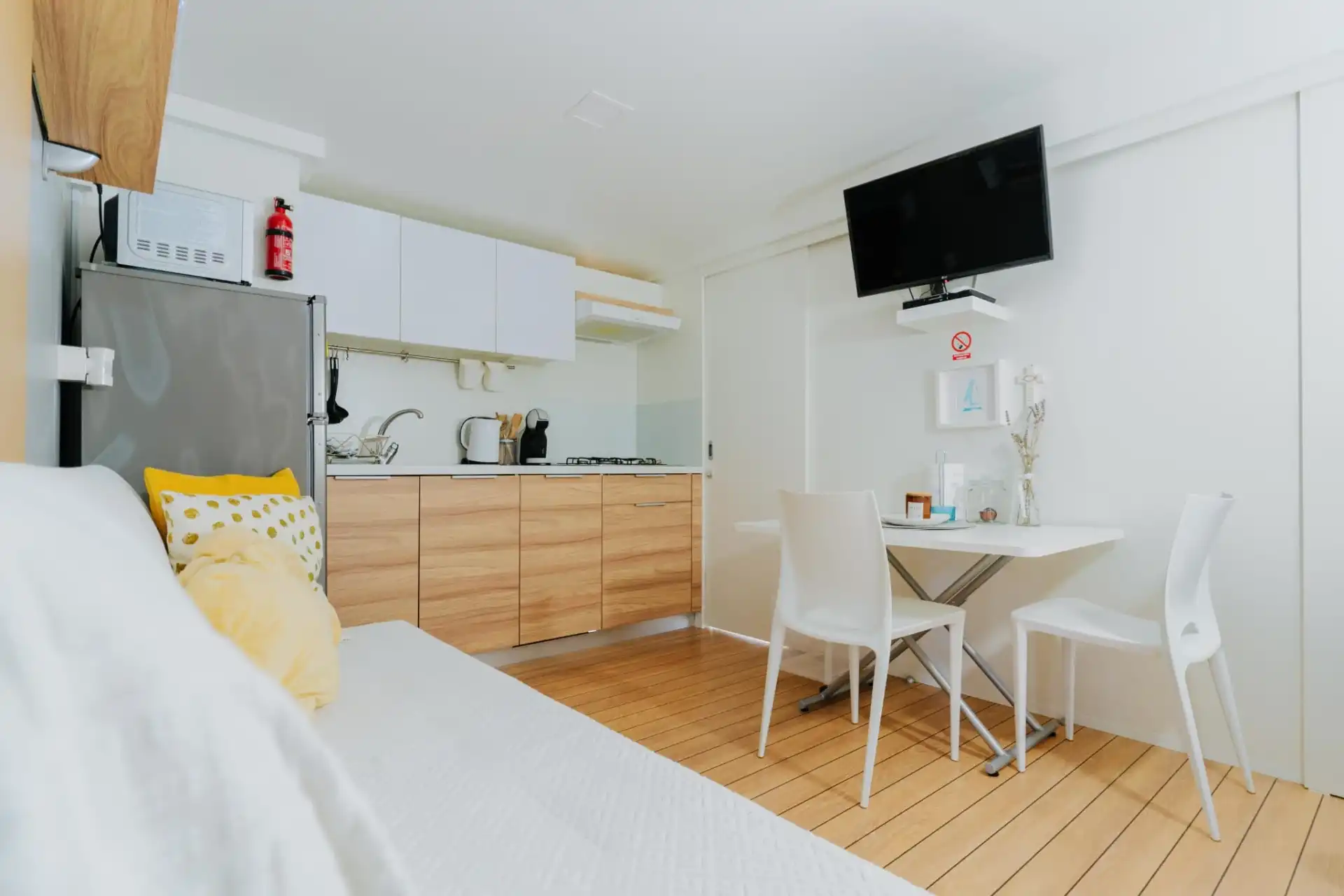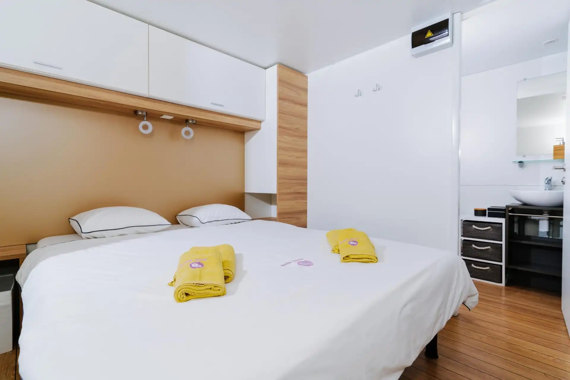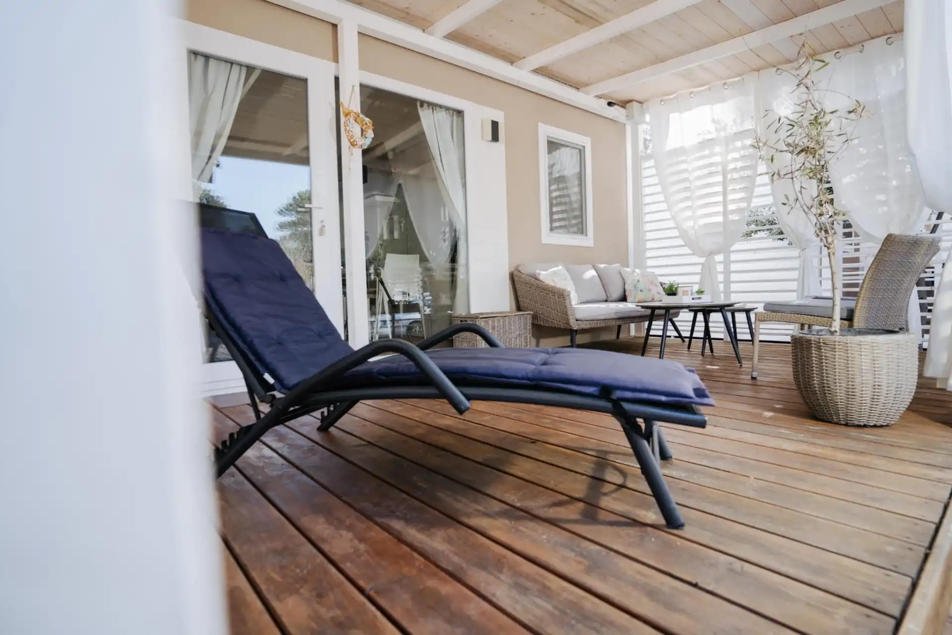 Mobile Home Sole su luksuzne mobilne kućice. Nalaze se u mirnom dijelu kampa Park Soline u Biogradu na Moru. Moderno opremljena mobilna kućica za 8 osoba (6+2) 42m2+terasa 30m2. Mobilna kućica ima 3 spavaće sobe i 2 kupaonice, opremljenu kuhinju s perilicom posuđa, veliku terasu sa stolom za 8 osoba i lounge garniturom, roštilj, solarni tuš, ležaljke i 1 privatno parkiralište. Moderno opremljena mobilna kućica za 6 osoba (4+2) 34m2+terasa 25m2. Mobilna kućica ima 2 spavaće sobe i 2 kupaonice, opremljenu kuhinju s perilicom posuđa, veliku terasu sa stolom za 6 osoba i lounge garniturom, roštilj, solarni tuš, ležaljke i 1 privatno parkiralište. Mobilne kućice Sole se nalaze 300 metara od plaže Soline, restorana, kafića, trgovine, pekarne, dječjeg igrališta. Popularne zanimljivosti u blizini mobilnih kućica Sole uključuju plažu Soline, plažu Dražice, plažu Bošana, Zavičajni muzej Biograd, marinu Kornati i dva parka prirode - Vransko jezero i Telašćica. Najbliža zračna luka je Zračna luka Zadar, udaljena 28 km od smještaja.