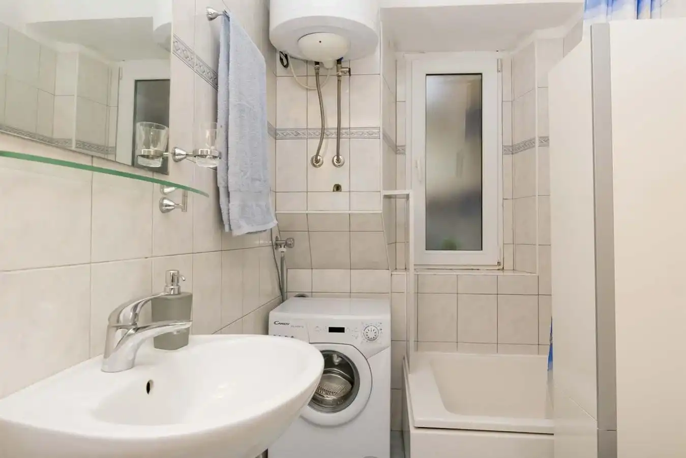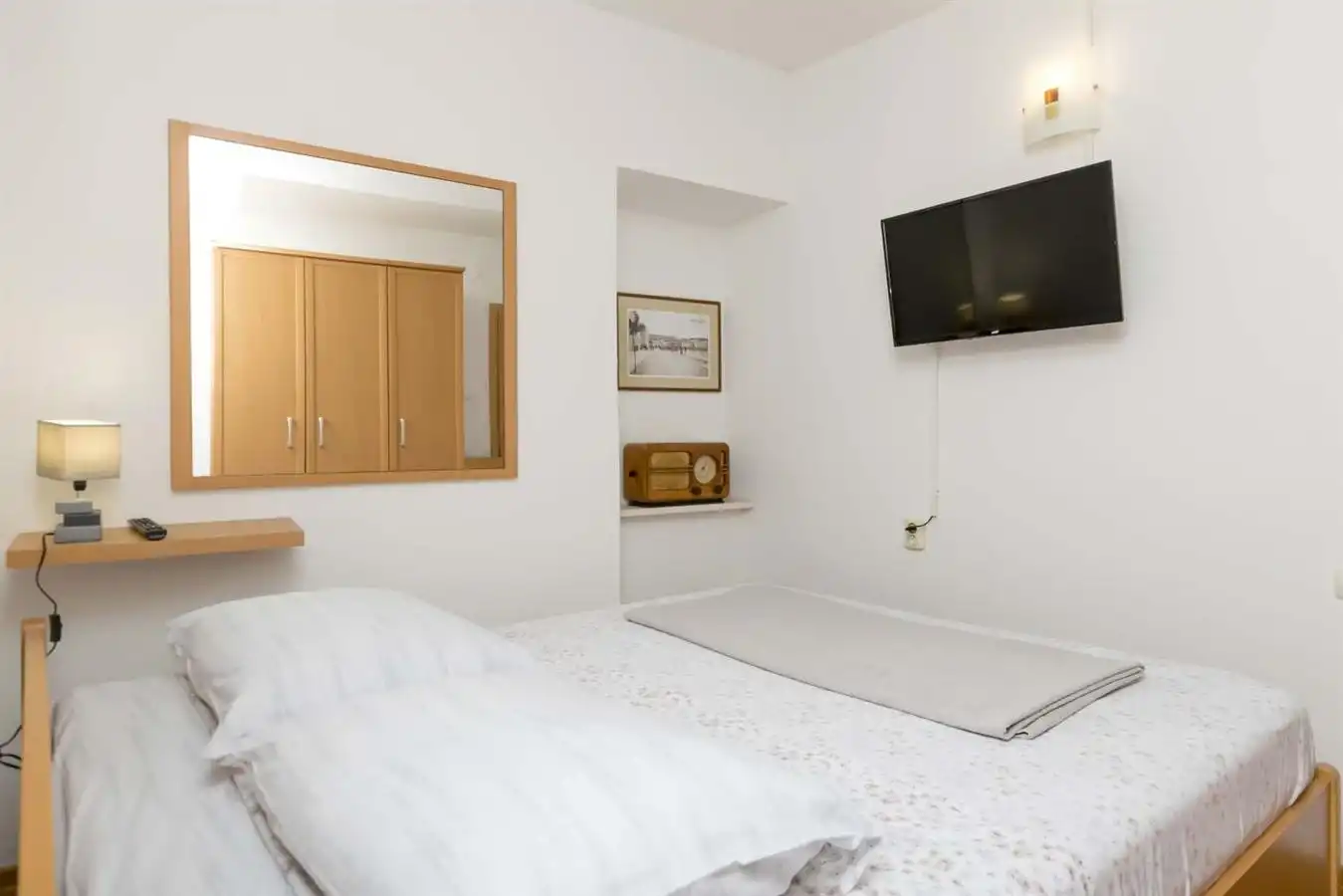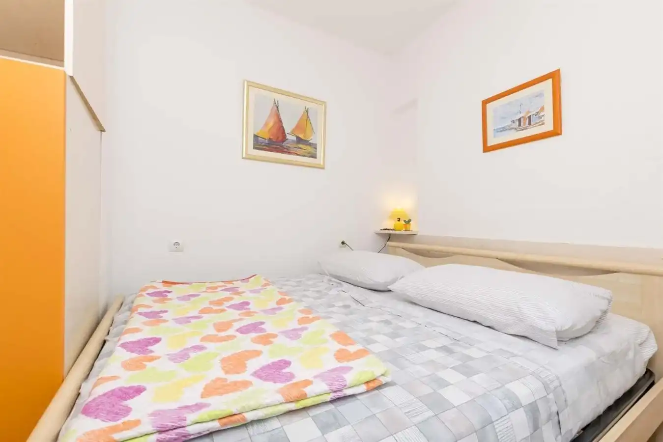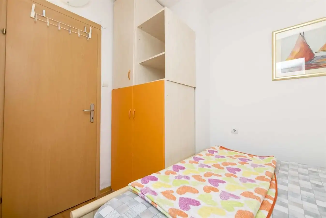 Samostojeca kuca u mirnom dijelu centra, okruzena vrtom, s vlastitim parking mjestom. Kuča je kompletno opremljena, a u vrtu se nalazi Vas kutak za odmor i roštilj, koji pridonosi kompletnom uživanju u Vasem godišnjem odmoru.Kuča se sastoji se od kuhinje s blagavaonom i dnevnim prostorom, kupatila i dvije spavače sobe (max. 4 osobe). Boravišna taksa je ukljucena u cijenu.