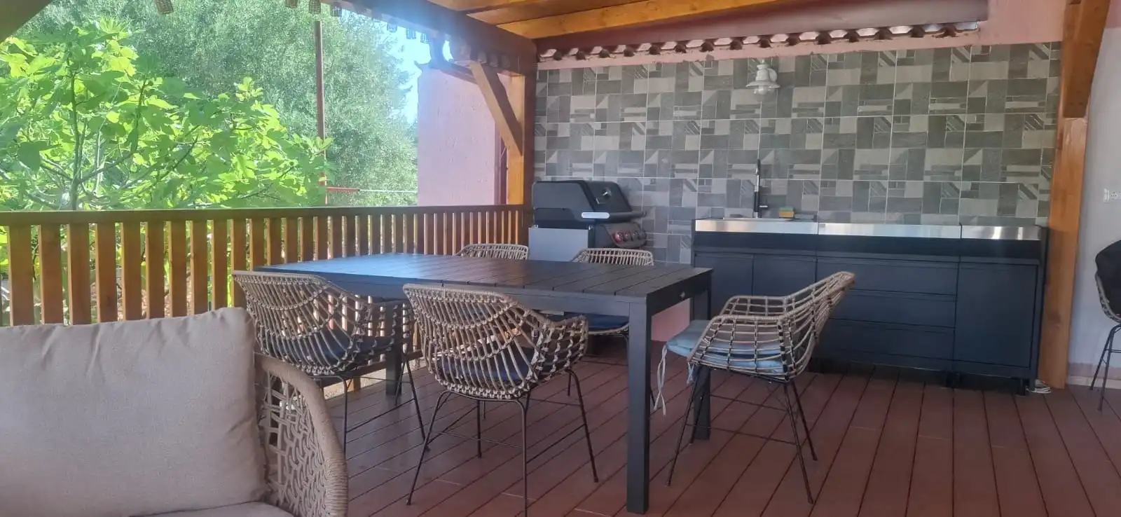 Holiday Home Roza je novo renovirana, prostrana i udobna kuća s natkrivenom terasom, vanjskim prostorom za opuštanje, tušem s toplom vodom i roštiljem. Kuća ima četiri spavaće sobe, dvije moderne kupaonice i dodatni gostinjski WC. Sve su prostorije opremljene klima‑uređajima, kako bi vaš boravak bio ugodan u svako doba dana. Potpuno opremljena kuhinja pruža sve što vam je potrebno za bezbrižan i ugodan boravak. Gostima su na raspolaganju: perilica posuđa, hladnjak s zamrzivačem, mikrovalna pećnica, pećnica, indukcijska ploča, aparat za kavu, kuhinjski robot, sokovnik, dvostruki toster i ručni mikser — sve što olakšava pripremu obroka. A pravi dragulj prostora je naš hladnjak za vino, savršen za čuvanje omiljenih boca na idealnoj temperaturi tijekom cijelog odmora. Kuća raspolaže s četiri prostrane i udobne spavaće sobe. Dvije sobe imaju bračne krevete (160 × 200 cm), a preostale dvije velike krevete za jednu osobu (120 × 200 cm), što osigurava udobnost za svakog gosta. Dvije spavaće sobe imaju izlaz na balkon, idealan za uživanje na svježem zraku i opuštanje. Raspored spavaćih soba: Tri sobe nalaze se na prvom katu, a jedna soba smještena je u prizemlju Za goste koji trebaju radni prostor, tu je i posebna kućna radna soba, mirno i udobno mjesto za produktivnost.