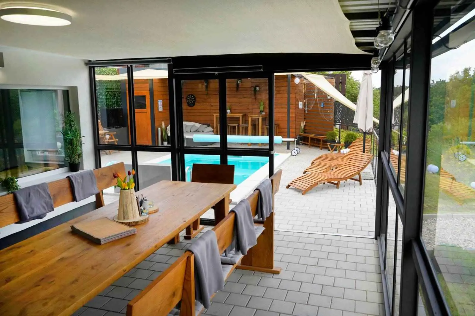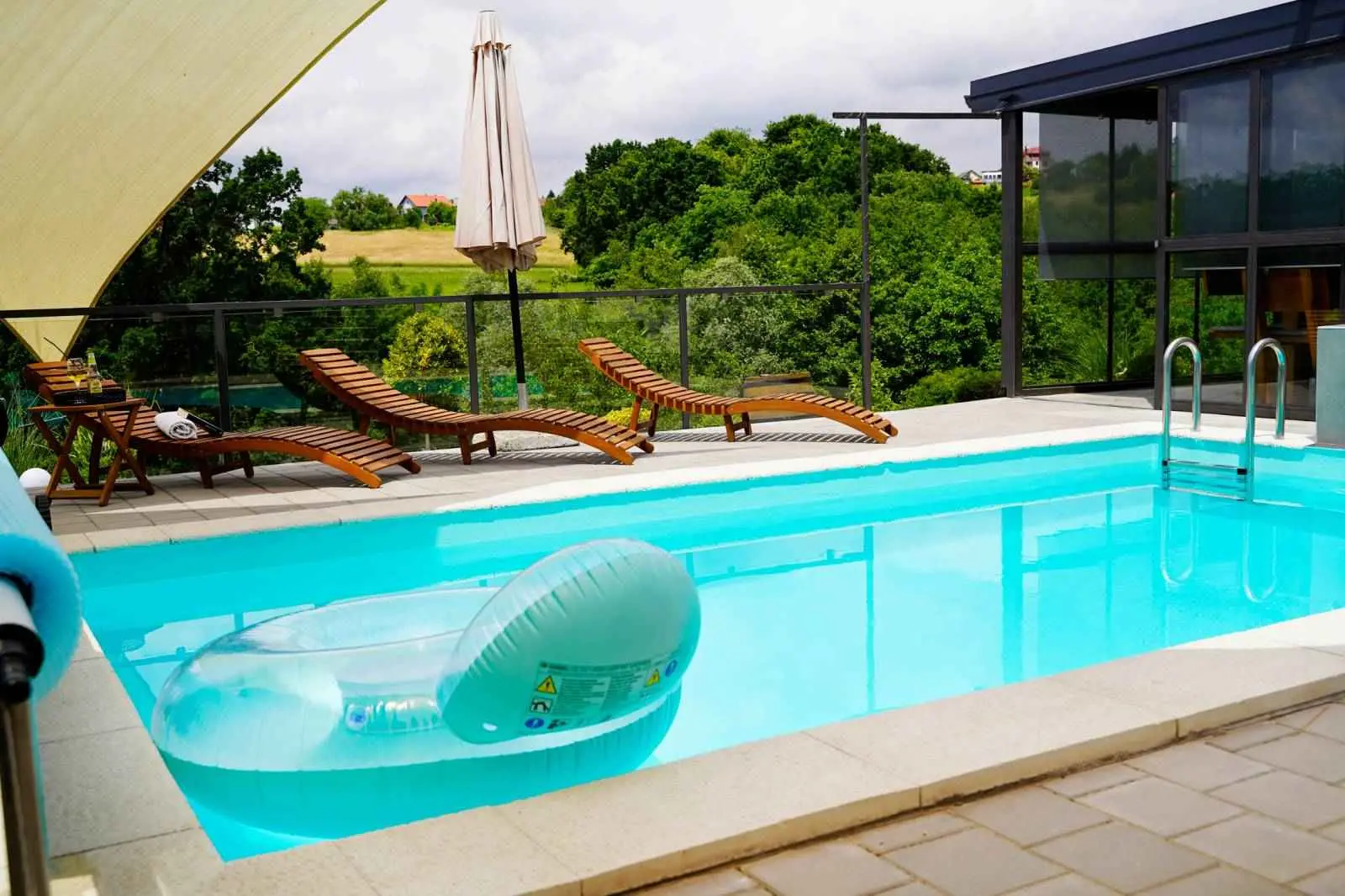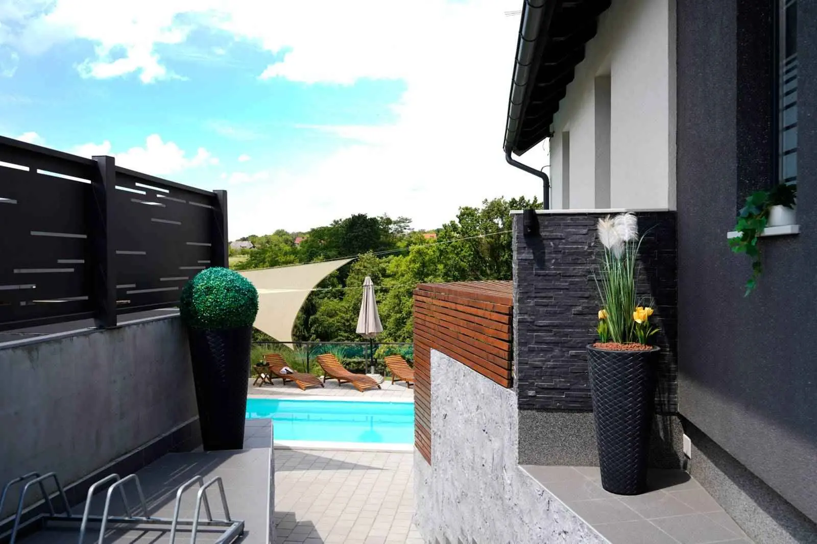 Holiday home „Aura LUX“ nudi smještaj u Lopatincu s besplatnim Wi-Fi i pogledom na prirodu i obronke Ivančice uz nezaboravan zalazak sunca. Kuća Vam pruža bijeg od svakodnevne gužve, spokoj i mir prirode, te relaksaciju koju vam nude šume i jezero Jegerseg u neposrednoj blizini. Kuća je okružena prirodom a ujedno u blizini grada Čakovca i svih znamenitosti Međimurja, te nedaleko od Terma Sveti Martin. Prekrasan međimurski kraj moguće je obići i biciklom uređenim biciklističkim stazama uz posjetu vinskim kućama i znamenitostima. Kuća sadrži sve potrebno za lagodan odmor...u potpunosti je opremljena uz mogućnost korištenja grijanog bazena od 01.05. do 15.10., jakuzzija (hot tub) , infra saune, bicikala, bilijara, pikada, roštilja, zatvorene terase sa roštiljem, bluetooth zvučnik ...opremljena je krevetićem za djecu, društvenim igrama, PS4,...uglavnom u potpunosti možete uživati i opustiti svoju dušu i tijelo !