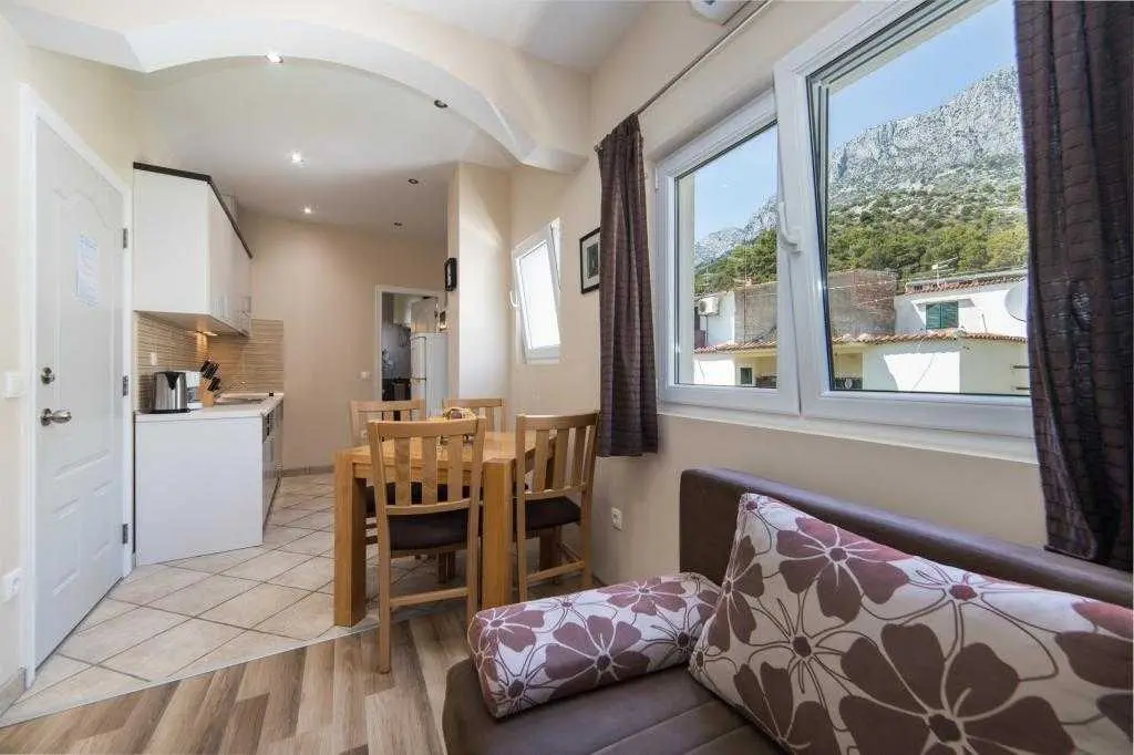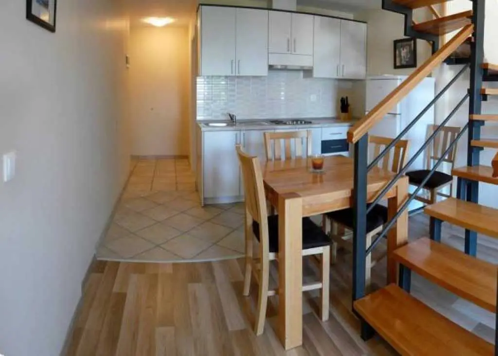 Moderno i kompletno opremljeni apartmani u sredistu Drvenika, smjesteni drugi red do mora. Objekt se nalazi u centru te manje dvije minute hoda do plaze. Apartmani su novi, sadrze klimu, sat tv, mikrovalnu, kuhalo za vodu te sav kuhinjski pribor. Objekt je 30 m udaljen od igralista i bucalista. Parking je 10 m od kuce. U blizini objekta nalazi se posta, mjenjacnica, trgovina, pekara i bankomat.,kafici i nekoliko restorana sa raznovrsnim sadrzajem.
