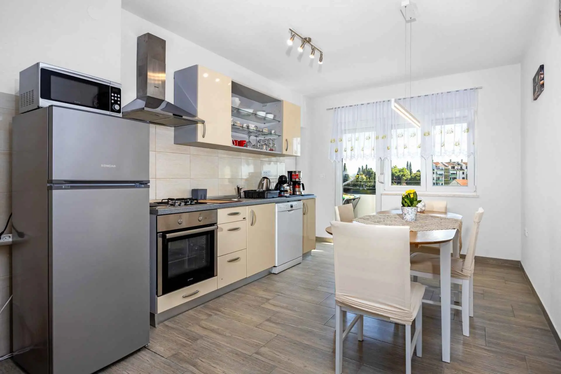 Ljupki apartman Ivana nalazi se u Fažani, na izvrsnoj lokaciji uz glavnu šetnicu s prekrasnim pogledom na more. Plaža za pse udaljena je samo 70 m, tako da vaši ljubimci mogu besplatno boraviti u apartmanu. Apartman je pogodan za 4 osobe, koje mogu spavati u dvije spavaće sobe sa bračnim krevetima. Bebe mogu boraviti besplatno u raspoloživom krevetiću. Na raspolaganju su dva balkona, jedan u kuhinji i jedan s pogledom na more u dnevnom boravku. Bicikli se mogu čuvati u garaži (pod ključem). Gostima je također na raspolaganju klima uređaj, Wi-fi i jedno parkirno mjesto.