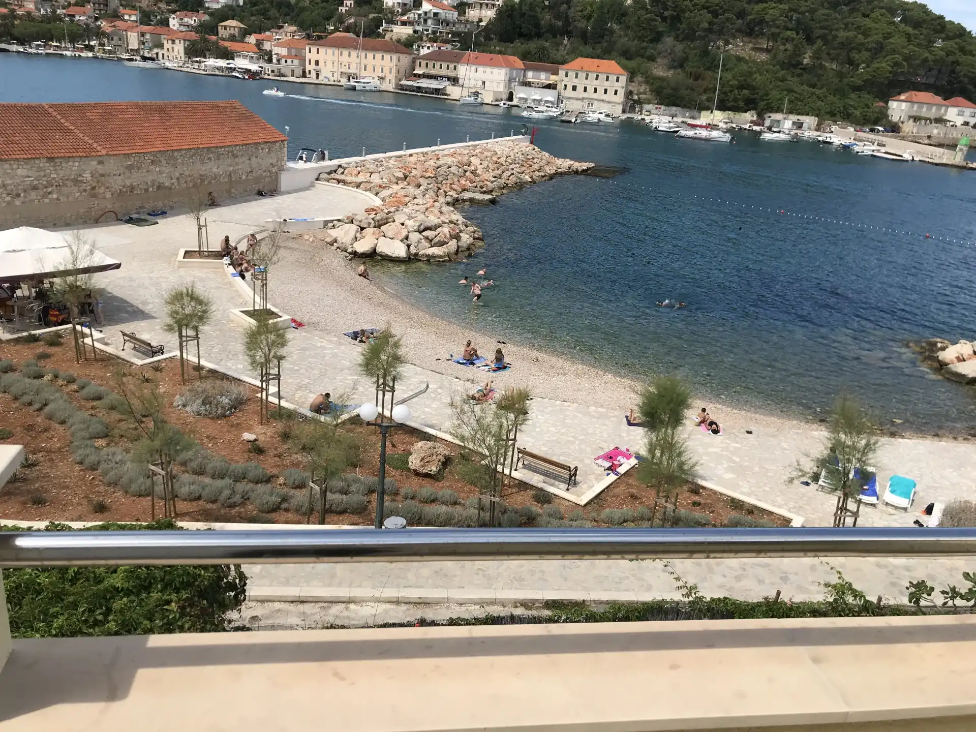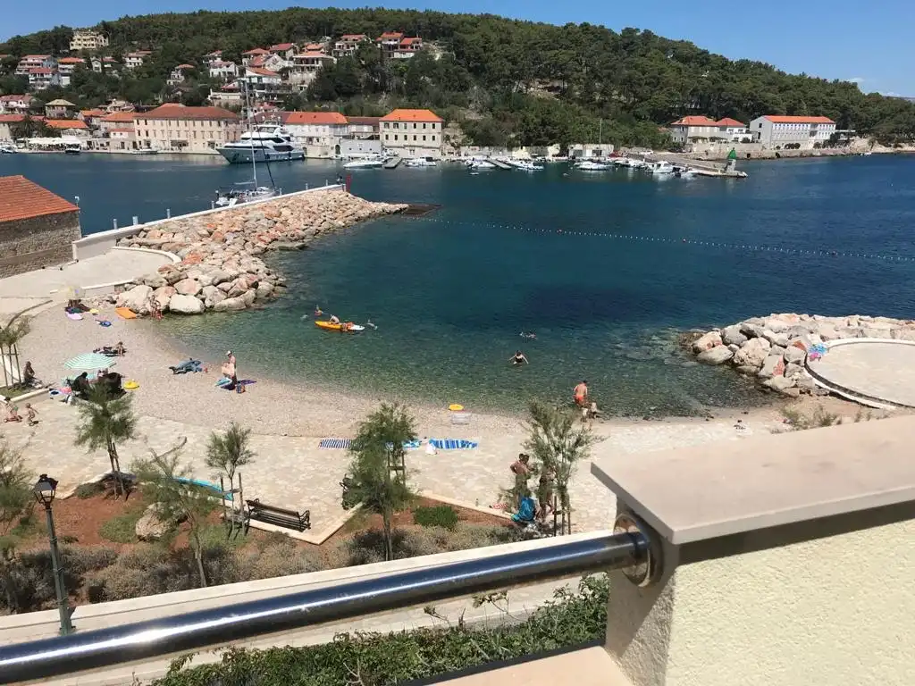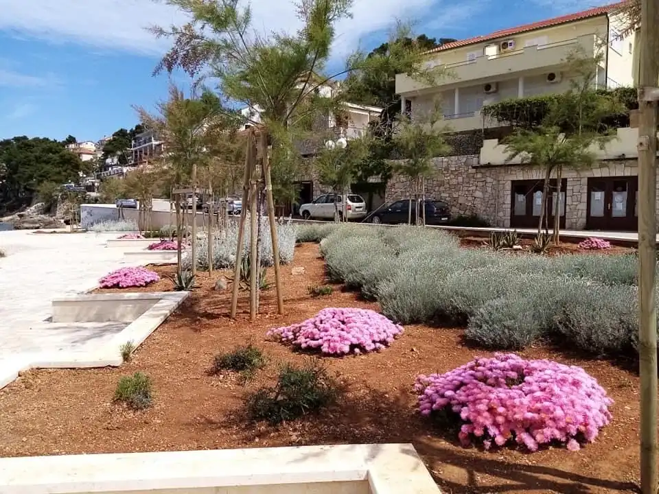 Apartmani se nalaze u centru Jelse . Uz kupaliste . Mogu se rezervirati dvokrevetni apartmani ili dvokrevetni sa pomocnim krevetom . Takodjer se moze rezervirati samo soba . Soba nema kuhinje . Vecina jedinica ima balkone sa pogledom na more ili vrt .