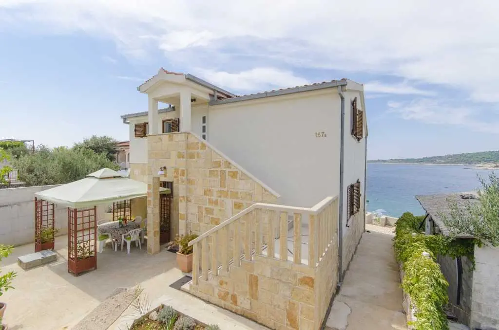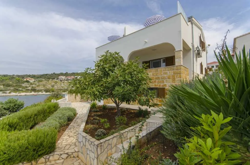 Potpuno nova 2 apartmana za po 4 osobe u mirnom mjestu Kanici u na dohvat ruke Rogoznici, Primoštenu i Trogiru. Apartmani se nalaze u prvom redu do mora (10 m), imaju privatnu plažu s uređenim pristupom te osigurana parkirna mjesta. Idealno mjesto za obitelji koje žele odmor provesti u miru, tišini i privatnosti. +385919806969 (Vedran)