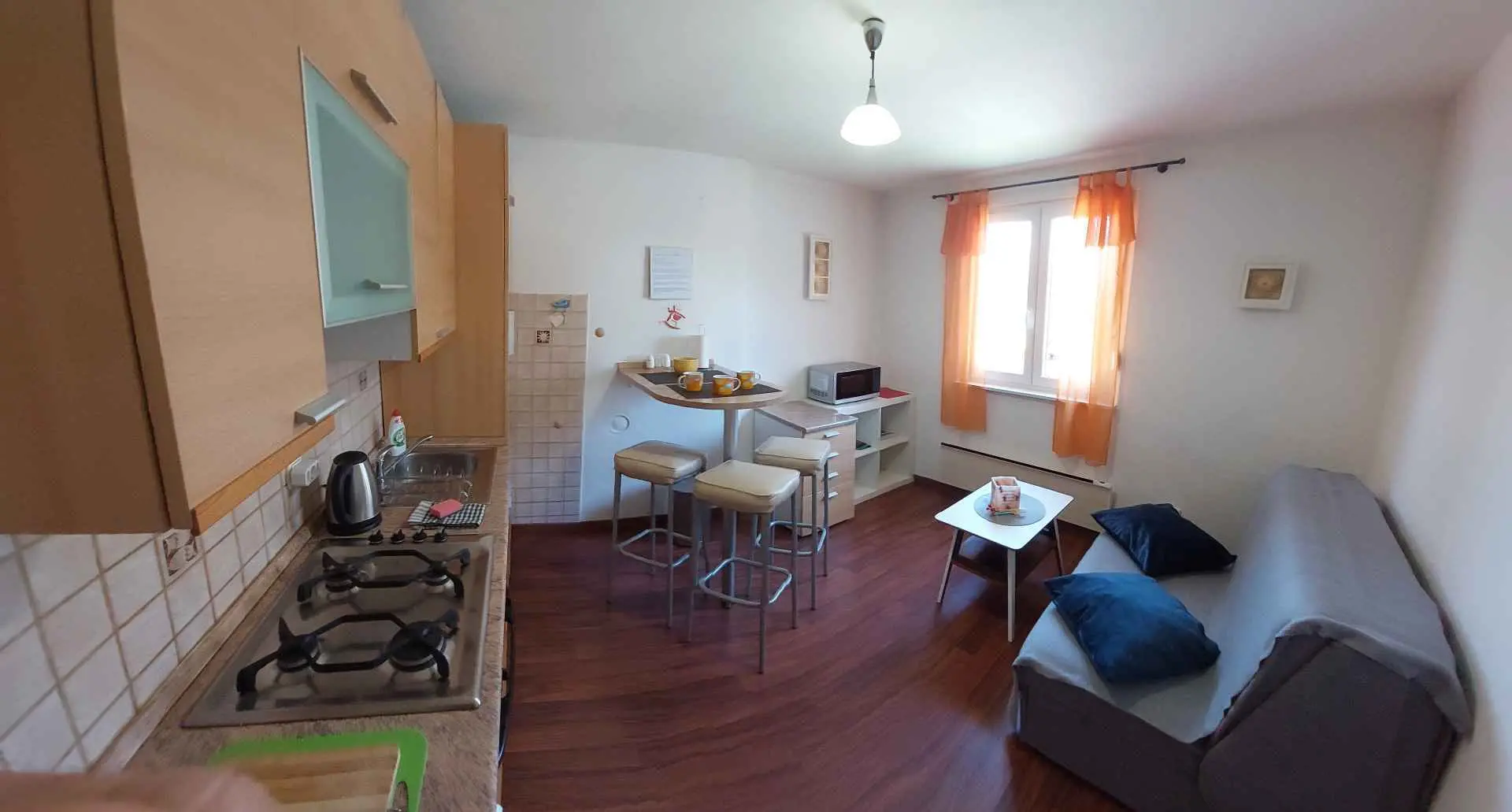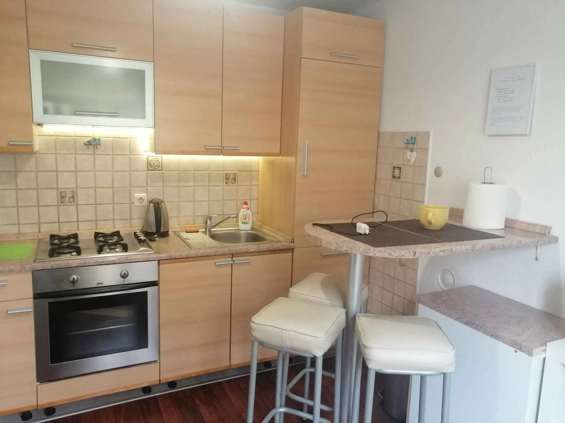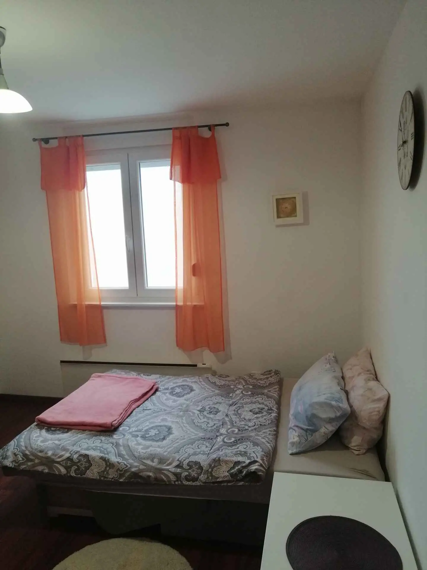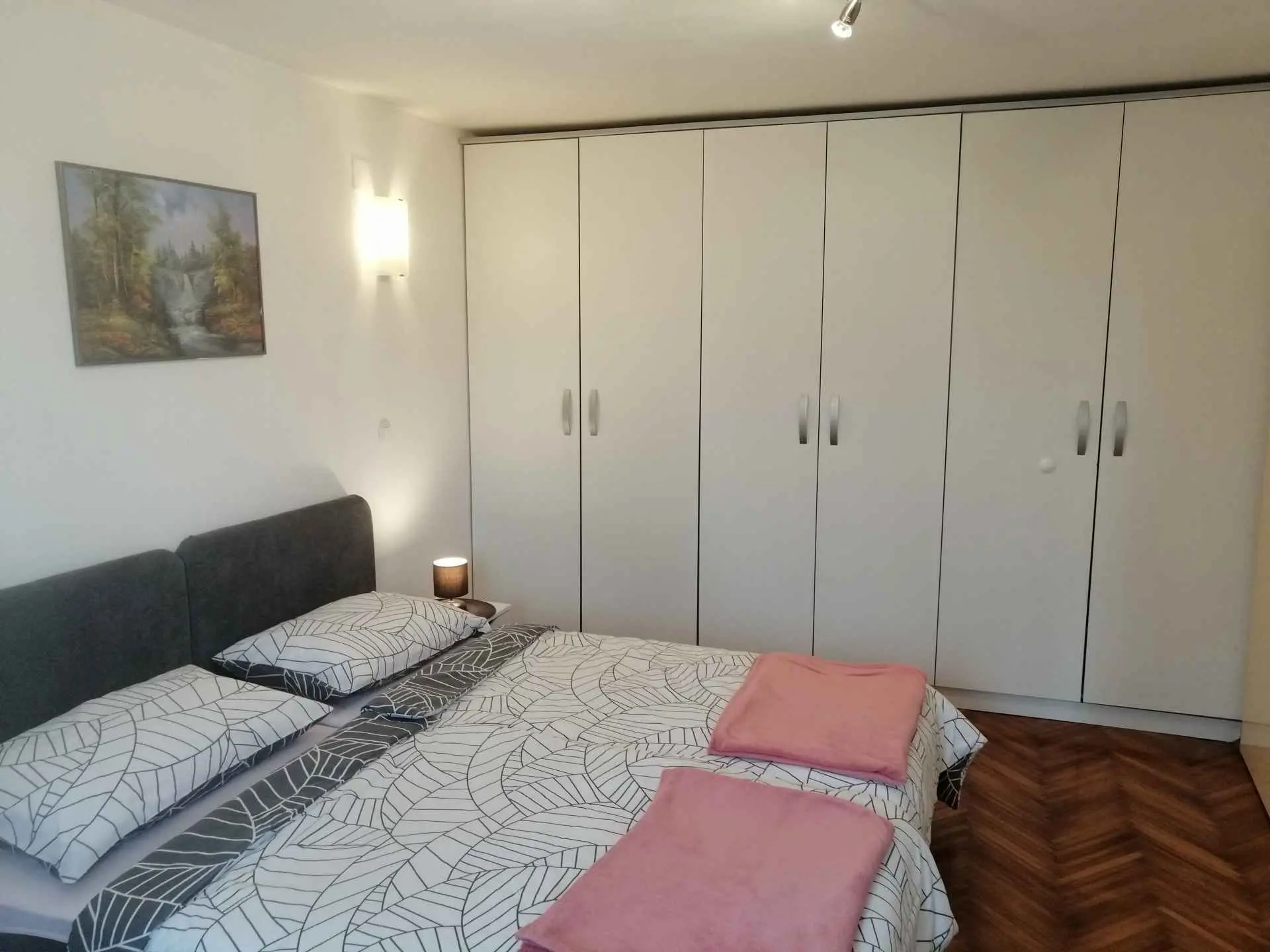 Apartman se nalazi u južnom dijelu Karlovca, nalazi se na prvom katu stambene zgrade. Prozračan s puno dnevnog svjetla, klima uređaj, besplatni WIFI, noćni ormarići s noćnim svjetlima, moderno namješten s malom kuhinjom povezanom s modularnim dnevnim boravkom, hodnikom odvojenim od kupaonice i velikom spavaćom sobom. U kuhinji se nalazi hladnjak sa zamrzivačem, pećnica sa štednjakom, mikrovalna pećnica, posuđe za pripremu i uživanje u jelu i kuhalo za vodu. Ispred i iza zgrade je prostor za besplatno parkiranje. Na ulazu u apartman je elektronska brava, za ulaz u apartman imate šifru koju dobijete prilikom rezervacije apartmana i sa šifrom možete uči sami u apartman u vrijeme koje vama odgovara. Apartman je udaljen oko 10 minuta šetnje od starog centra grada, gdje imate bogatu ponudu pizzerija, kafića, restorana, pubova, supermarketa... i fitnness, bazeni, te drugi sportski i shopping centri, tržnica je udaljena na 15 minuta šetnje, ....... Predivne parkove koji čine ostatke jezgre povijesne Zvijezde te znamenitosti: Miljokaz, kazalište Zorin Dom, crkva Presvetog Trojstva, muzički paviljon, tvrđava Stari Grad Dubovac u kojoj je muzej i restoran Kastel, Gradski muzej......Od velikog gradskog kupališta Foginovo na Korani dijeli Vas 20minuta šetnje, uz kupalište ima atletska staza, teniska igrališta, slatkovodni akvarij Aquatika, konjički klub uz mogućnost jahanja...
