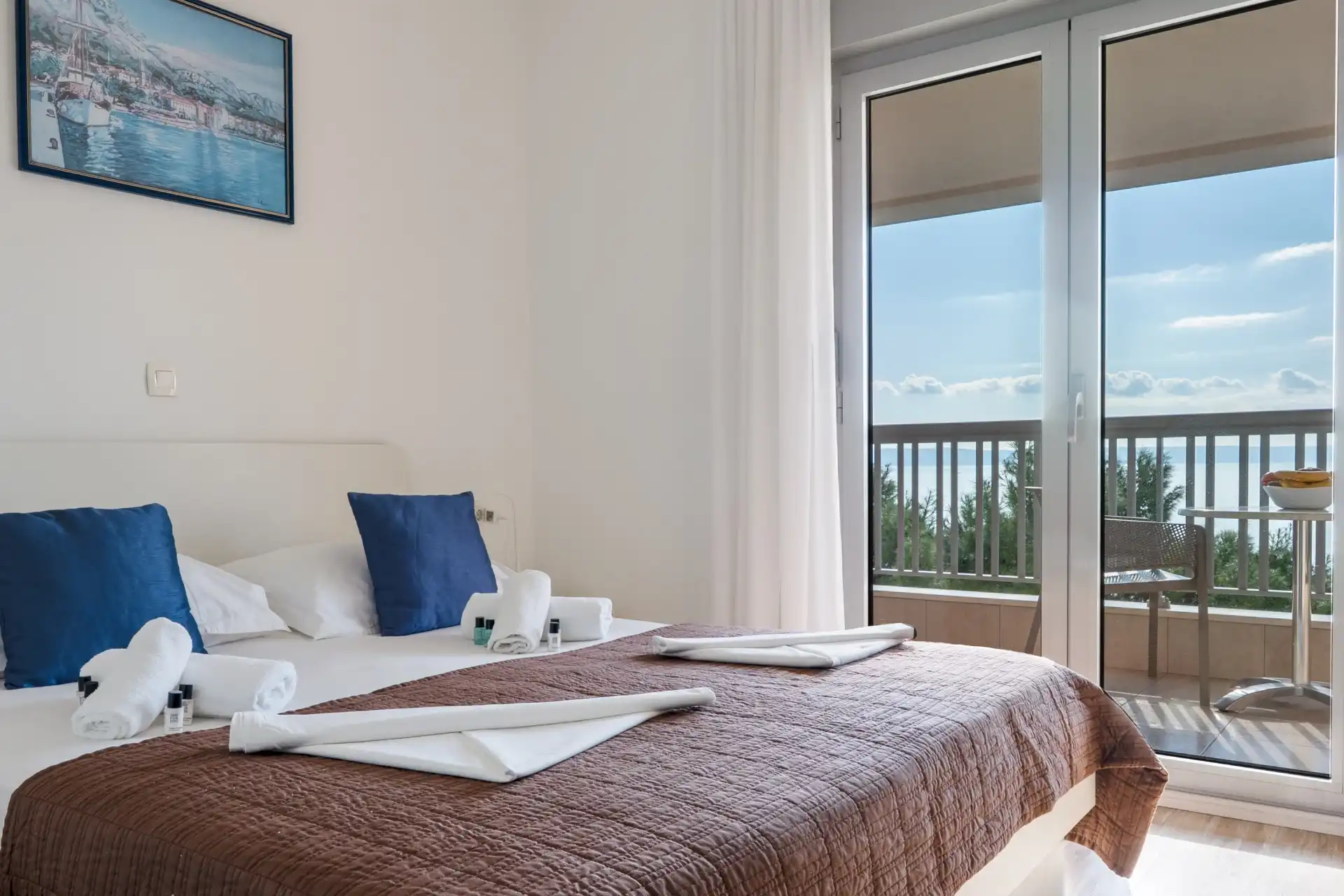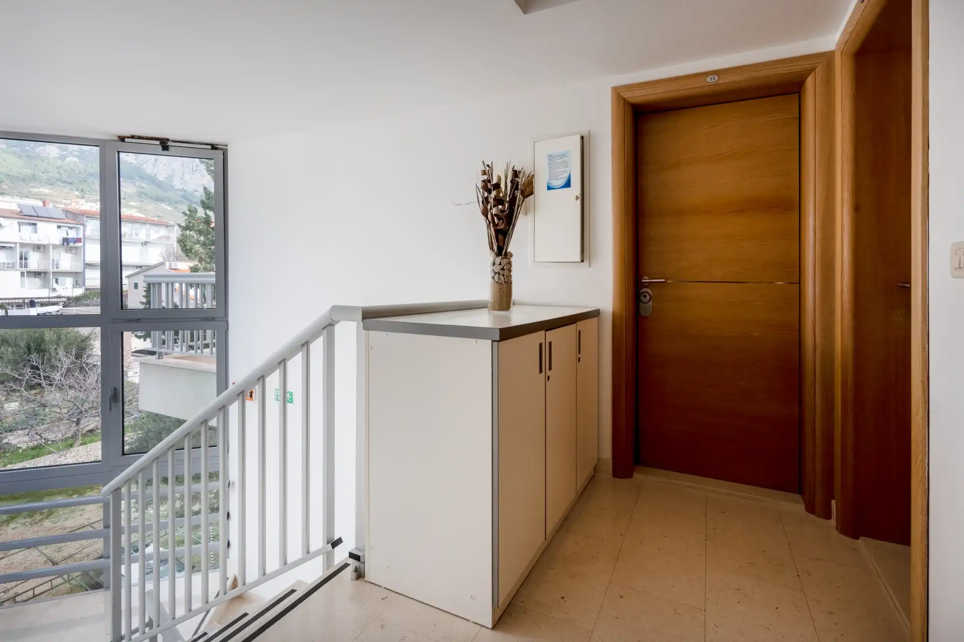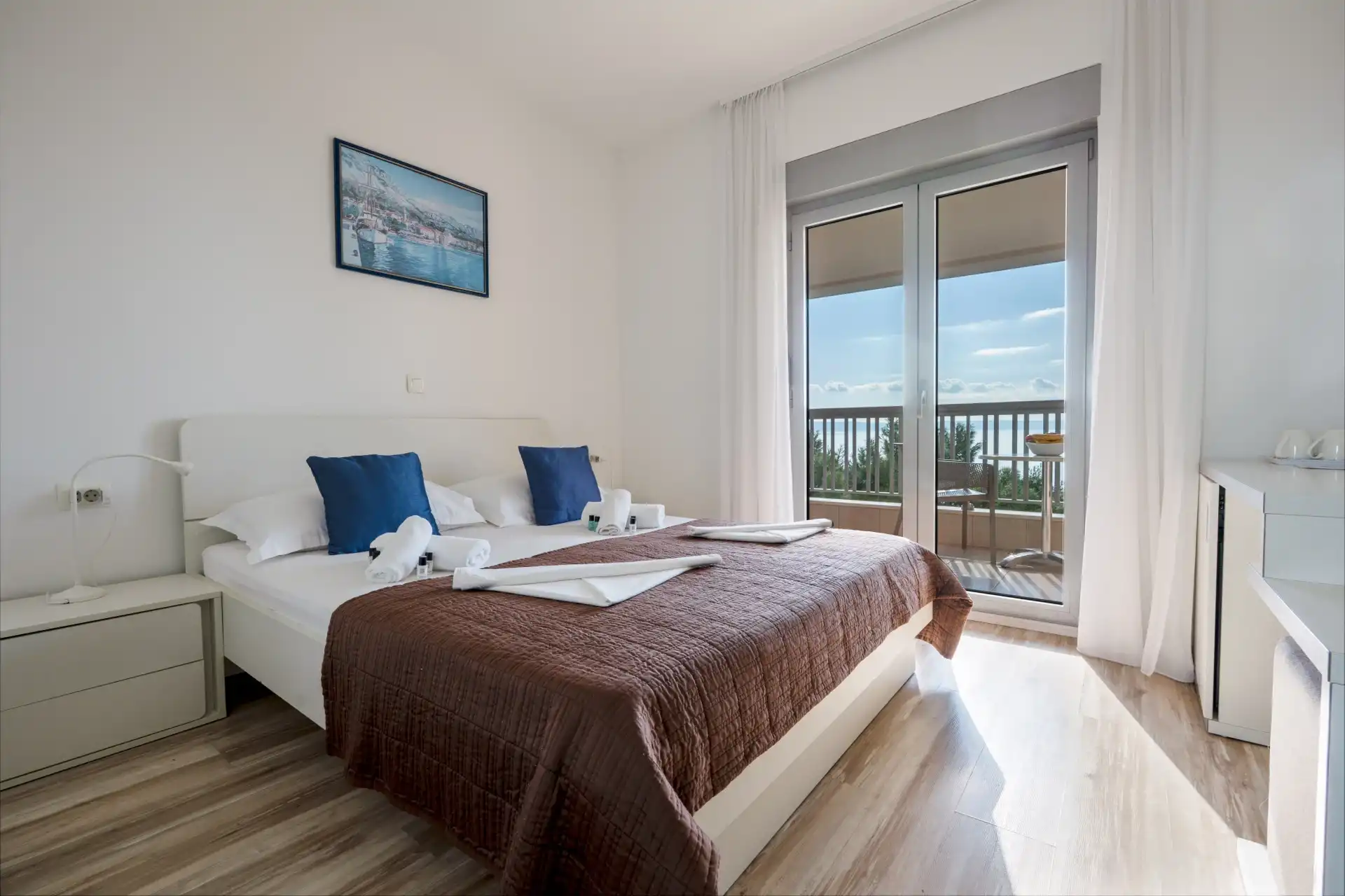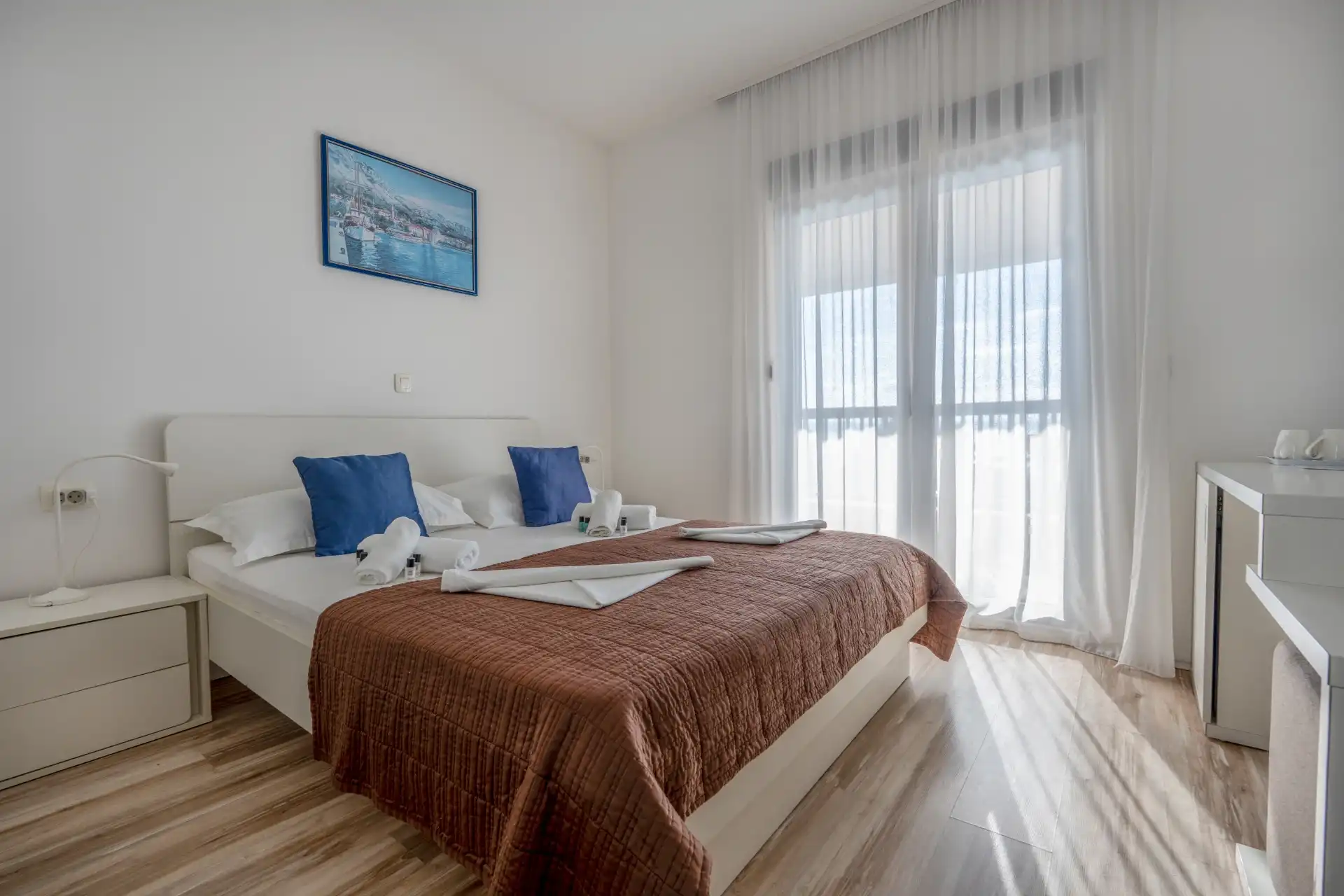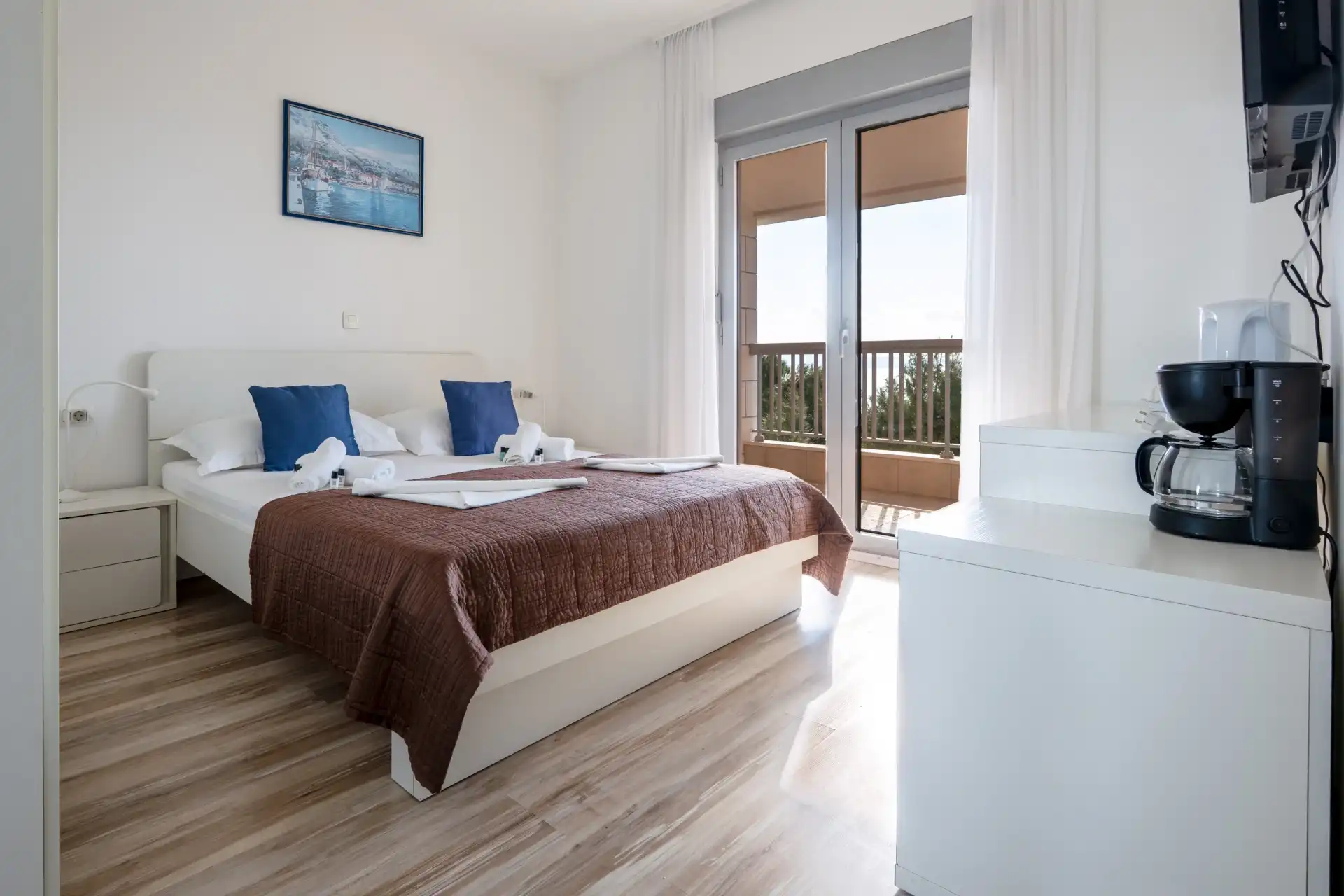 Apartmani Simic nude vrhunski smještaj na idealnoj lokaciji, svega 10-ak metara od mora, s očaravajućim pogledom na obalu. Sastoji se od četiri kata, a svaki kat sadrži različite vrste apartmana koji zadovoljavaju potrebe svih gostiju. Na prvom i drugom smješteni su prostrani dvosobni apartmani, savršeni za obitelji ili veće grupe. Svaki apartman opremljen je modernim namještajem, kuhinjom, dnevnim boravkom i balkonima s pogledom na more, omogućujući gostima udoban i ugodan boravak. Trosobni apartman na trećem katu nudi još više prostora i luksuza, idealan za veće obitelji ili grupe koje žele uživati u maksimalnom komforu i privatnosti. S tri spavaće sobe, dnevnim boravkom i velikim balkonima, ovaj apartman pruža potpunu privatnost za opuštanje i neometan užitak u prelijepom pogledu na more. Na četvrtom katu smješteni su studio apartmani, idealni za parove ili samostalne putnike koji traže intimu i udobnost. Svaki studio apartman posjeduje balkon, savršen za jutarnje opuštanje uz kavu ili uživanje u zalasku sunca. Kompleks također nudi garažni parking smješten ispod objekta,ili pak u zakupljenom posjedu 200 m od posjeda , čime je gostima omogućena sigurnost i bezbrižnost tijekom boravka. Parking se naplaćuje dodatno. S obzirom na blizinu mora i mirnu lokaciju, ovaj apartmanski kompleks savršeno je mjesto za opuštanje, uživanje u suncu i moru i nezaboravno ljetovanje.