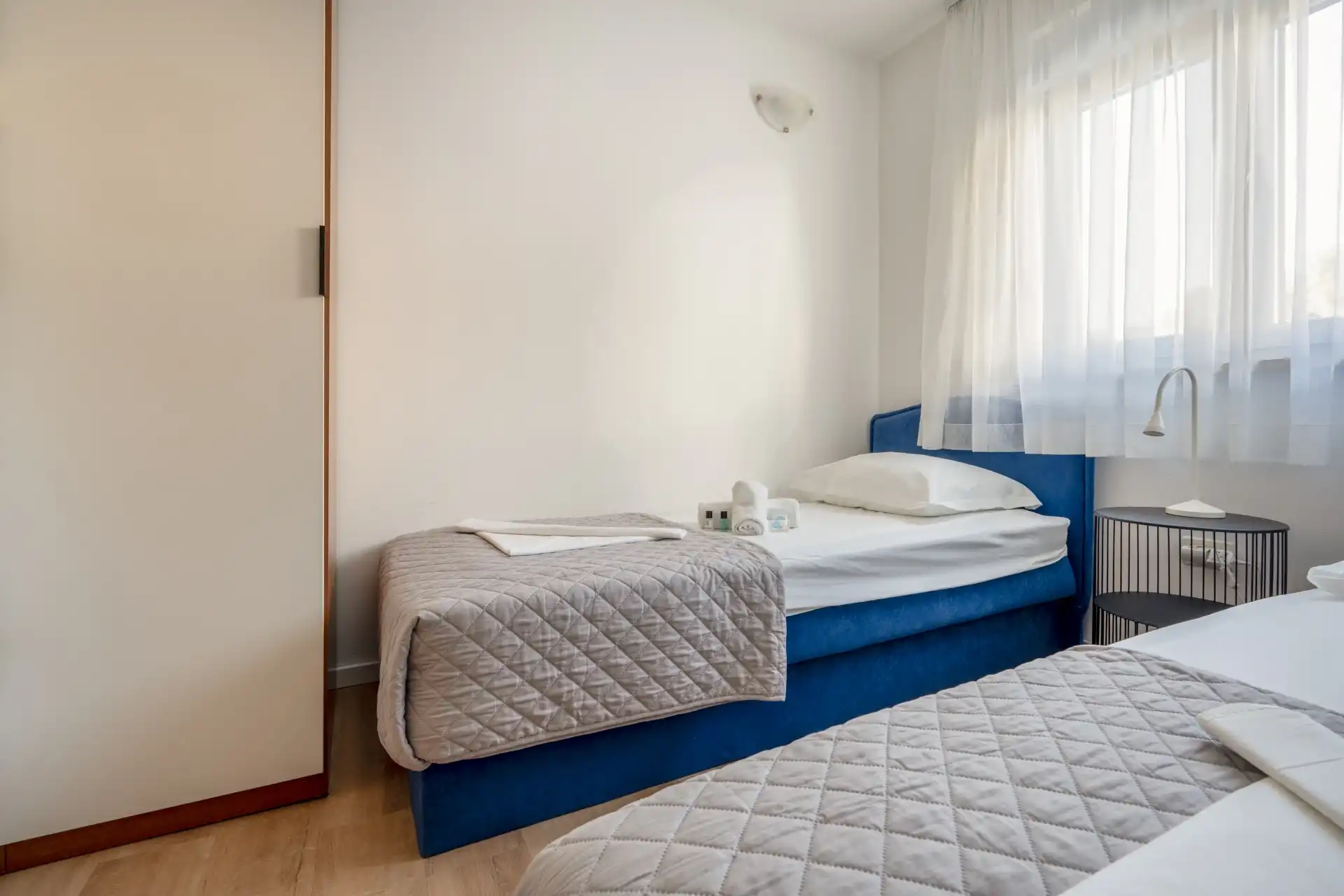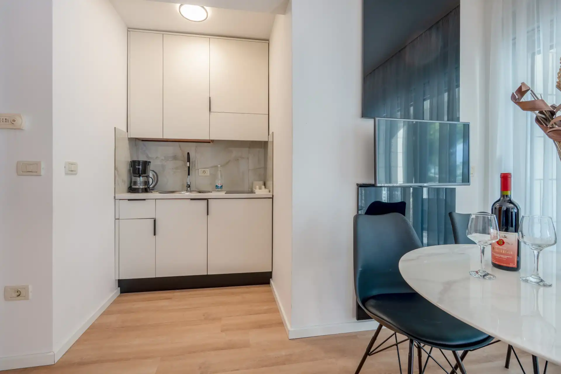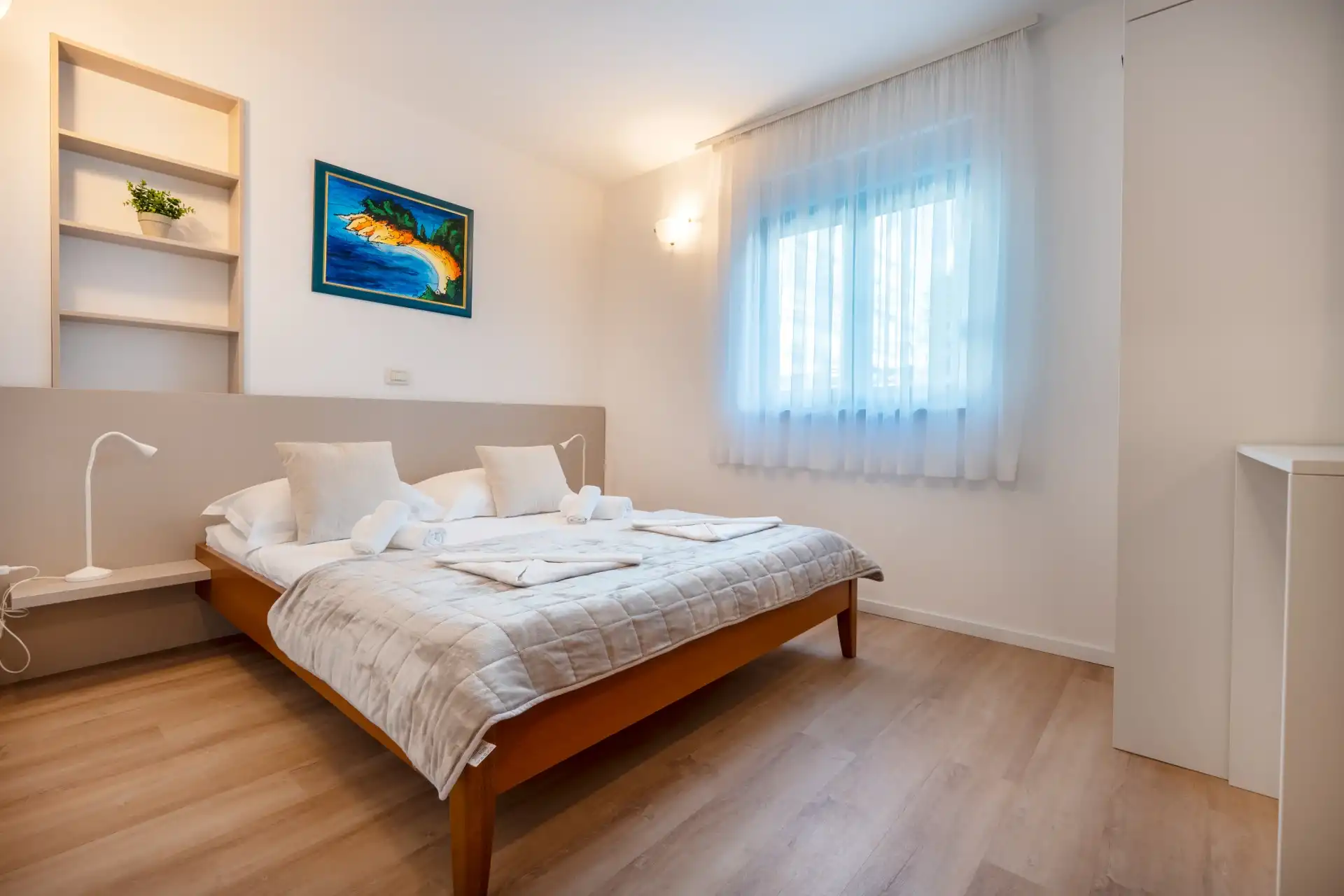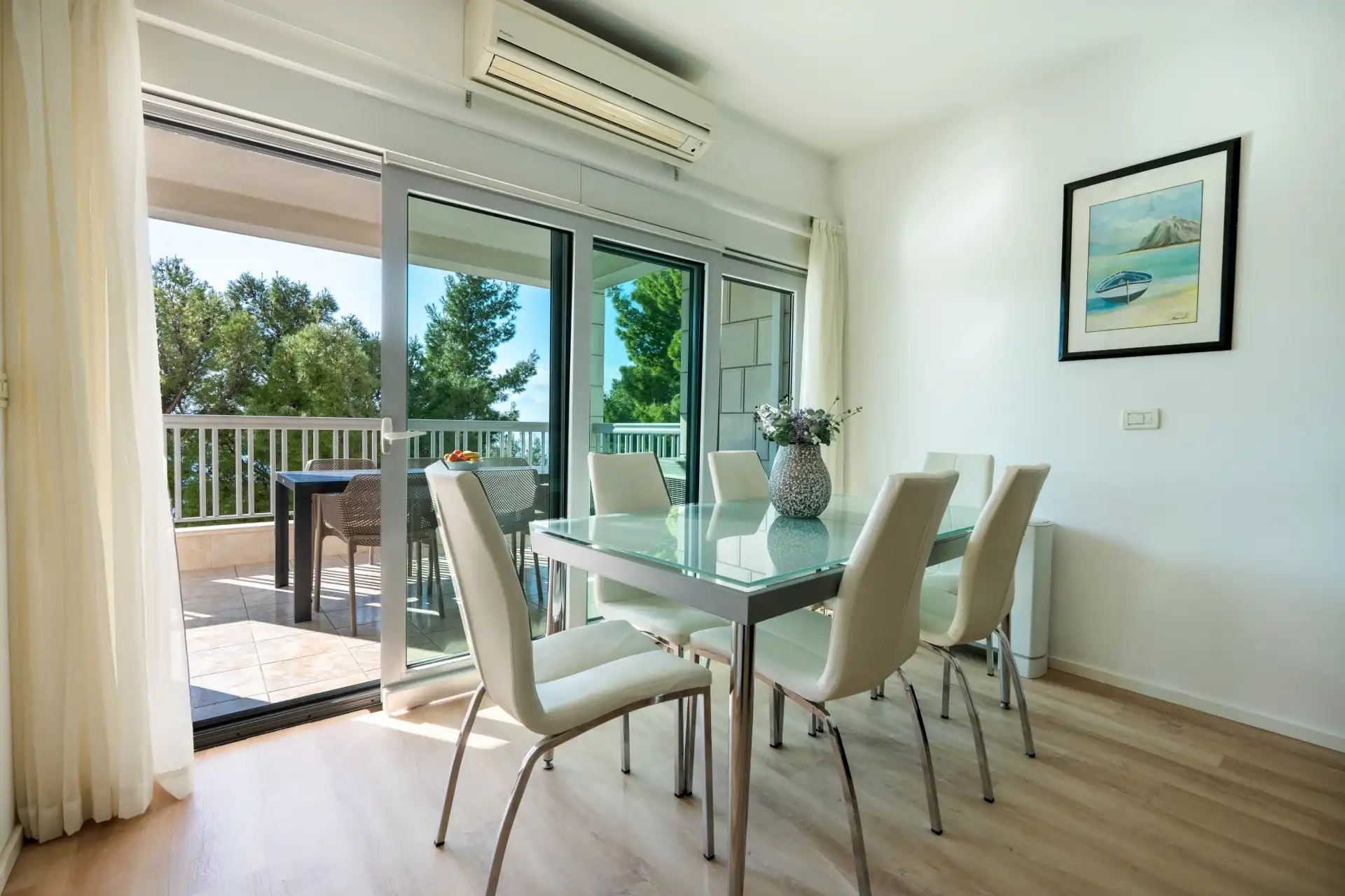 Apartmani Simic nude vrhunski smještaj na idealnoj lokaciji, svega 10-ak metara od mora, s očaravajućim pogledom na obalu. Sastoji se od četiri kata, a svaki kat sadrži različite vrste apartmana koji zadovoljavaju potrebe svih gostiju. Na prvom i drugom smješteni su prostrani dvosobni apartmani, savršeni za obitelji ili veće grupe. Svaki apartman opremljen je modernim namještajem, kuhinjom, dnevnim boravkom i balkonima s pogledom na more, omogućujući gostima udoban i ugodan boravak. Trosobni apartman na trećem katu nudi još više prostora i luksuza, idealan za veće obitelji ili grupe koje žele uživati u maksimalnom komforu i privatnosti. S tri spavaće sobe, dnevnim boravkom i velikim balkonima, ovaj apartman pruža potpunu privatnost za opuštanje i neometan užitak u prelijepom pogledu na more. Na četvrtom katu smješteni su studio apartmani, idealni za parove ili samostalne putnike koji traže intimu i udobnost. Svaki studio apartman posjeduje balkon, savršen za jutarnje opuštanje uz kavu ili uživanje u zalasku sunca. Kompleks također nudi garažni parking smješten ispod objekta,ili pak u zakupljenom posjedu 200 m od posjeda , čime je gostima omogućena sigurnost i bezbrižnost tijekom boravka. Parking se naplaćuje dodatno. S obzirom na blizinu mora i mirnu lokaciju, ovaj apartmanski kompleks savršeno je mjesto za opuštanje, uživanje u suncu i moru i nezaboravno ljetovanje.