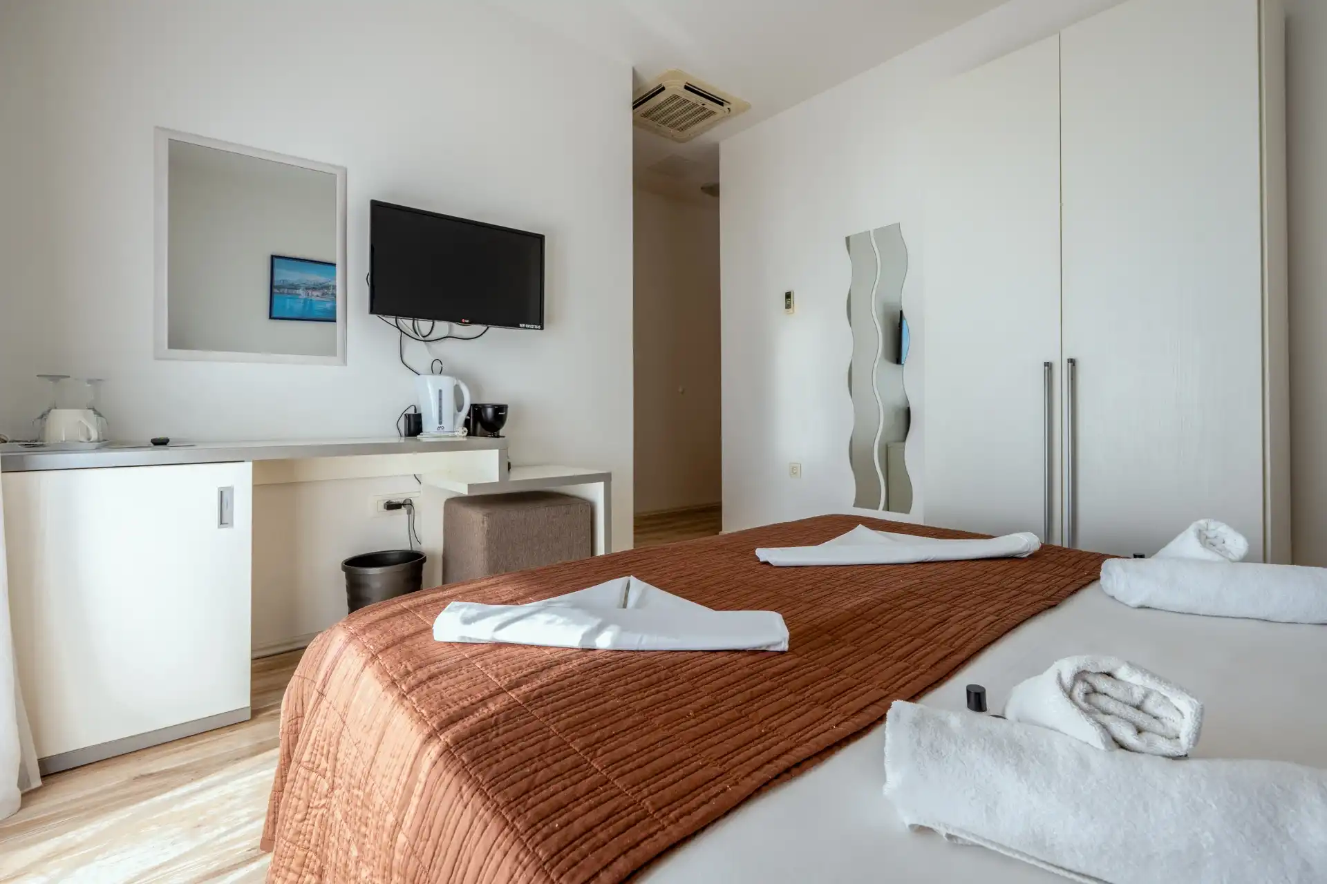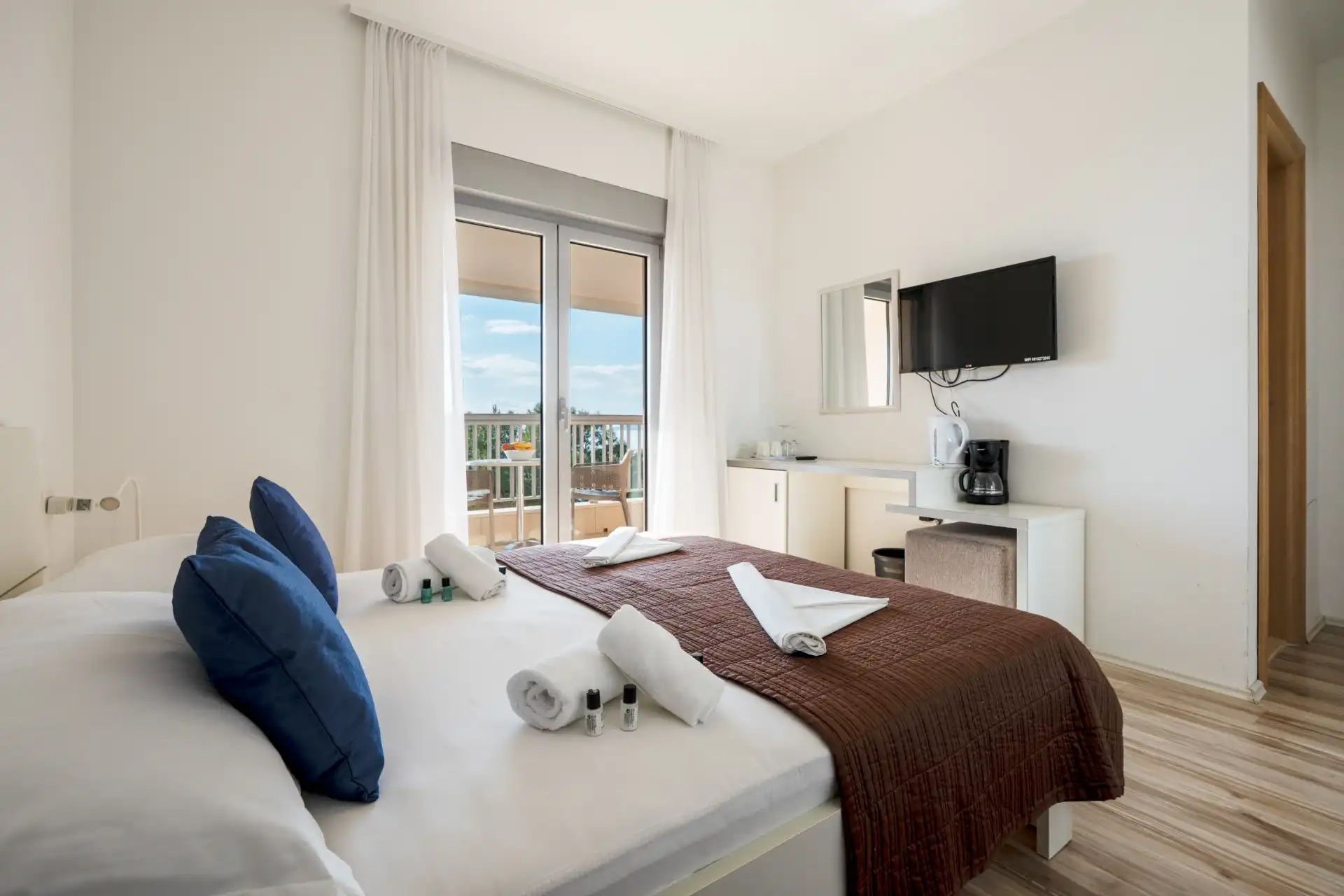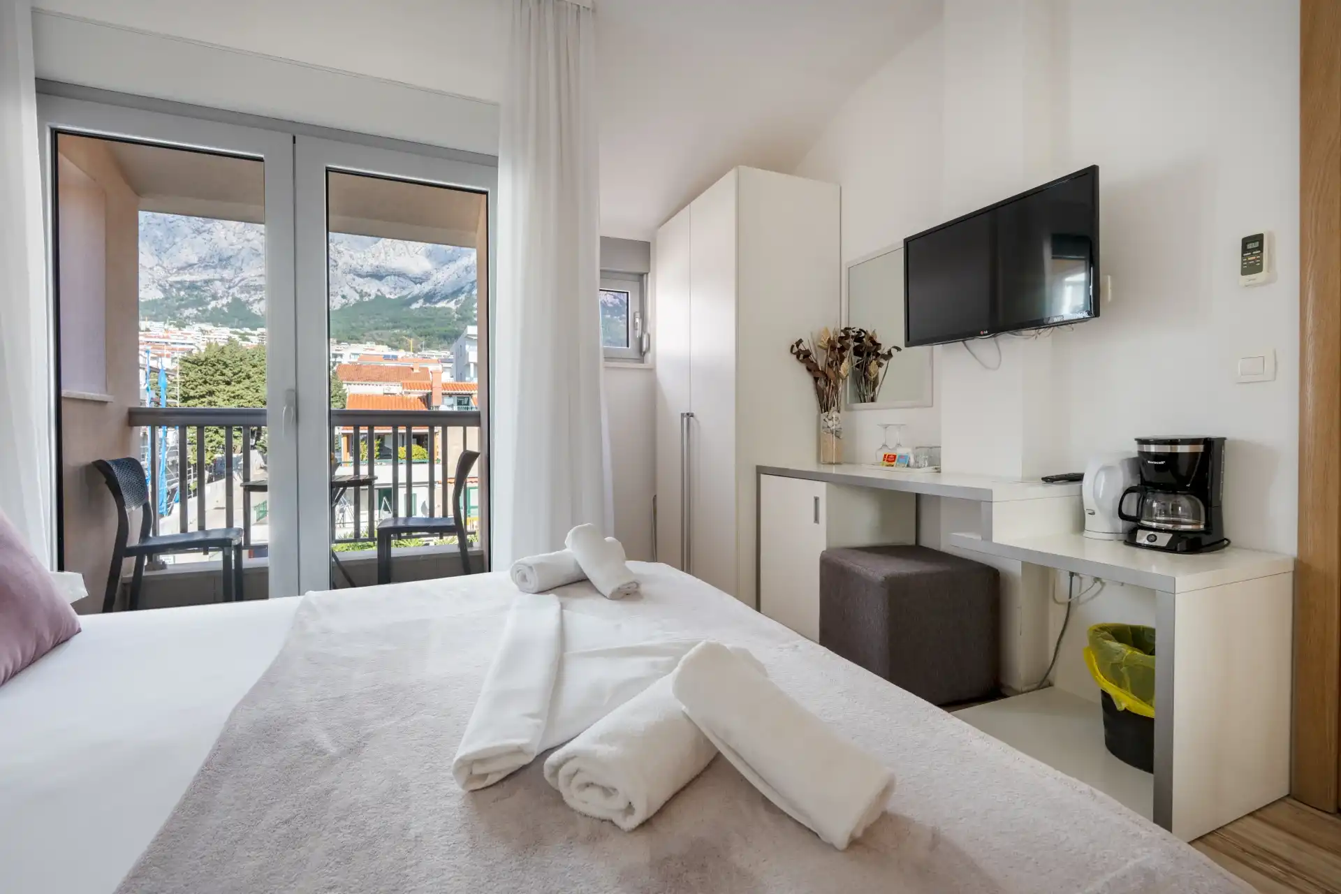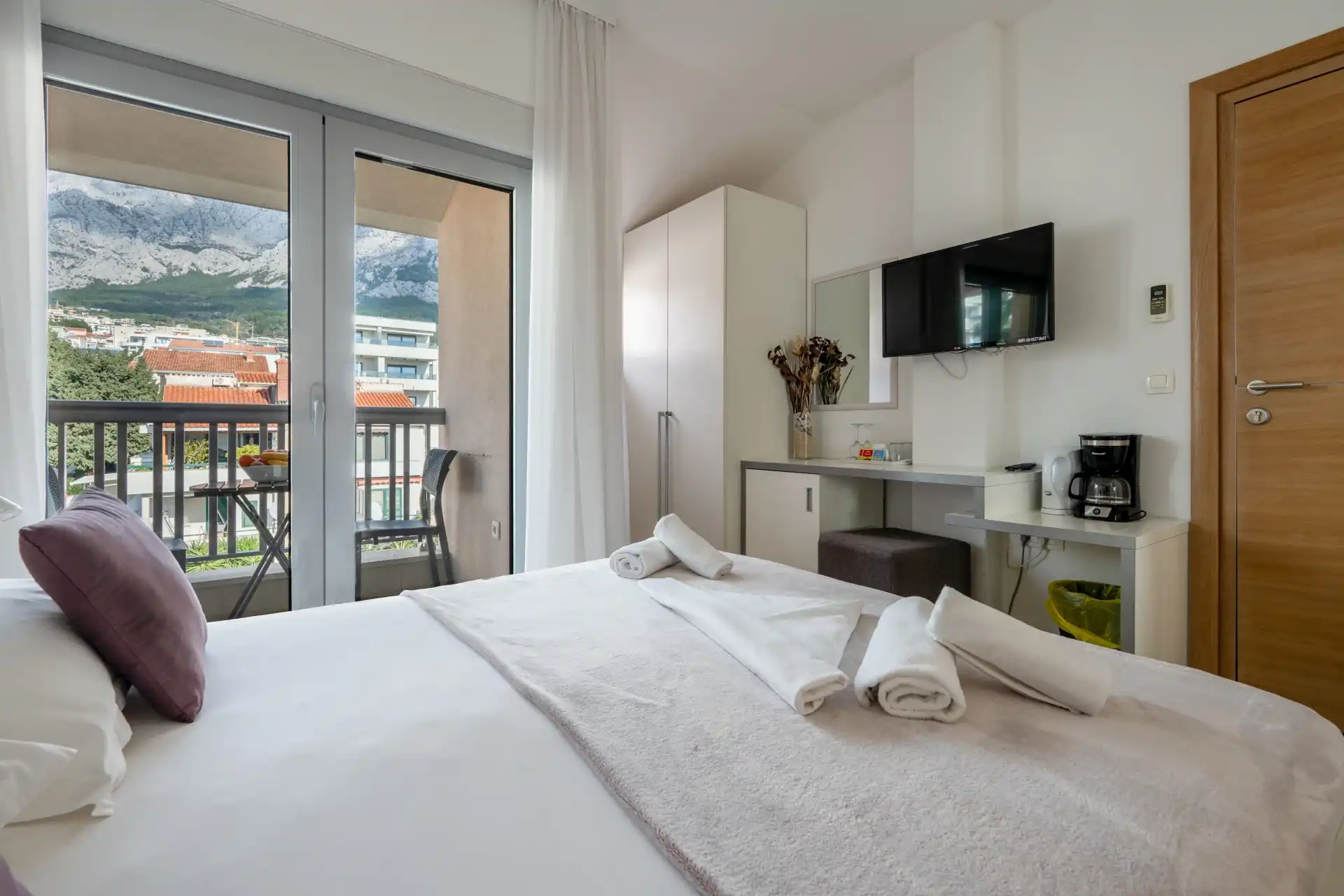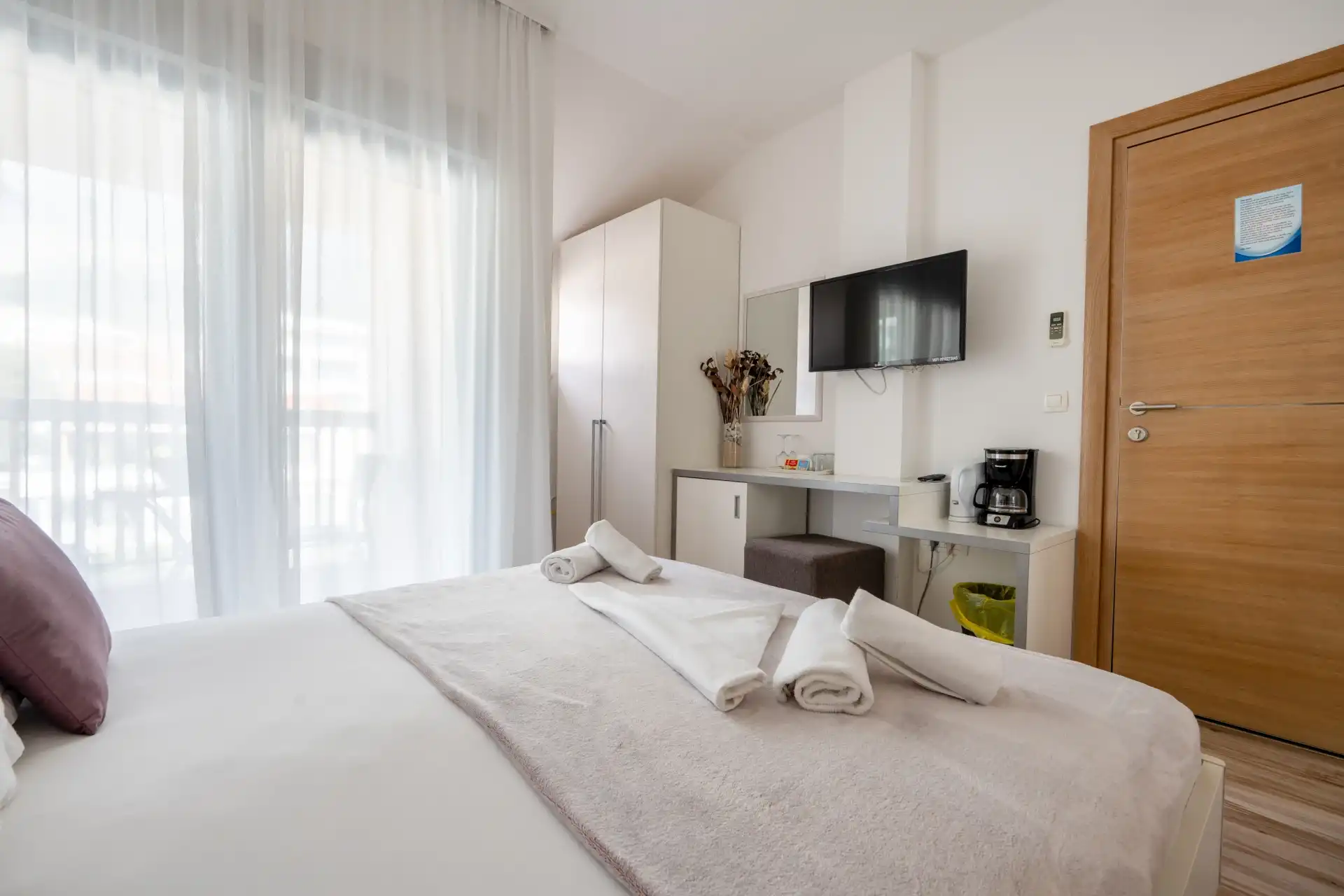 Apartmani Simic nude vrhunski smještaj na idealnoj lokaciji, svega 10-ak metara od mora, s očaravajućim pogledom na obalu. Sastoji se od četiri kata, a svaki kat sadrži različite vrste apartmana koji zadovoljavaju potrebe svih gostiju. Na prvom i drugom smješteni su prostrani dvosobni apartmani, savršeni za obitelji ili veće grupe. Svaki apartman opremljen je modernim namještajem, kuhinjom, dnevnim boravkom i balkonima s pogledom na more, omogućujući gostima udoban i ugodan boravak. Trosobni apartman na trećem katu nudi još više prostora i luksuza, idealan za veće obitelji ili grupe koje žele uživati u maksimalnom komforu i privatnosti. S tri spavaće sobe, dnevnim boravkom i velikim balkonima, ovaj apartman pruža potpunu privatnost za opuštanje i neometan užitak u prelijepom pogledu na more. Na četvrtom katu smješteni su studio apartmani, idealni za parove ili samostalne putnike koji traže intimu i udobnost. Svaki studio apartman posjeduje balkon, savršen za jutarnje opuštanje uz kavu ili uživanje u zalasku sunca. Kompleks također nudi garažni parking smješten ispod objekta,ili pak u zakupljenom posjedu 200 m od posjeda , čime je gostima omogućena sigurnost i bezbrižnost tijekom boravka. Parking se naplaćuje dodatno. S obzirom na blizinu mora i mirnu lokaciju, ovaj apartmanski kompleks savršeno je mjesto za opuštanje, uživanje u suncu i moru i nezaboravno ljetovanje.