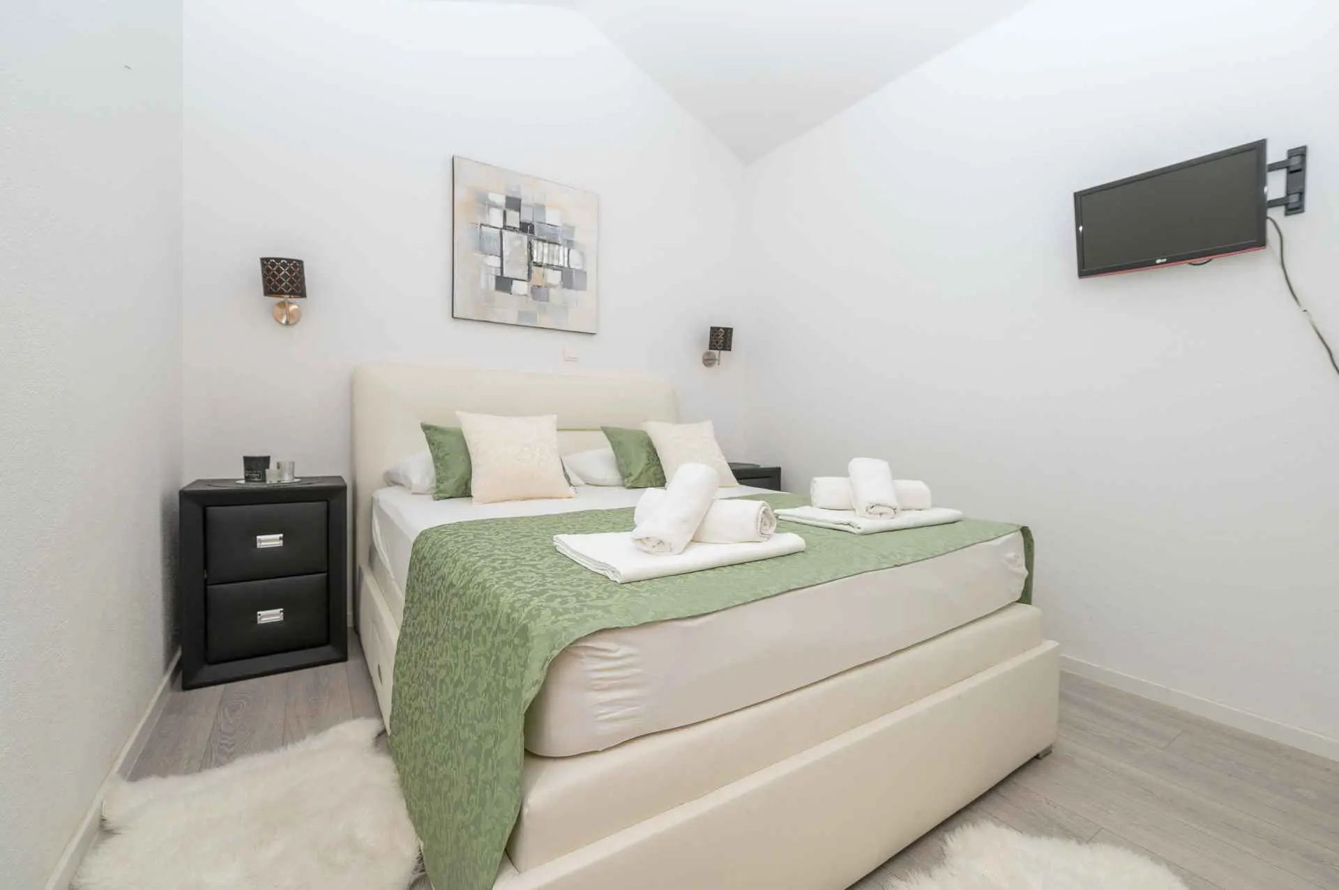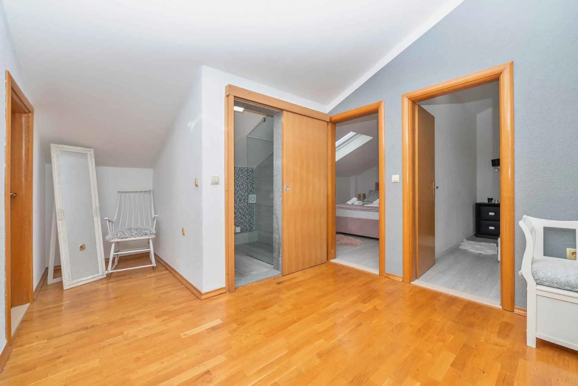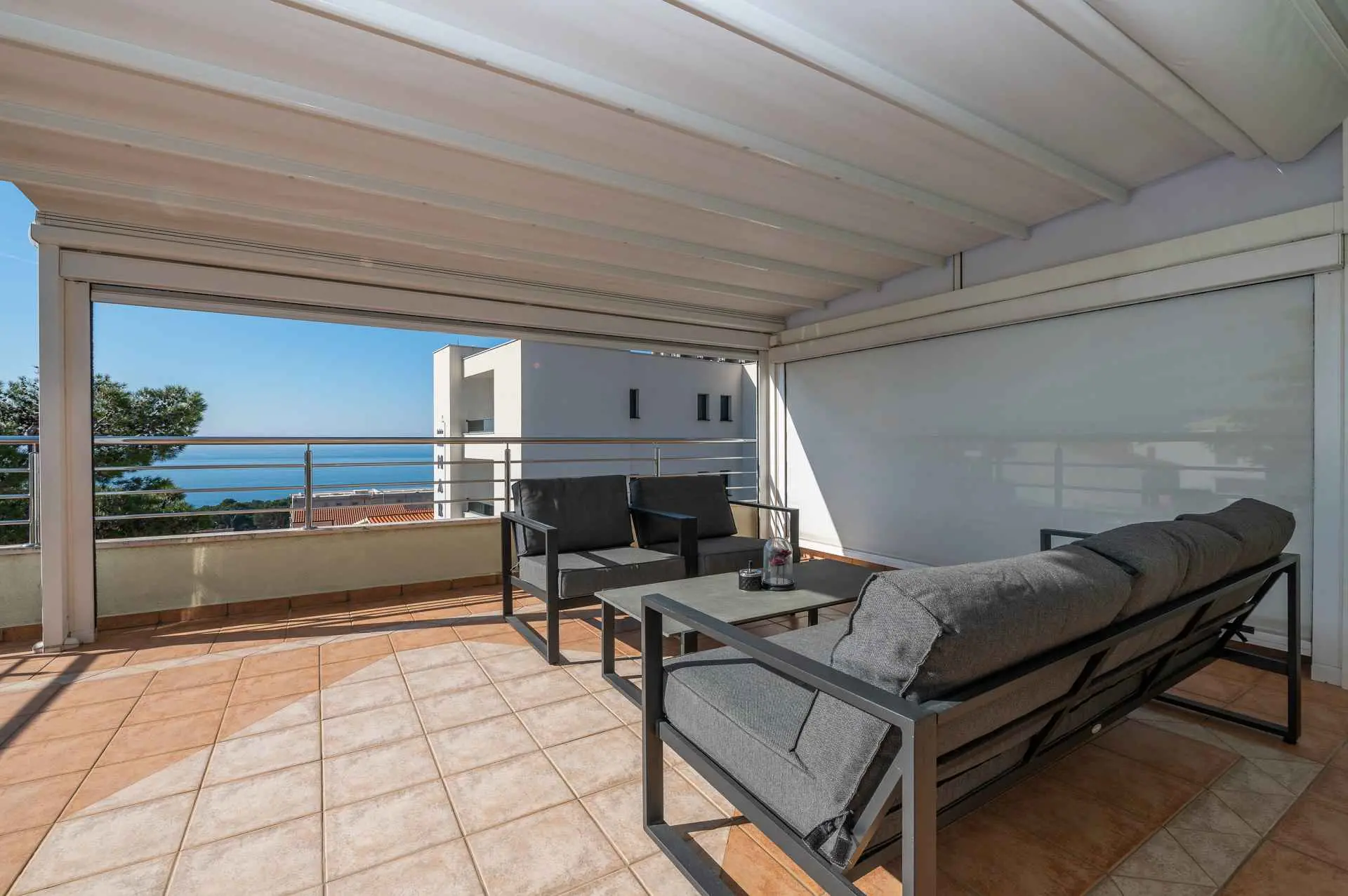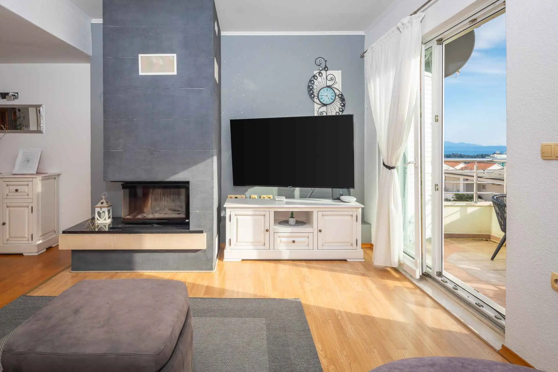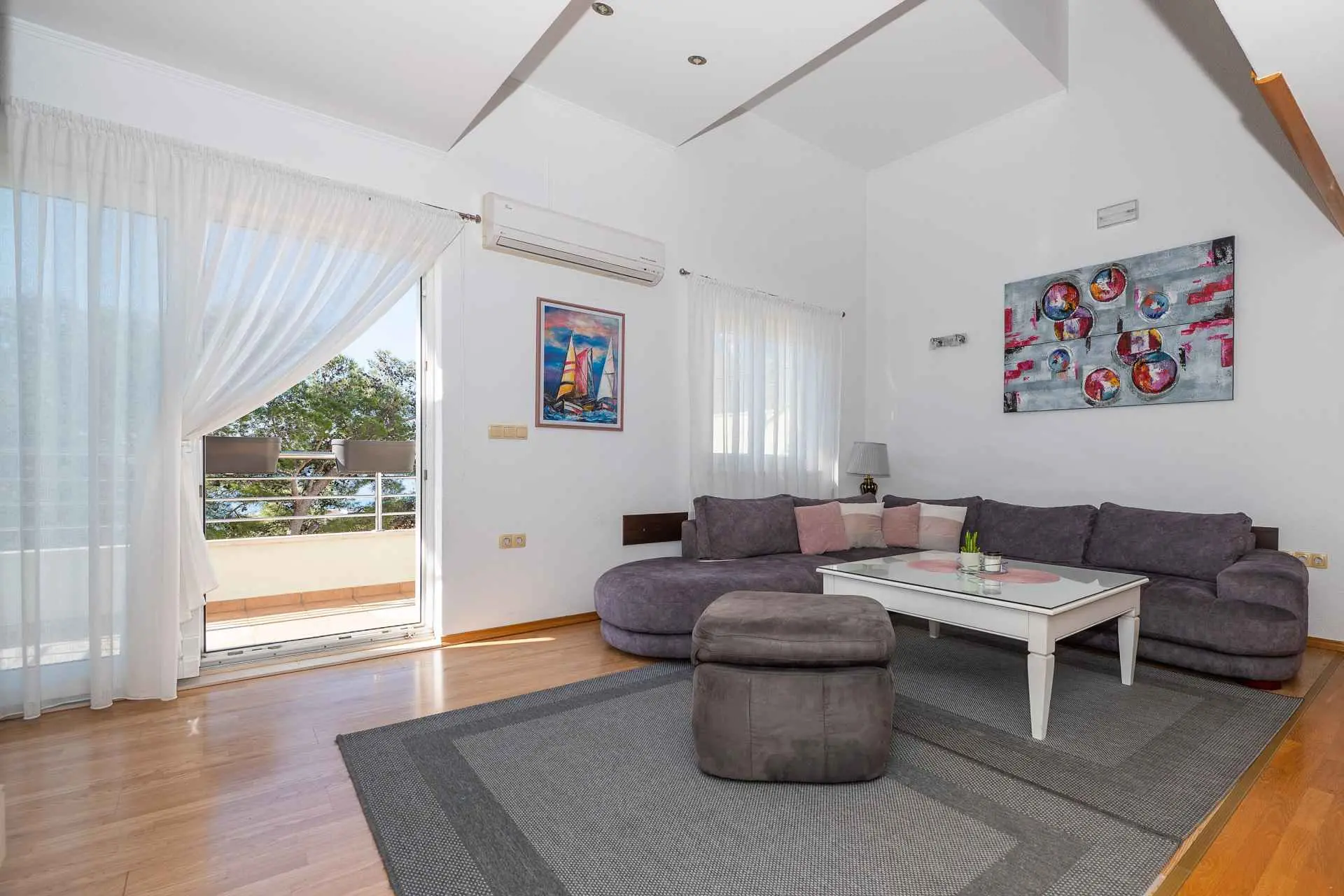 Dobrodošli u naš penthouse apartman u Makarskoj! Naš apartman se nalazi samo 450 metara od prekrasne plaže, te ima prostranu natkrivenu terasu s djelomičnim pogledom na more. Na donjoj etaži apartmana, smješten je prostrani dnevni boravak i potpuno opremljena kuhinja, dok se na gornjoj etaži nalaze udobne spavaće sobe. Za vašu udobnost, osigurali smo dva parkirna mjesta koja su uključena u cijenu. Naše osoblje vam je dostupno za savjet i pomoć tijekom vašeg boravka. Rezervirajte svoj boravak u našem penthouse apartmanu i uživajte u istinskom komforu.
