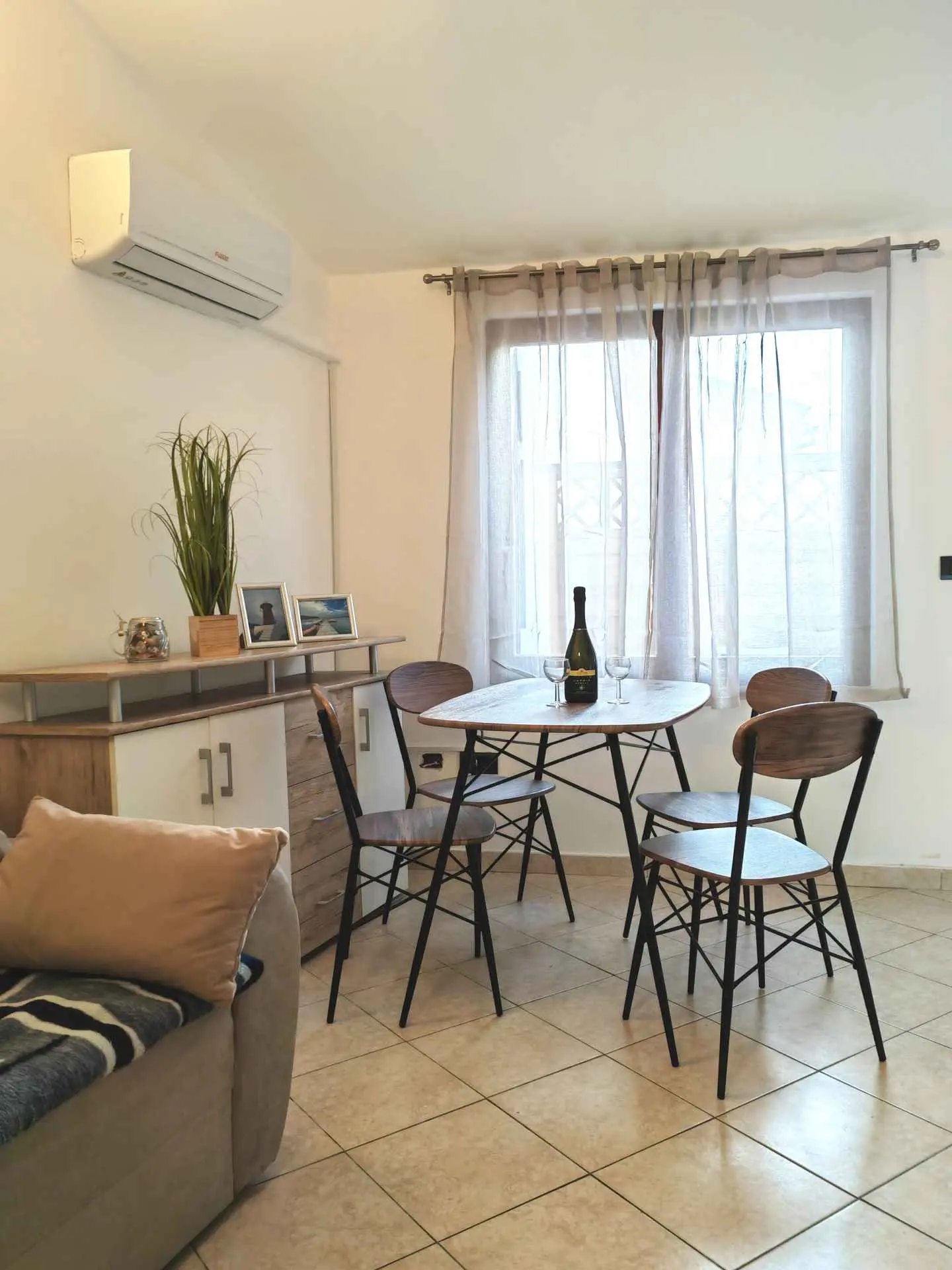 Apartman se nalazi u mirnom okruženju Medulina. Nalazi se na blagoj uzvišenosti i blizu je centra Medulina. Apartman veličine 45 m² u prizemlju može primiti do četiri osobe (maksimalno 3 odrasle osobe). Na raspolaganju vam je spavaća soba, kupaonica i dnevni boravak/blagovaonica s kuhinjom. U dnevnom boravku, kauč na razvlačenje nudi prostor za dvije osobe. Ima svoju terasu. Smještaj je dobro opremljen i nudi, između ostalog, Wi-Fi internet i satelitsku TV. Kuhinja potpuno opremljena, a ima i perilicu za rublje. Objekt je udaljen samo 600 metara od poznate pješčane plaže Bijeca i blizu je svim sadržajima. Objekt se nalazi u samom centru grada, pa je stoga parkirno mjesto osigurano 200 metara od objekta.