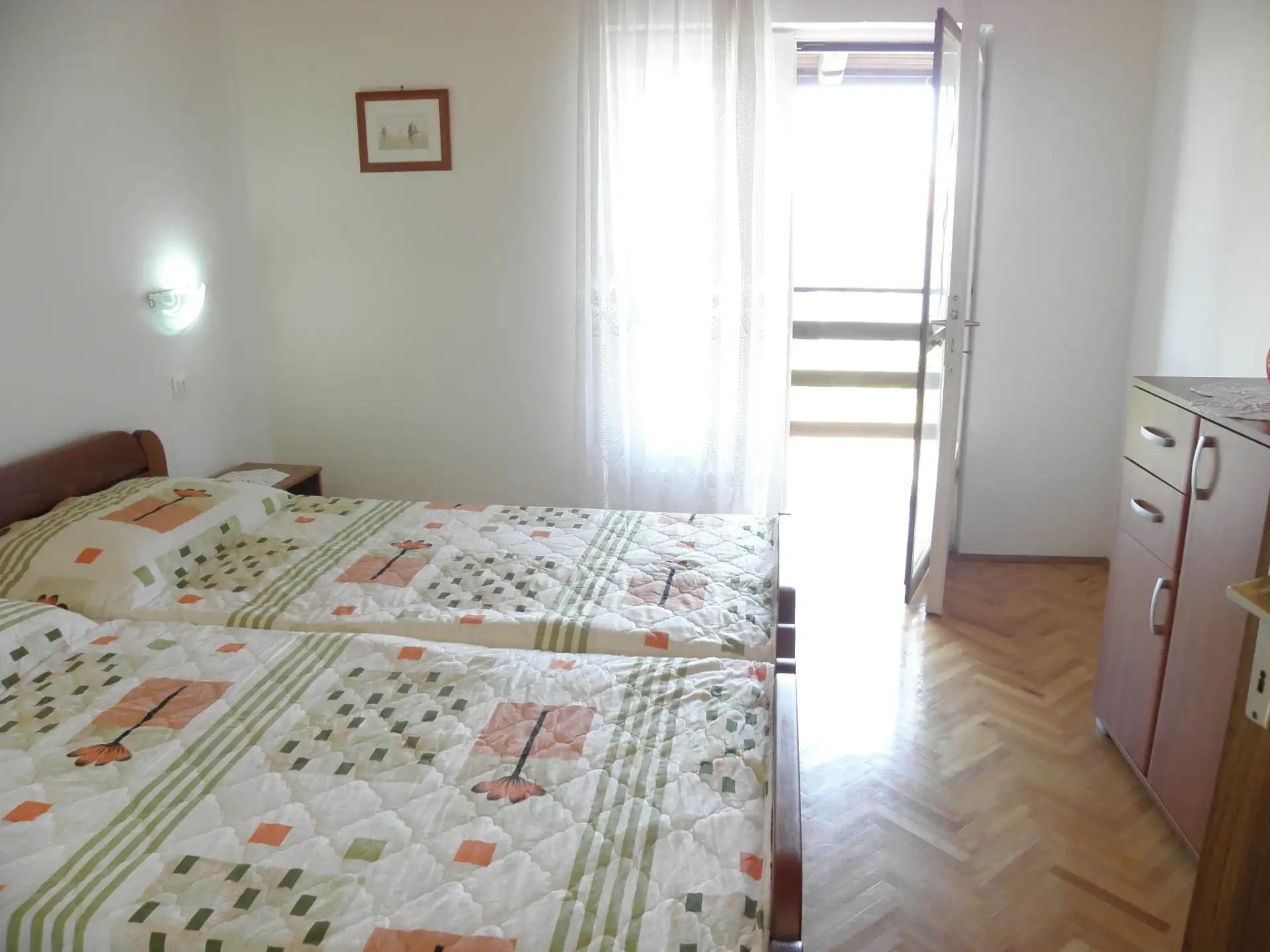 Apartman se nalazi od centra Nina udaljen cca 1 km što garantira provod godišnjeg odmora u miru i tišini. Od mora su udaljeni oko 100 metara. Gosti imaju osigurano jedno parkirno mjesto APARTMAN (2/4) - dvosobni apartman na prvom katu. Sobe su dvokrevetne. Na raspolaganju su kuhinja i dnevni boravak uz uporabu televizora sa satelitskom antenom, WI FI, klima uređaj, WC s kupatilom (tuš kabina) i terasa. Kućni ljubimci nisu dozvoljeni.