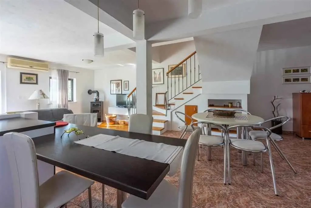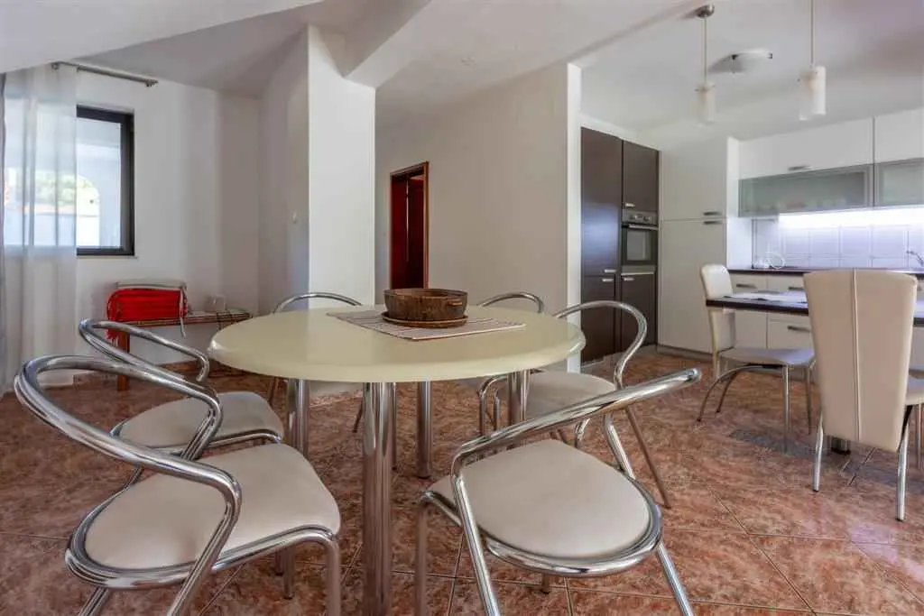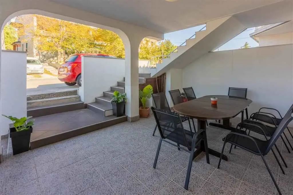 Provedite odmor na Kvarneru, u Novom Vinodolskom nedaleko Crikvenice! Kuća se nalazi 800 m od plaže. Povoljne cijene. Kapacitet: 12 osoba. U kući se nalazi : - četverosobni apartman za 8 osoba, na dvije etaže, 1.kat i potkrovlje, s tri kupaonice, odlično opremljenom kuhinjom i prostranim dnevnim boravkom, s dva balkona s pogledom na more, 160 m², - studio apartman za 2 osobe, 30 m², u prizemlju i - studio apartman za 2 osobe, 40 m², u prizemlju. Iznajmljuje se kao cjelina. Gosti mogu koristiti klima uređaj, WiFi, SAT-TV, aparat za kavu, mikrovalnu pećnicu, kuhalo za vodu, grill, vrt (70 m²), veliku terasu u prizemlju te besplatni parking. Četverosobni apartman je opremljen perilicom posuđa i perilicom za rublje. Kućni ljubimci su dopušteni uz nadoplatu od 10 €. Objekt je udaljen 700 m od restorana i trgovine. Udaljenost do stjenovite i šljunčane plaže je 800 m. Plaža Škrpun: 1,4 km. Idealno za obitelji s djecom, parove i veće grupe. Posjetite Novi Vinodolski čije čisto more, prirodne ljepote, lijepe plaže i autohtone delicije nikog ne ostavljaju ravnodušnim!