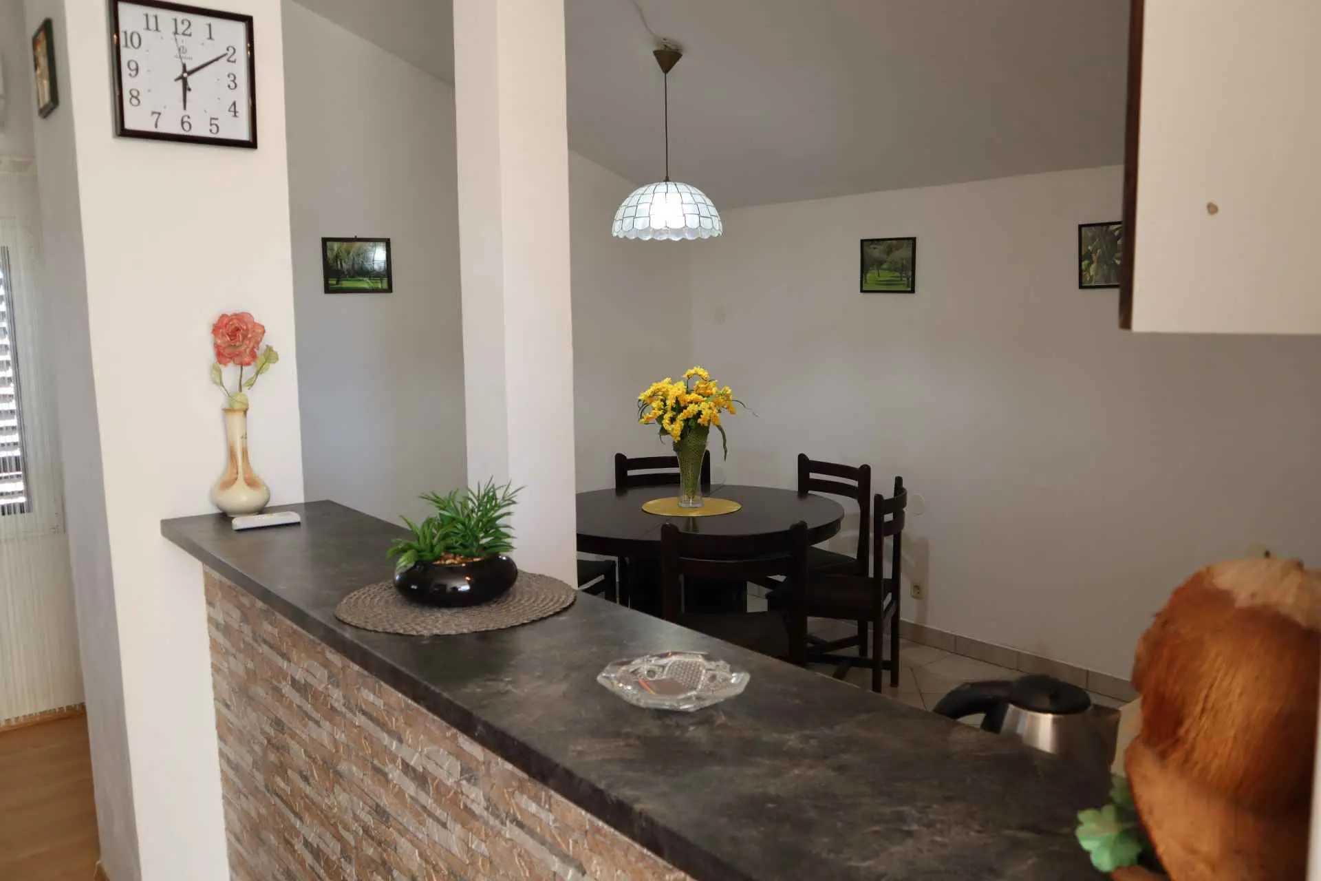 Apartman Mario se nalazi u obiteljskoj kući i okružen je zelenilom. Apartmani je okrenuti prema moru, tako da sa terase imate predivan pogled na Kornate. Zbog svog idealnog položaja, udaljeni su 900 metara, kako od mora, tako i od Vranskoj jezera, što vam pruža jedinstvenu mogućnost da se u istom danu kupate u moru ili u jezeru. Nudimo odličan smještaj svim gostima naturistima koji se mogu kupati na FKK plaži Pilatuša. Za goste smo osigurali veliki parking, te dodatne sadržeje: piće dobrodošlice, veliki grill, dodatne vanjske tuševe, ograđeno dvorište pogodno za malu djecu i dr. Za sve naše goste bicikliste postoji idealna biciklistička staza oko Vranskog jezera. Od Fun Parka Mirnovec udaljeni smo samo 2, 5 km. , pa vam možemo osigurati kvalitetan smještaj kada se odlučite posjetiti ovaj park