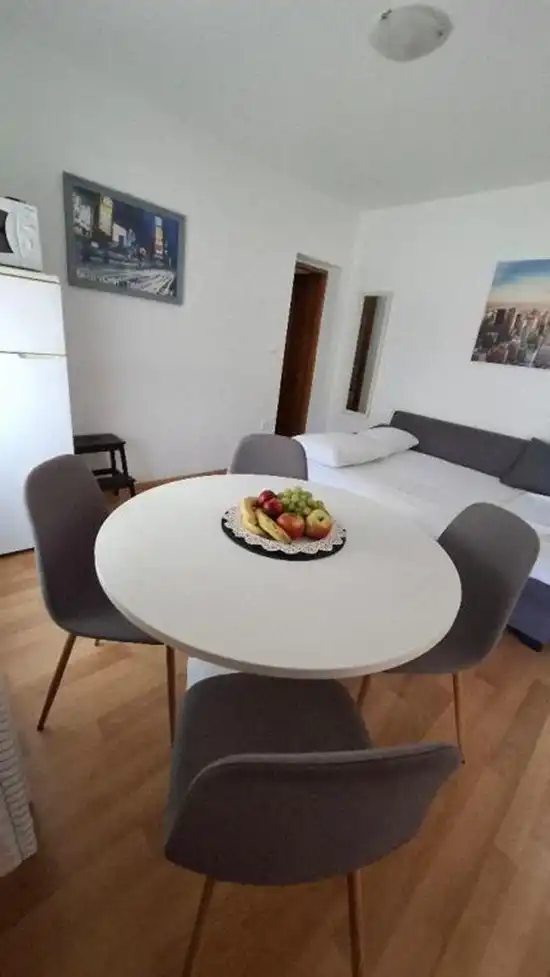 Kompletno i suvremeno opremljeni apartmani u mirnom predjelu, smješteni 5 minuta hoda do plaže, centra, šetnice.... Gostima su na raspolaganju za rezervacije apartmani sa dvije i jednom spavaćom sobom, studio apartman,te mobilna kućica.