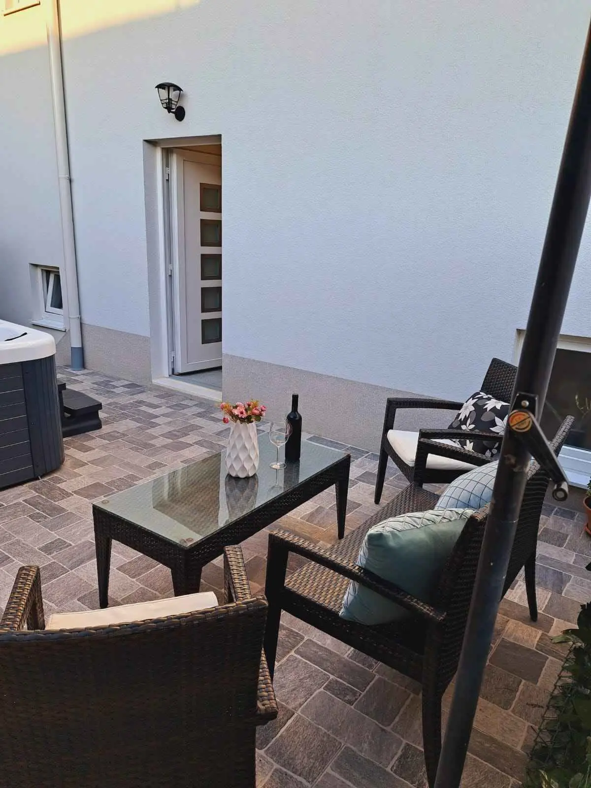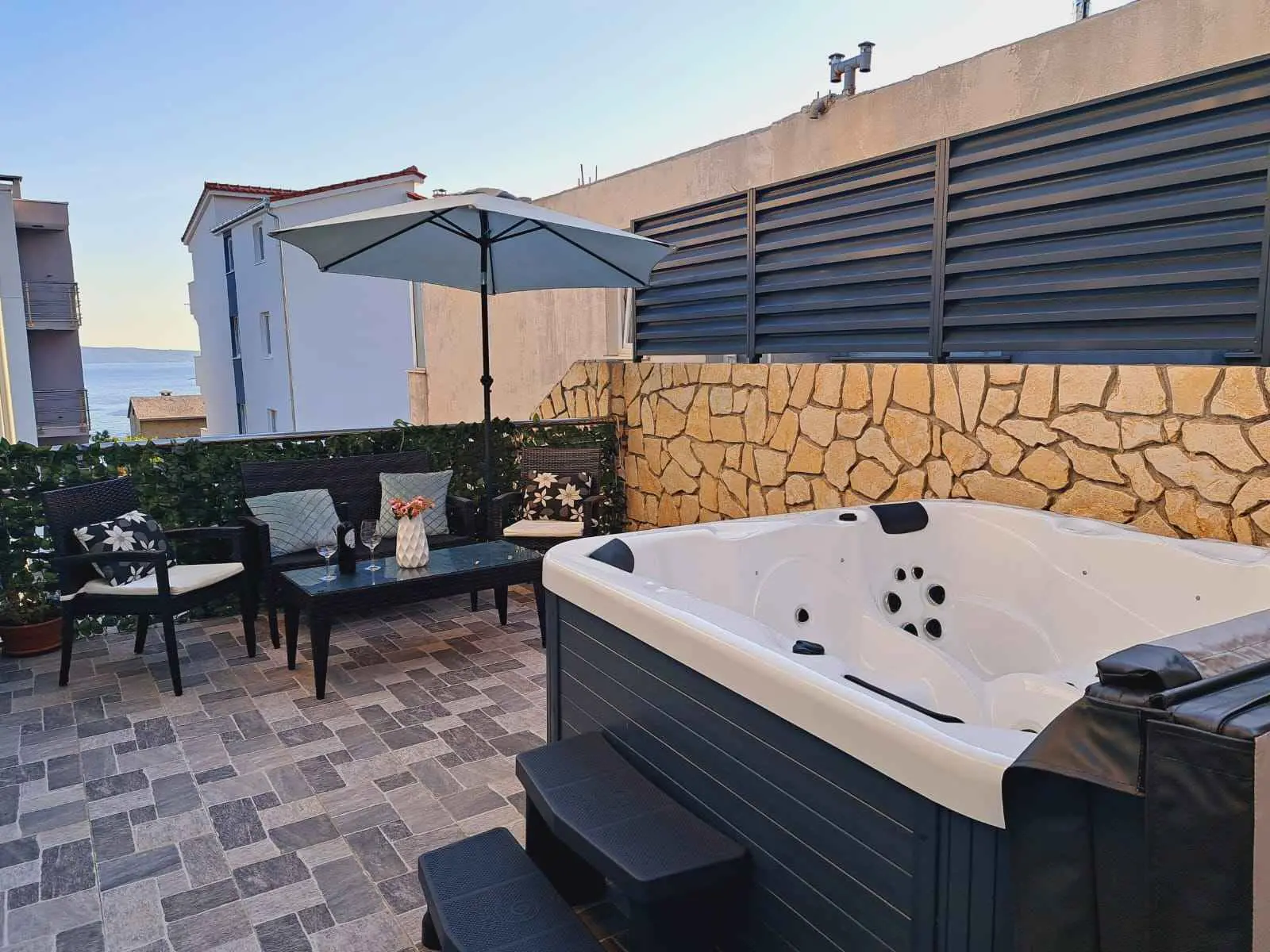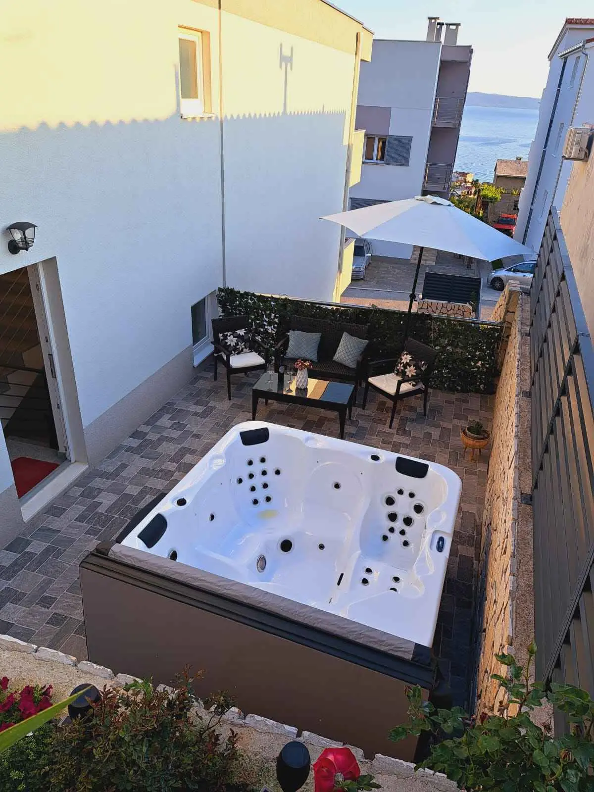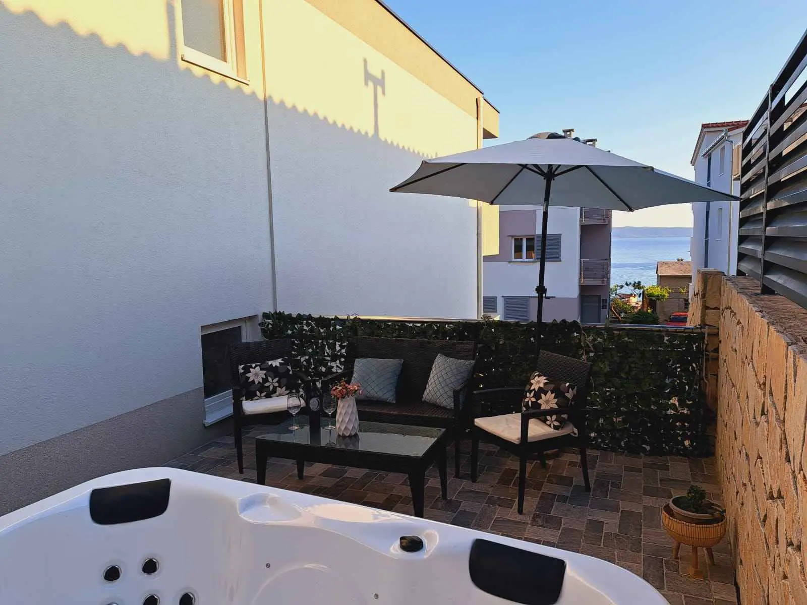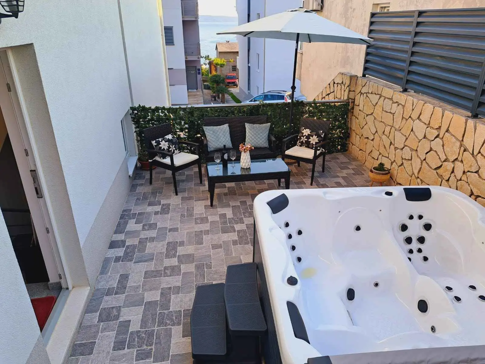 Apartman može primiti 8 gostiju. Ležajevi su raspoređeni u spavaćim sobama kojih ima 3, te u dnevnom boravku, unutar 114m2. Gosti mogu uživati u pogledu na more sa vlastite terase i jacuzziju. Dozvoljeno je pripremati hranu korištenjem roštilja. Apartman se nalazi u mirnom okruženju, idealan za vas savršeni odmor. Opremljen je sa svim što vam je potrebno. Kao vlasnik apartmana stojim vam na usluzi 24 sata. Nadam se da ćete izabrati upravo nas apartman za vaš nezaboravni odmor. Očekujemo vas!