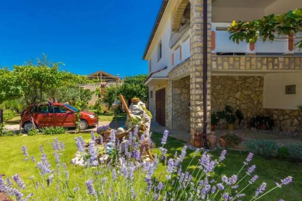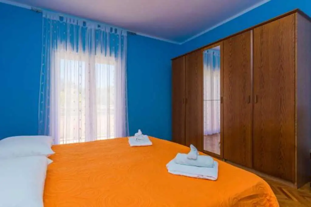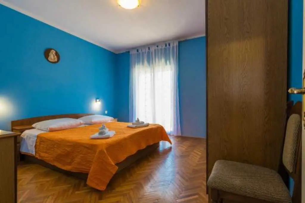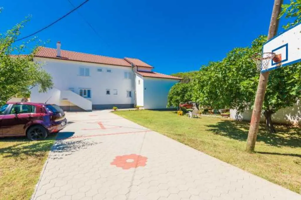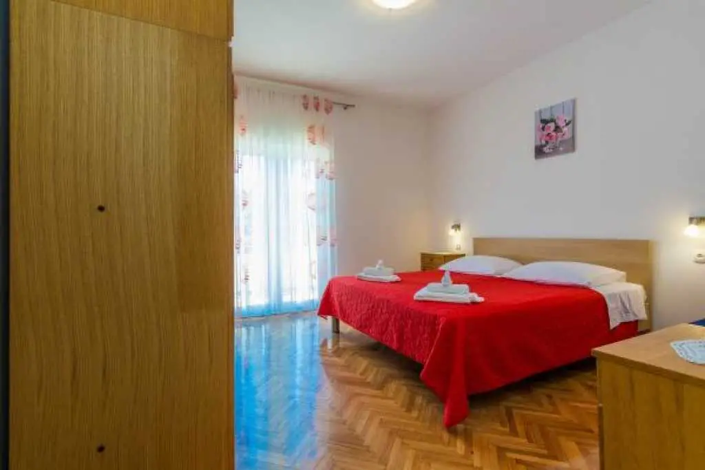 U prizemlju su dva apartmana A5 sa dvije spavaće sobe i pomoćnim ležajem, kuhinja kupatilo i odvojeni balkoni. Na prvom katu je studio apartman za 3 osobe sa bračnim krevetom i pomoćnim ležajem, kupatilo kuhinja i balkon. Također i apartman za 4-5 osoba sa dvije spavaće sobe kuhinjom kupatilo i balkonim. Parking, veliko dvorište idealno za djecu.