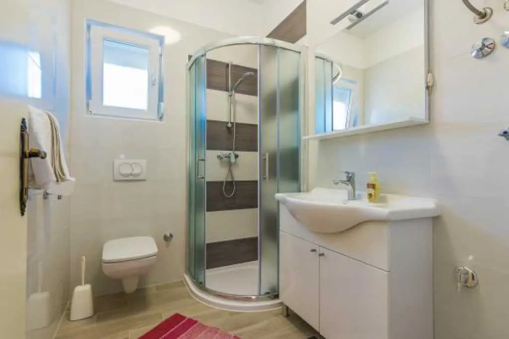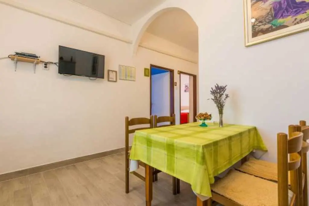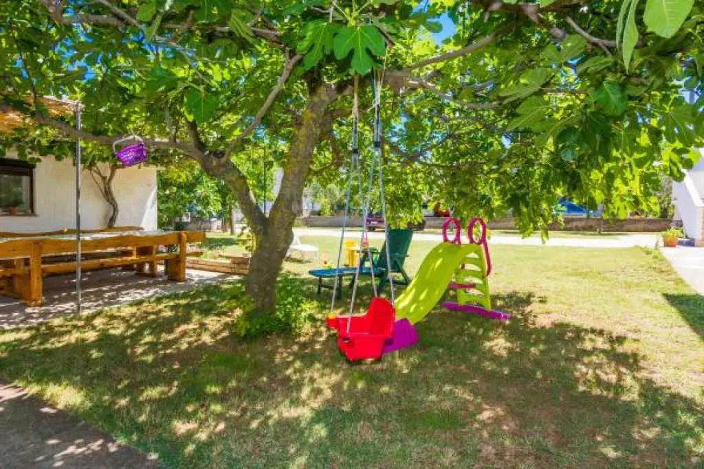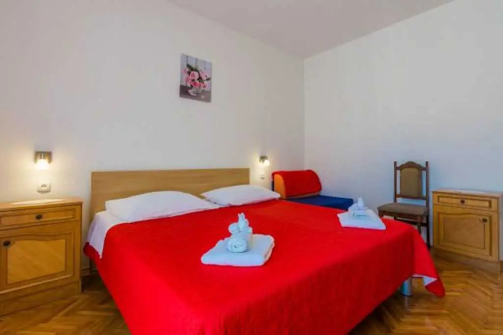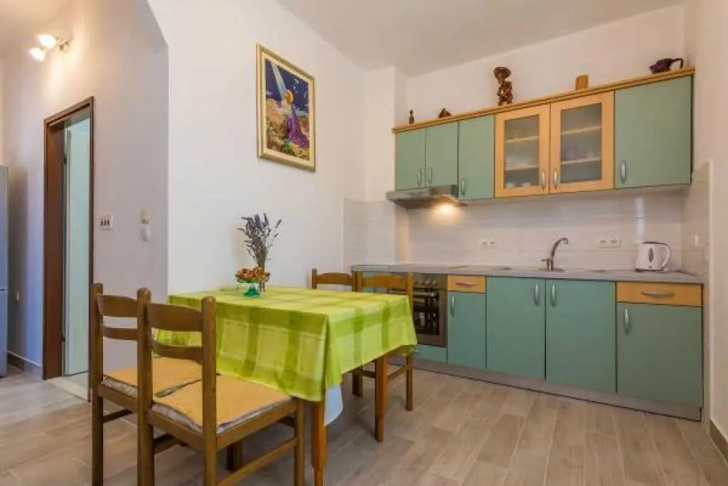 U prizemlju su dva apartmana A5 sa dvije spavaće sobe i pomoćnim ležajem, kuhinja kupatilo i odvojeni balkoni. Na prvom katu je studio apartman za 3 osobe sa bračnim krevetom i pomoćnim ležajem, kupatilo kuhinja i balkon. Također i apartman za 4-5 osoba sa dvije spavaće sobe kuhinjom kupatilo i balkonim. Parking, veliko dvorište idealno za djecu.