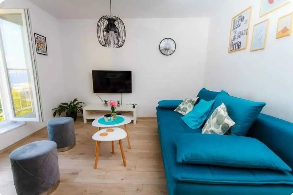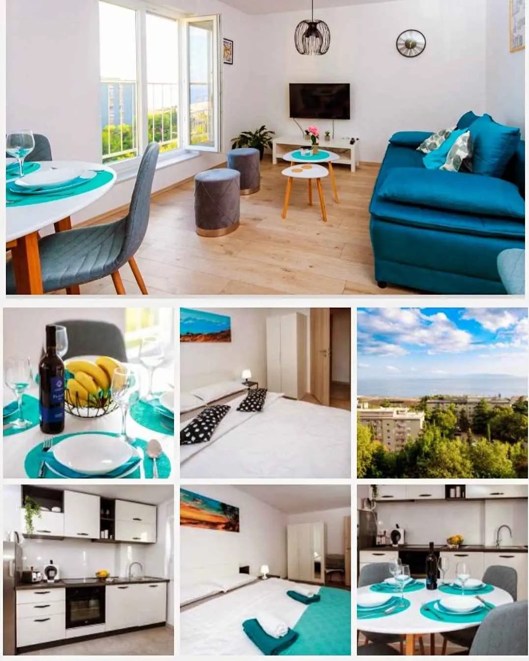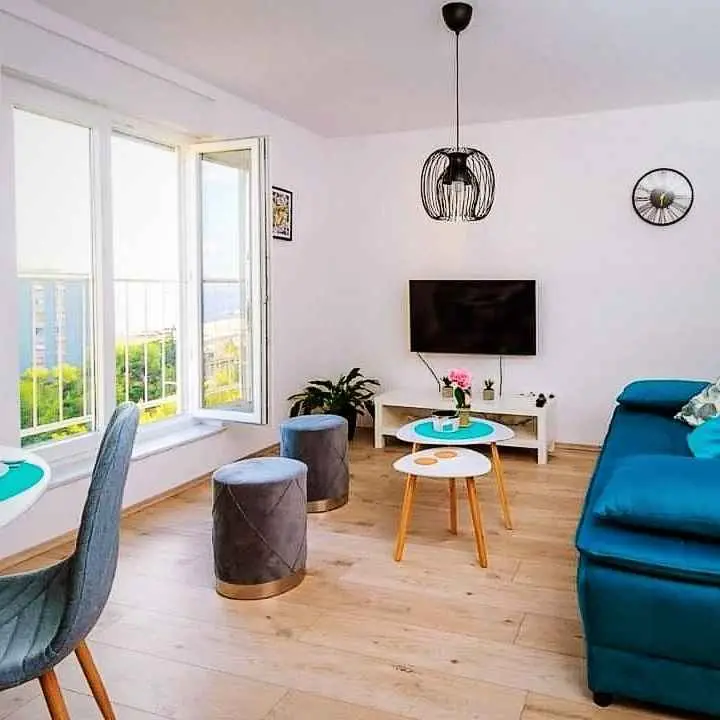 Apartman sa predivnim pogledom na cijeli Kvarnerski zalje, Opatiju, Rijeku, Krk te predivno Jadransko more nalazi se u zgradi bez lifta na 3. katu. Nalazi se u neposrednoj blzini centra grada te nedaleko Opatije. Prikladan za poslovne subjekte, ali i za obitelji s djecom. Apartman sadrži dnevni boravak s francuskim balkonom, kuhinju, 3 sobe, kupaonicu i wc, okružen zelenilom i parkovima. Gradska plaža, Kantrida, nalazi se 20ak minuta hoda od apartmana, odnosno tek 5 min automobiilom. Besplatan parking oko zgrade. Istra, Krk, Gorski kotar, Platak, Nacionalni park Risnjak nude se kao atraktivne lokacije za posjet u blizini Rijeke i naseg apartmana. Turnić. Blizina centra grada i mora. Mirna lokacija. Prikladna za obitelj. Zgrada bez lifta.