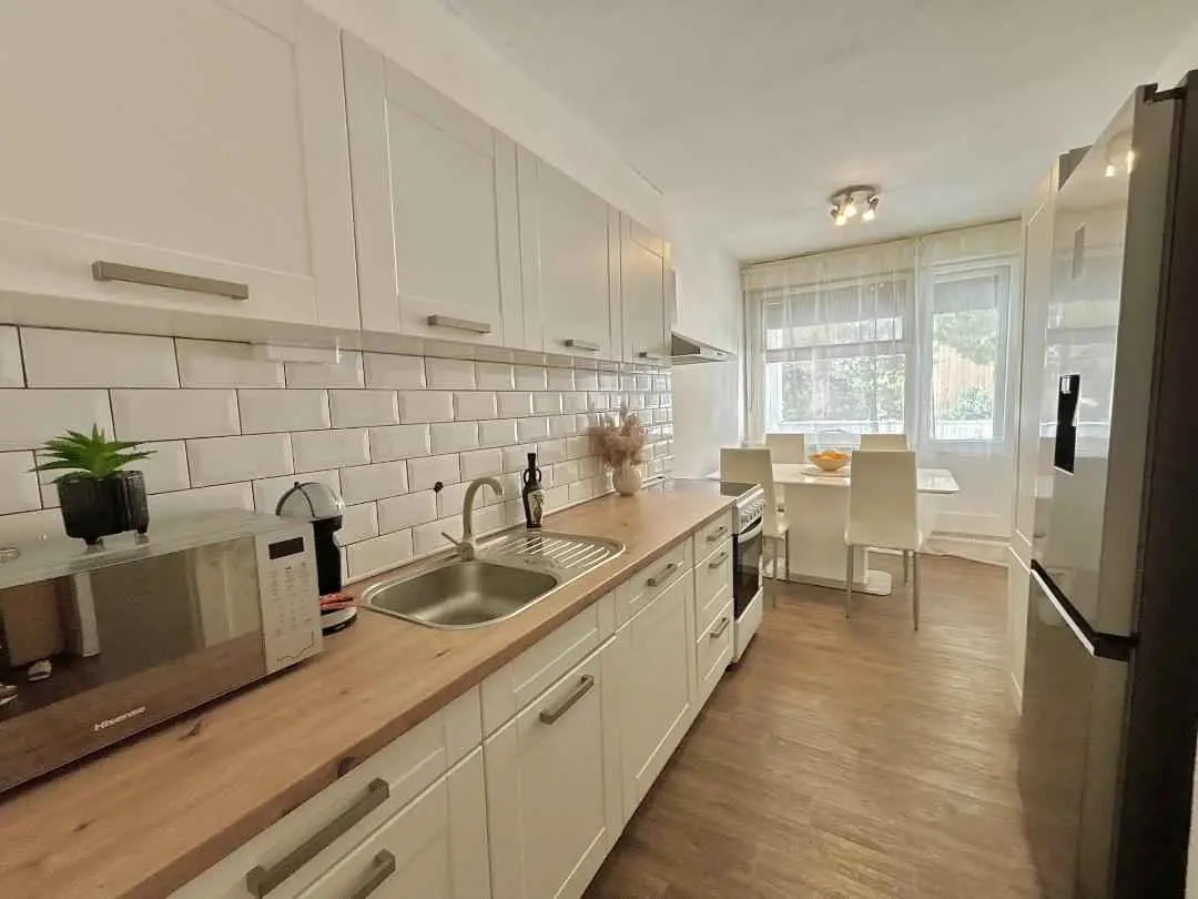 Apartman se nalazi na prvom katu četverokatnice i pogodan je za goste koji žele mir i tišinu. Do centra grada može se stići pješke za manje od 15 minuta, nalazi se na 1 km od Dioklecijanove palače, katedrale SV. Dujma i splitskog Hrvatskog narodnog kazališta. Poznata plaža "Bačvice" udaljena je samo 9 minuta vožnje automobilom. Autobusna stanica (za lokalne autobuse i autobuse koje dolaze iz zračne luke) je 1 minutu pješice od apartmana. Osiguran je besplatan parking ispred zgrade, te nudimo besplatan WIFI. Trgovine te kafići su na 150 metara od objekta.