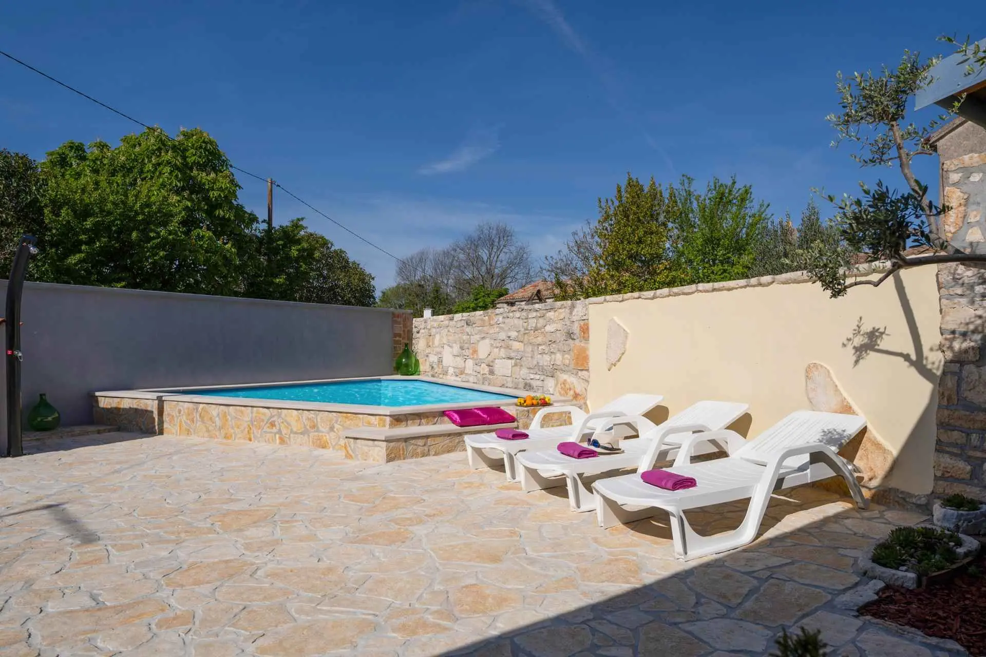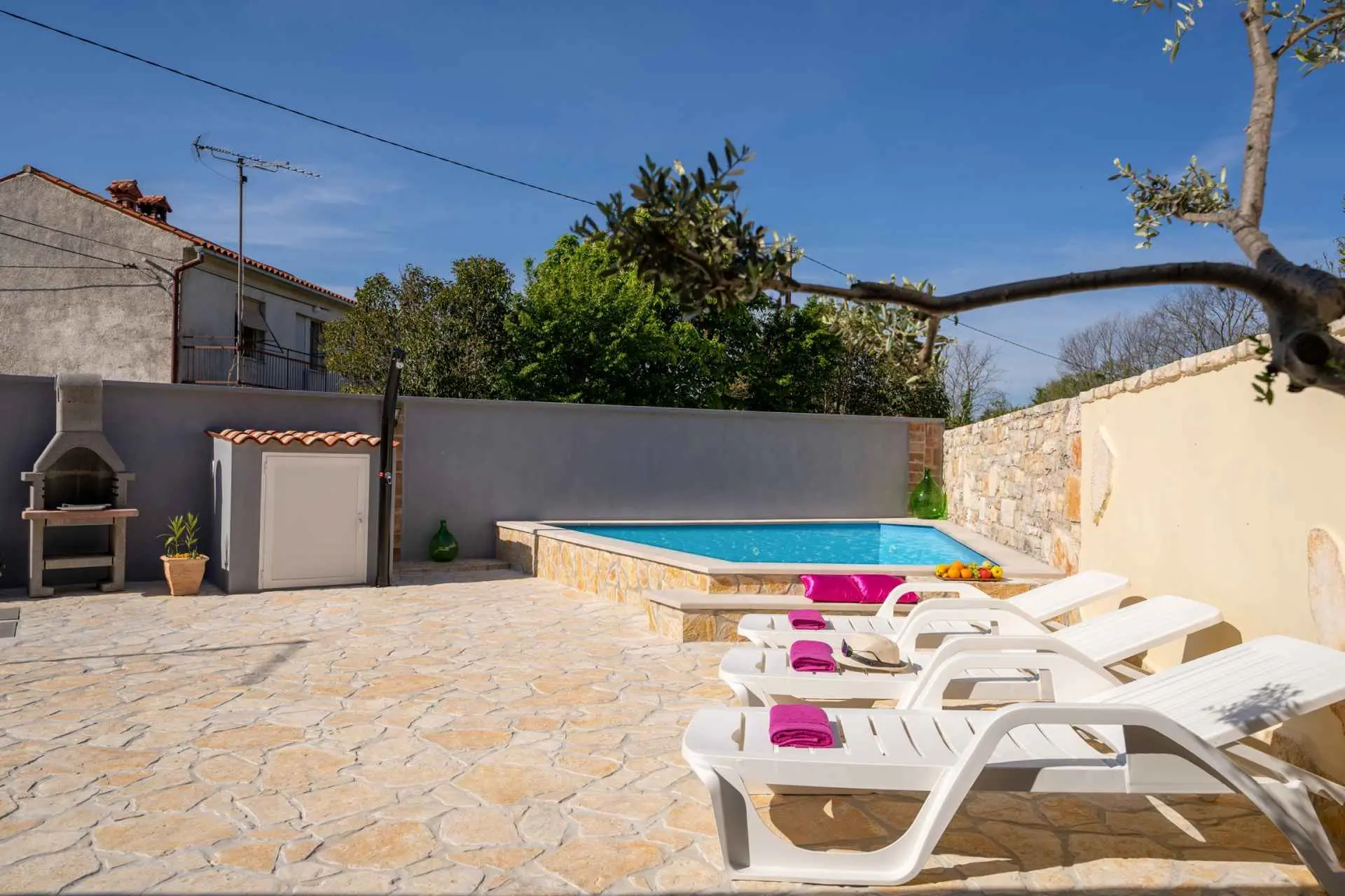 Casa Mia nalazi se u pitoresknom selu Butkovići koje se nalazi na pola puta od Vodnjana i Svetvinčenata. Ova kuća za odmor s dvije spavaće sobe ima pristup privatnom bazenu, velikom dvorištu s opremom za roštilj i vanjskom blagovaonicom. Gosti se mogu opustiti igrajući stolni nogomet u hladu. Prizemlje kuće sastoji se od dnevnog boravka s kaminom, kuhinje i kupaonice s tušem. Na katu su smještene spavaće sobe, kao i još jedna kupaonica s tušem. Dozvoljeno je uvesti kućne ljubimce do 10 kg. Nadoplata za kućne ljubimce iznosi 10 EUR po ljubimcu na noć (u gotovini pri dolasku). Bicikli se mogu čuvati u dvorištu.