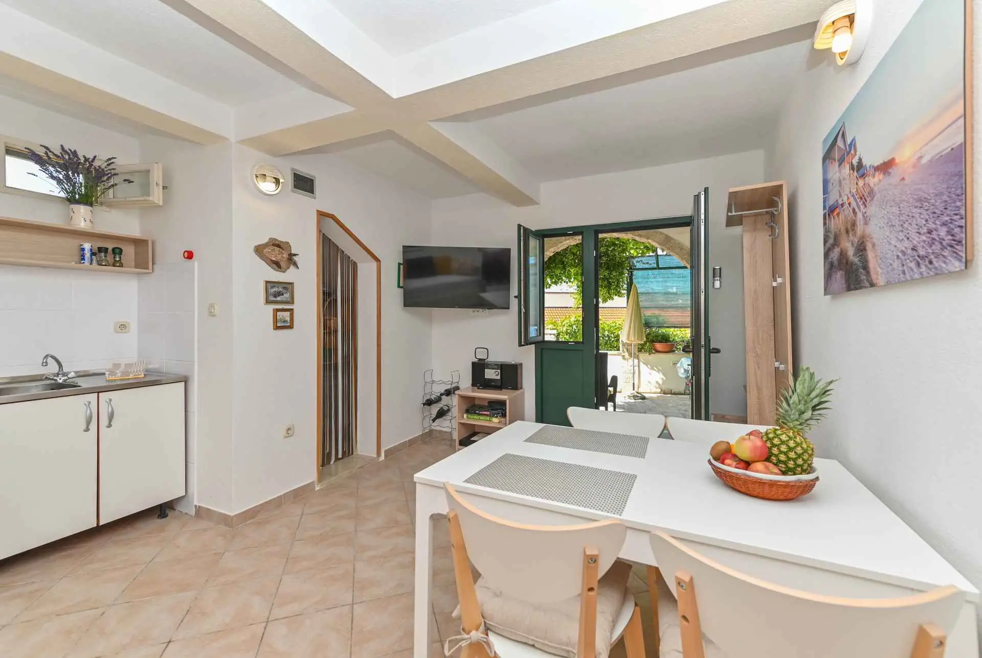 Otkrijte šarm kuće za odmor "Ana", okružene prirodom, samo 1.5 km od Tučepa. Ova kuća nudi smještaj za 2+2 osobe, s jednom spavaćom sobom i jednom kupaonicom. Minimalistički dizajn pruža udobnost i jednostavnost. Uživajte u miru i tišini prirode, daleko od gradske vreve. Idealno za opuštajući bijeg u srcu prirode. U ponudu je uključen parking.