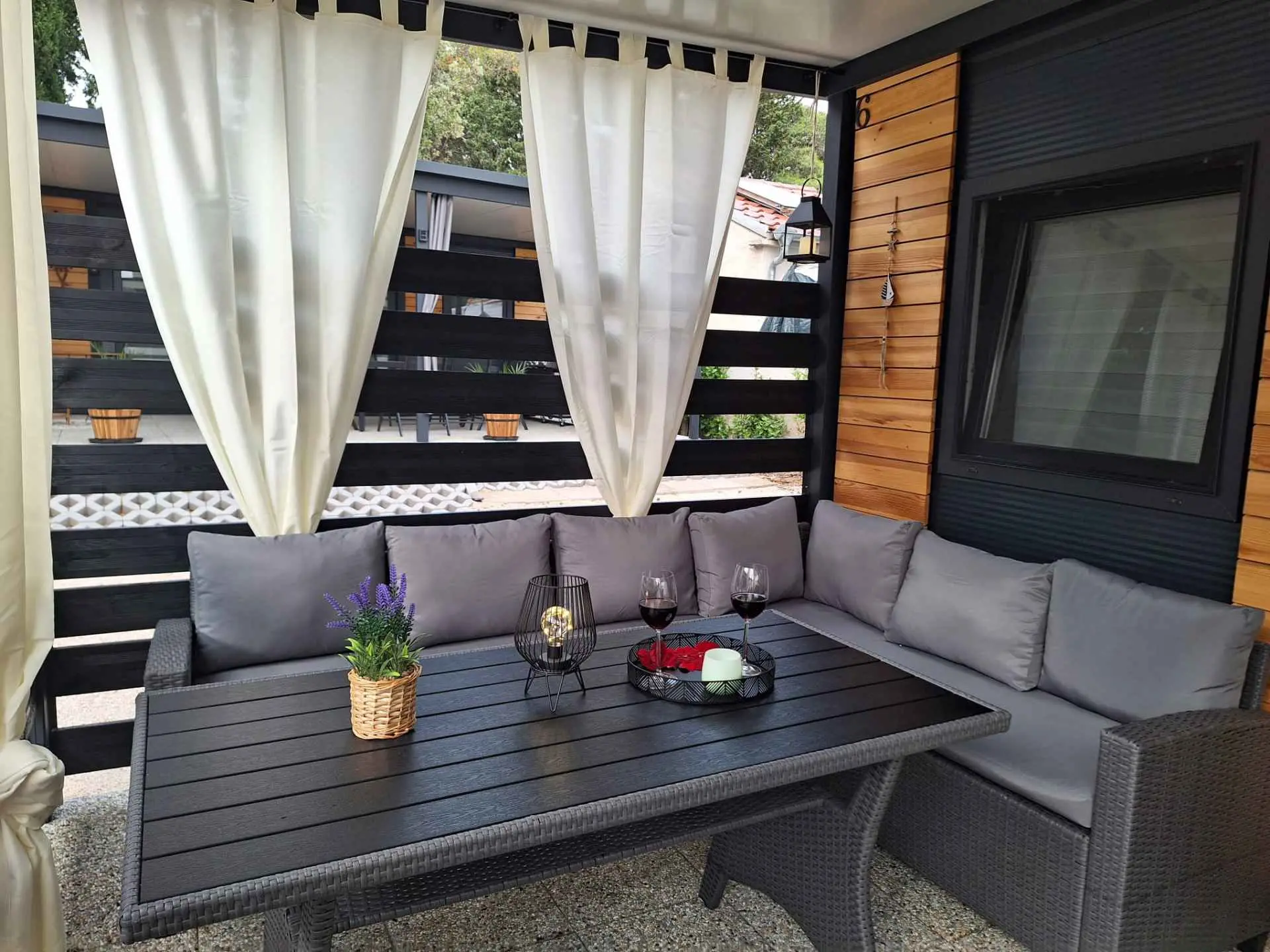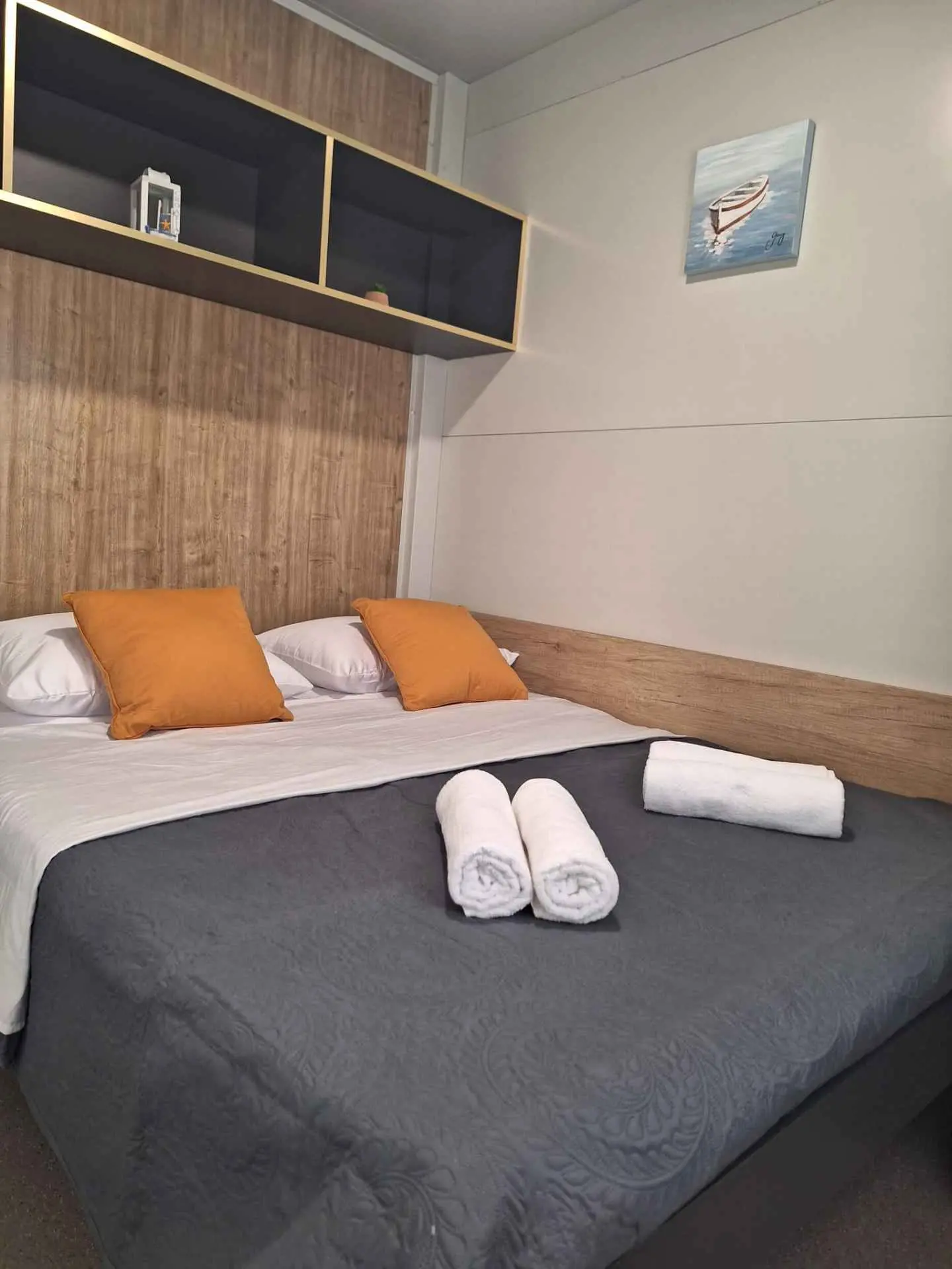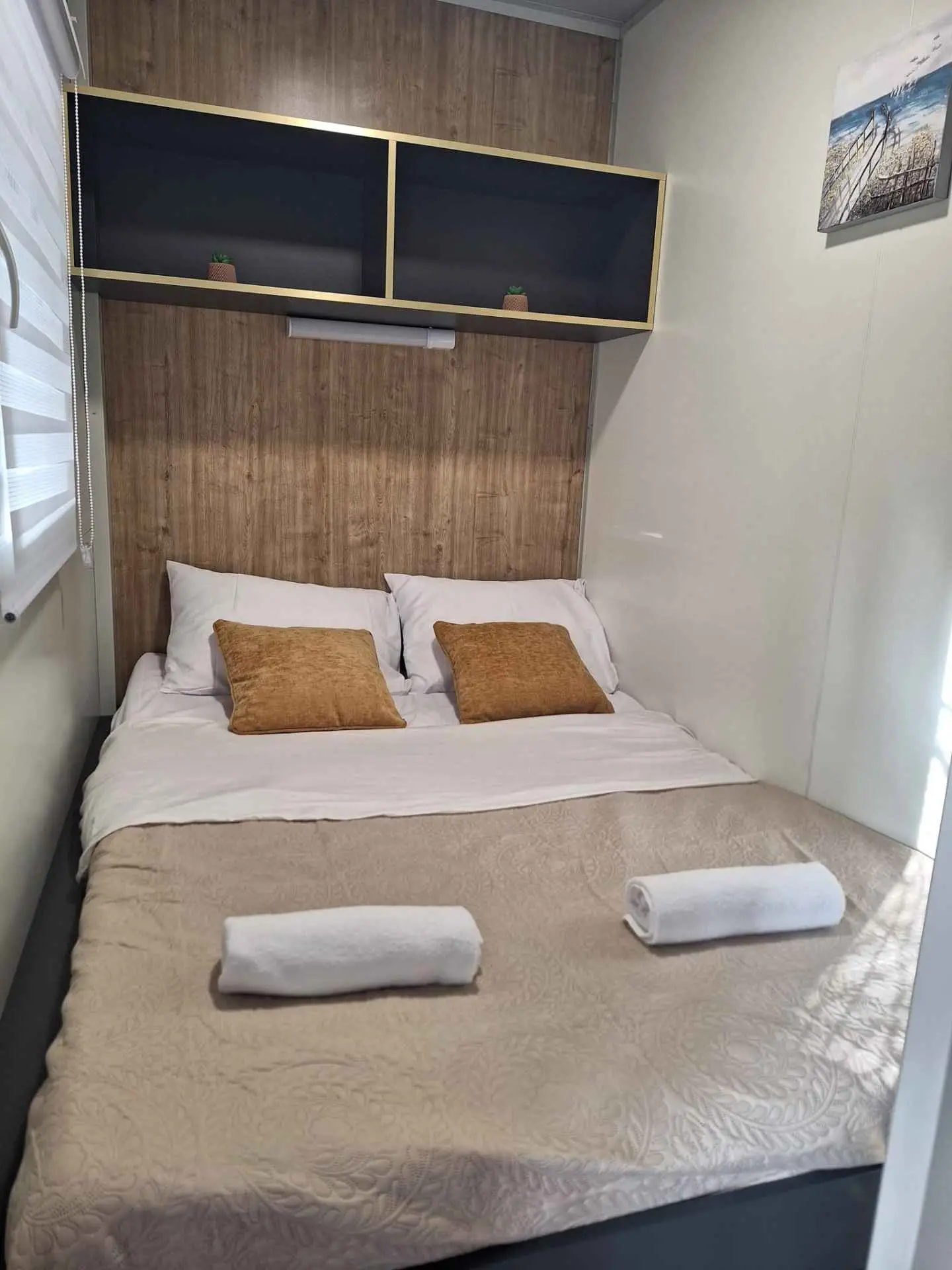 Mobilna kućica Sunny oasis smještena je u kampu Azzuro u mjestu Turanj. Od mora je dijeli samo cesta. Kućica se sastoji od dvije spavaće sobe sa bračnim krevetima, kupaone, kuhinje, dnevnog boravka i terase. Na terasi ćete naći veliki stol za uživanje u hrani na vanjskom zraku, kutnu garnituru za opuštanje te roštilj.