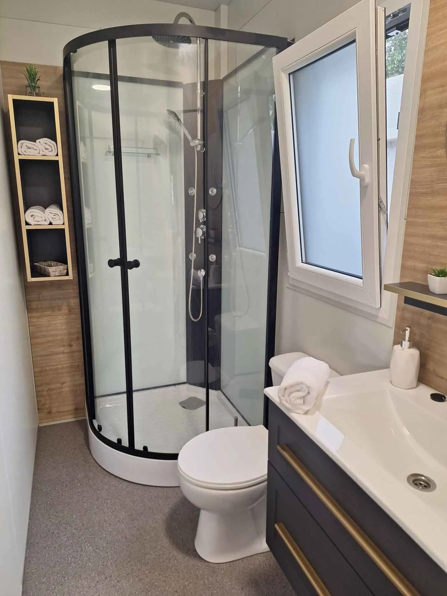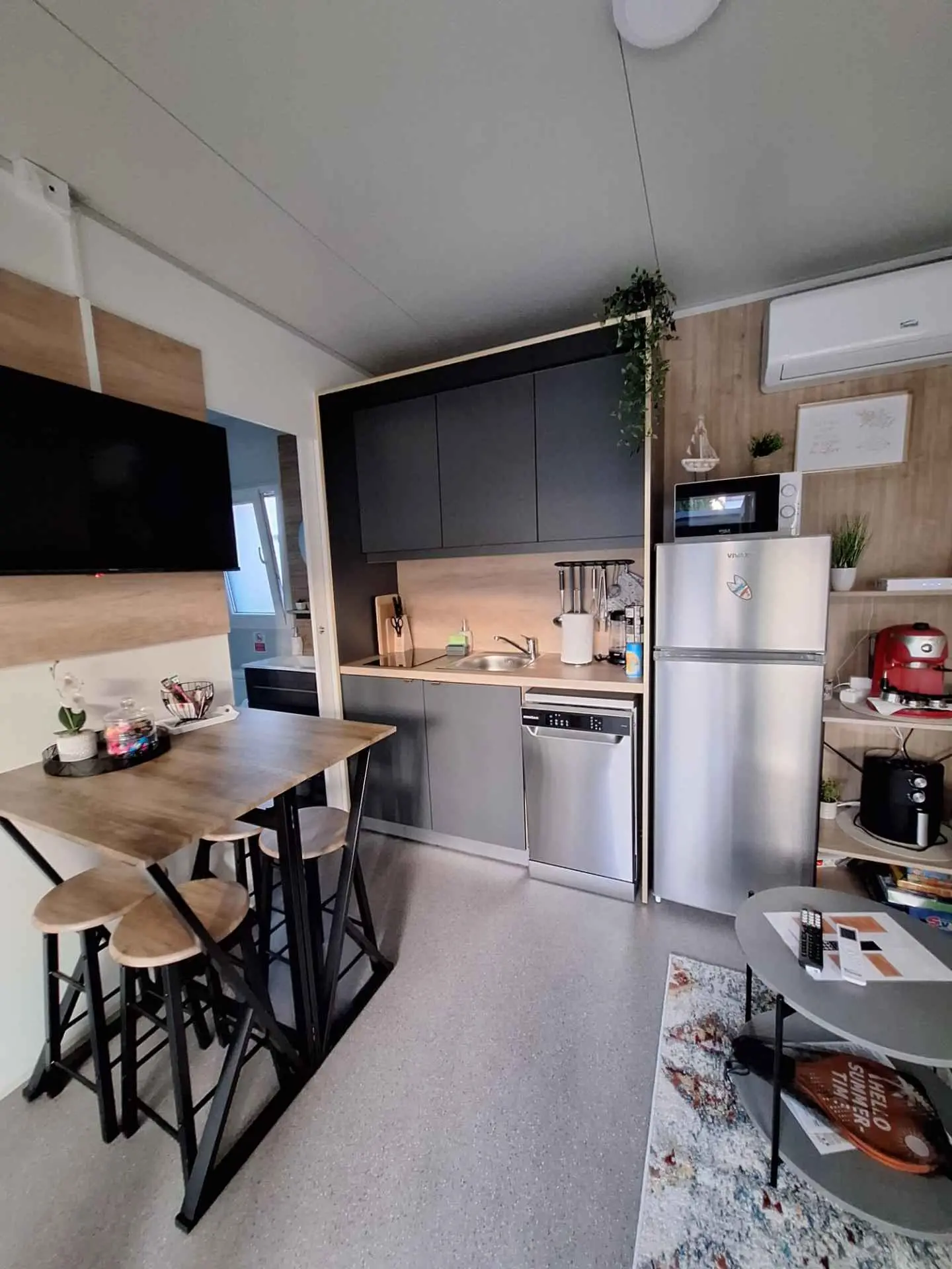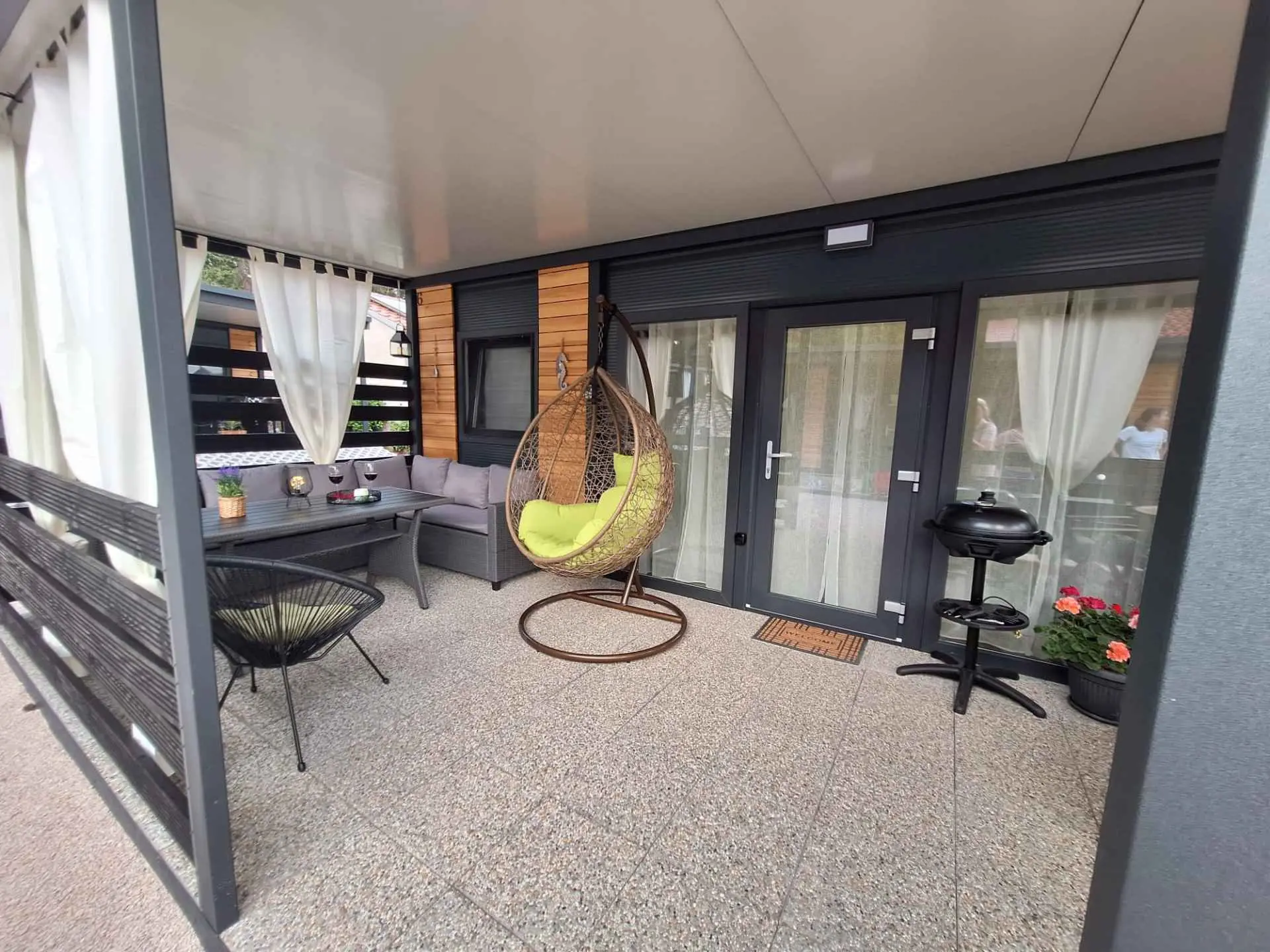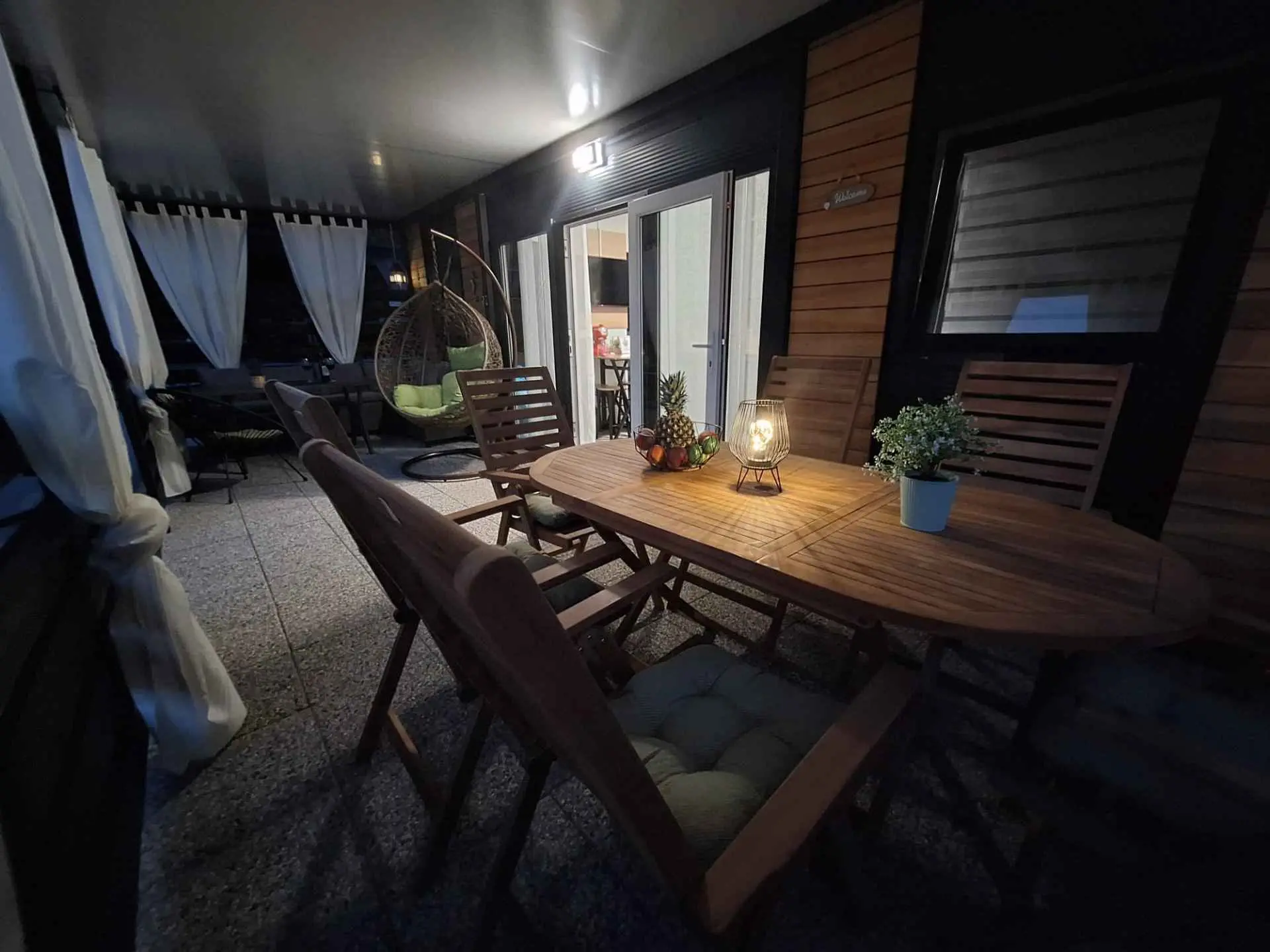 Mobilna kućica Sunny oasis smještena je u kampu Azzuro u mjestu Turanj. Od mora je dijeli samo cesta. Kućica se sastoji od dvije spavaće sobe sa bračnim krevetima, kupaone, kuhinje, dnevnog boravka i terase. Na terasi ćete naći veliki stol za uživanje u hrani na vanjskom zraku, kutnu garnituru za opuštanje te roštilj.