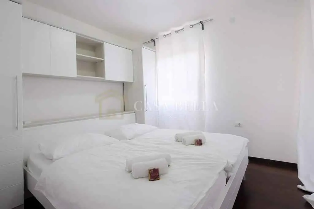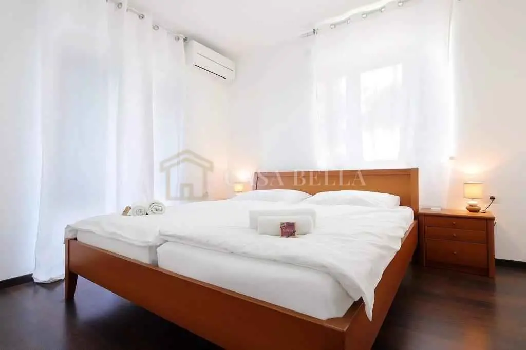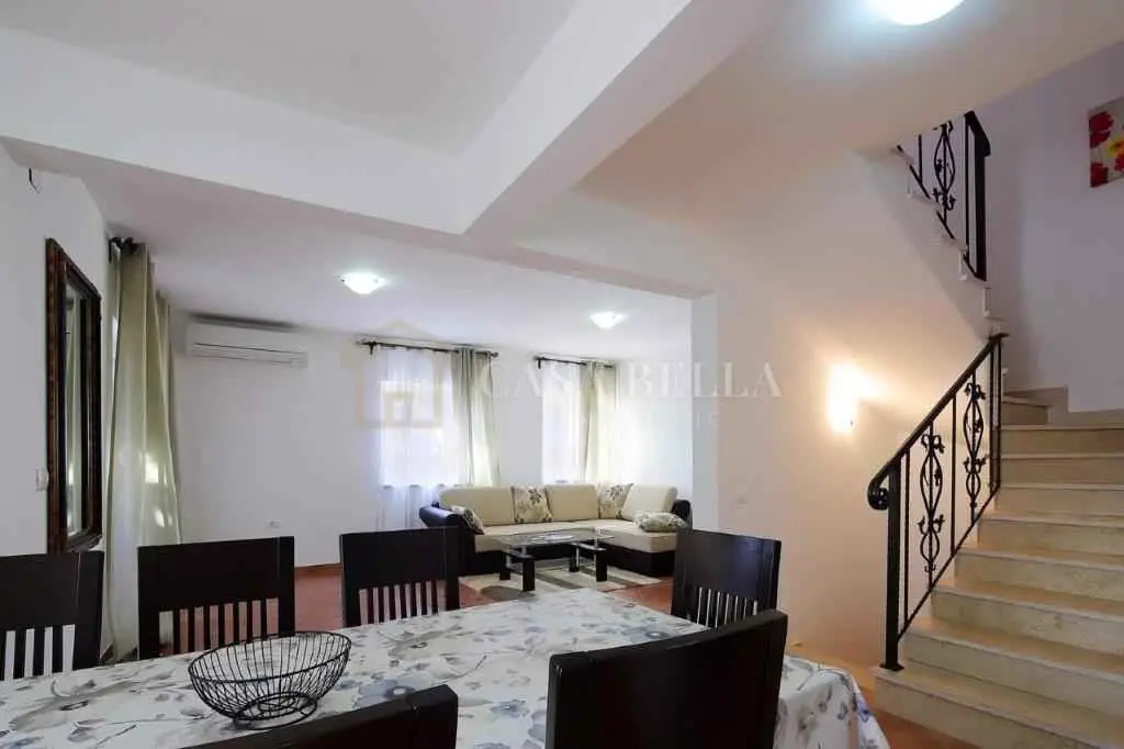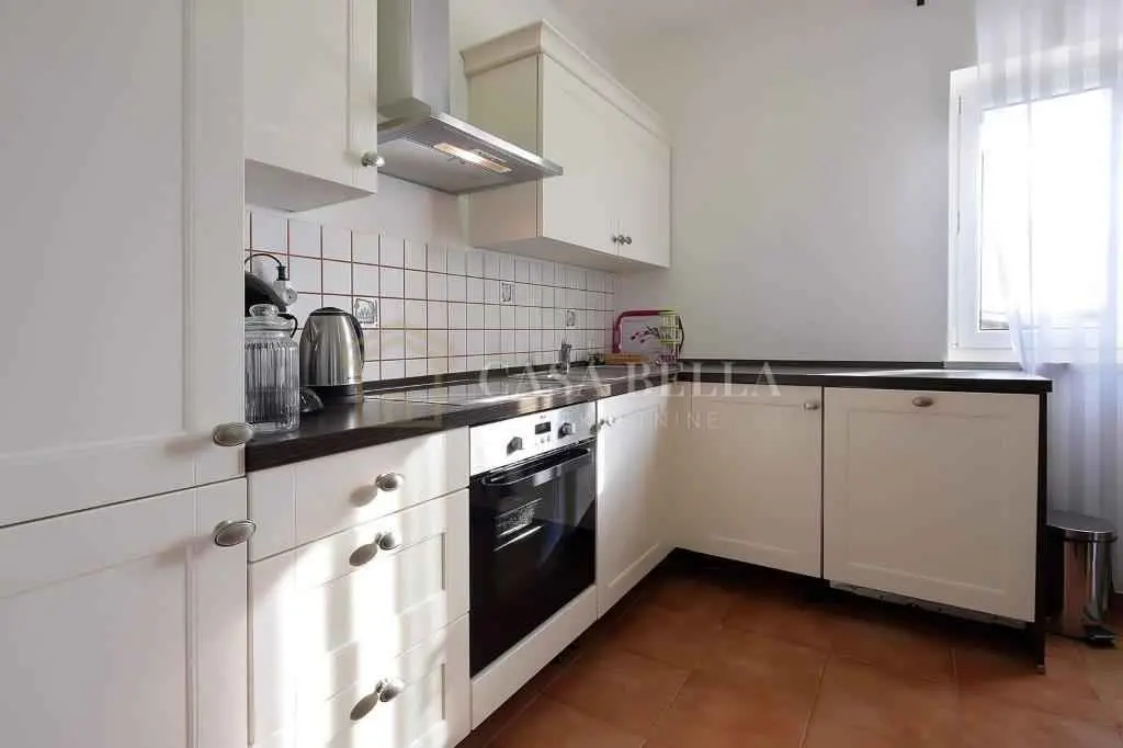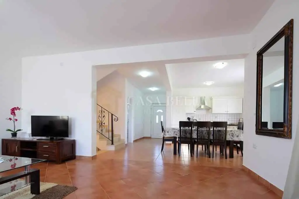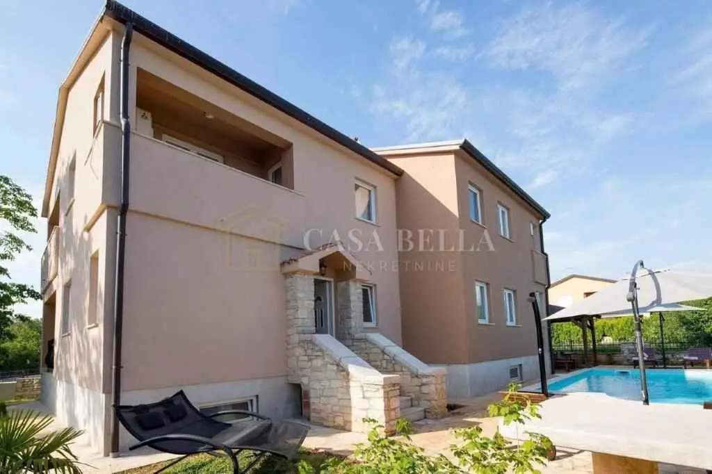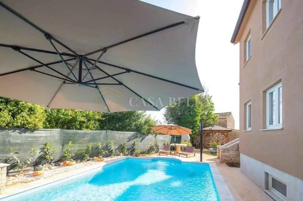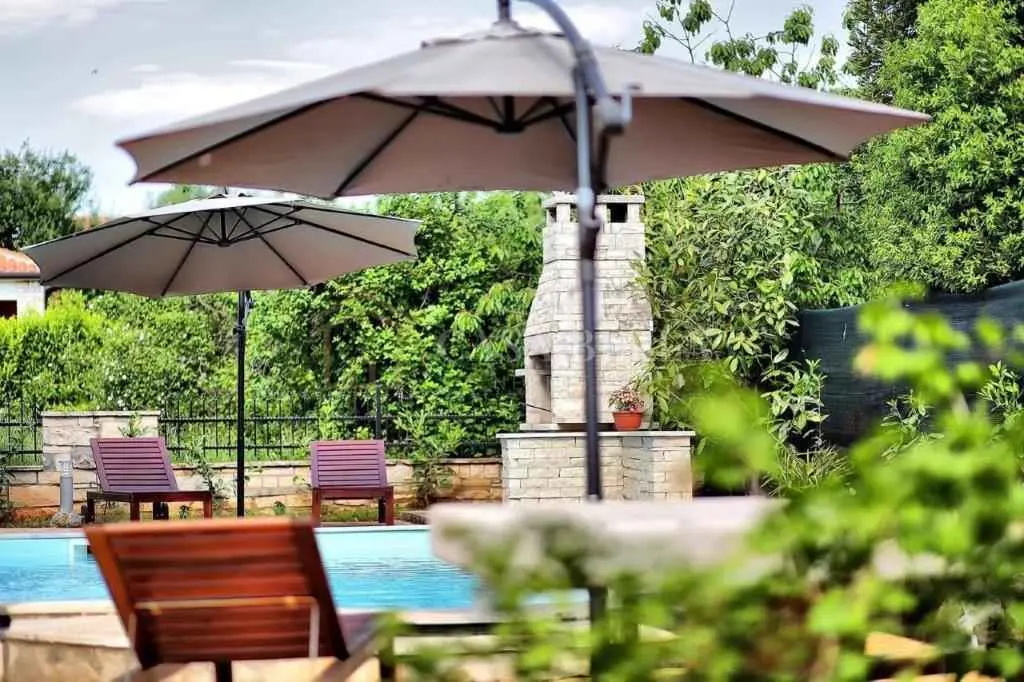 Kuća, izgrađena 2013. godine, nalazi se u selu u prekrasnoj mirnoj ulici. Iza kuće je dvorište s bazenom, ograđeno visokom živicom. U blizini kuće nalaze se još dvije kuće s apartmanima. U prizemlju se nalazi dnevni boravak s kaučem na razvlačenje s dodatnim krevetom, kuhinja sa svim kućanskim aparatima, kupaonica (WC, tuš, perilica rublja) i balkon. Na prvom katu nalaze se 3 spavaće sobe (dvije s bračnim krevetima, jedna s dva odvojena kreveta), kupaonica (WC, kada) i 2 balkona. Bazen je veličine 4x7 m. Uz njega se nalaze ležaljke, veliki kameni stol sa stolicama i kamin-roštilj. Uz kuću se nalazi drvena sjenica s drvenom sjedećom garniturom i klupama. Ispred kuće nalazi se parkirno mjesto. Ovo je idealno mjesto za obitelji i ljude koji žele provesti svoj odmor u miru i tišini uz cvrkut ptica. Udaljena je 4 km od mora. Možete birati između prekrasnih plaža u Umagu, Maredi, Dajli, Pineti, Savudriji, Novigradu