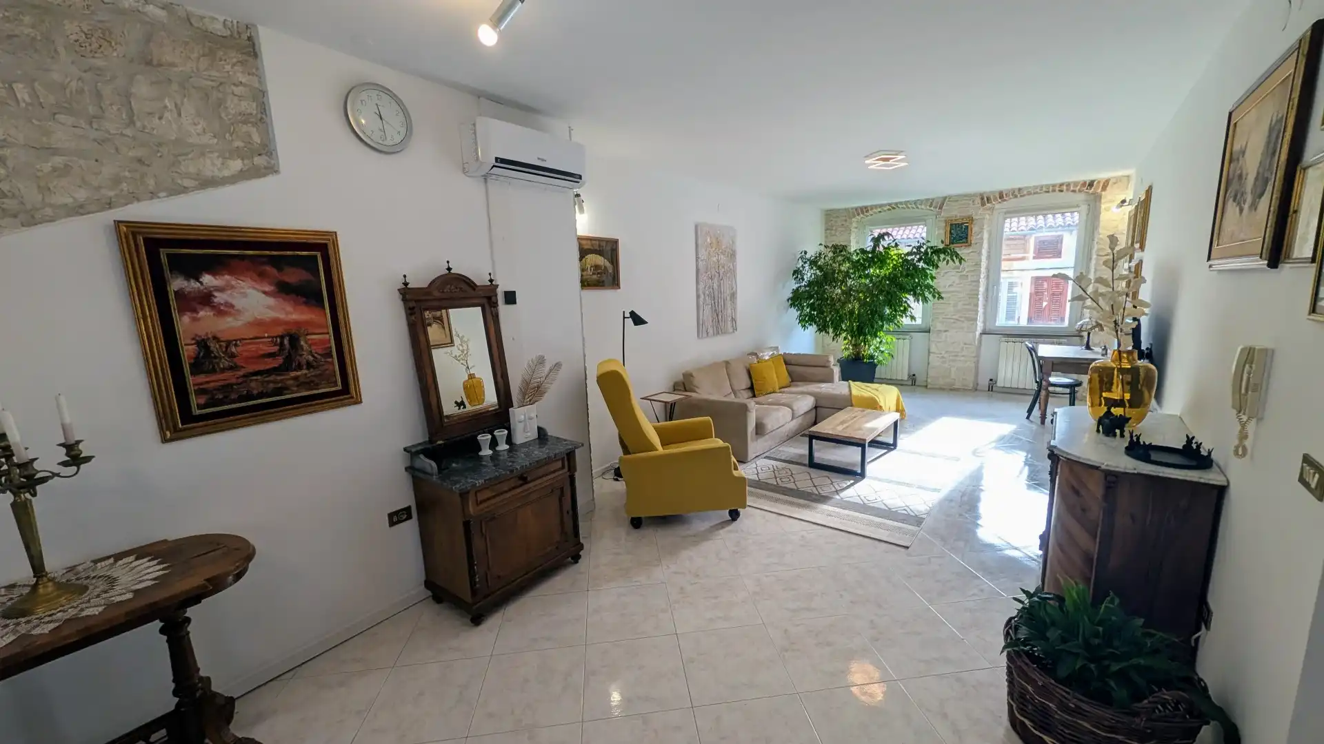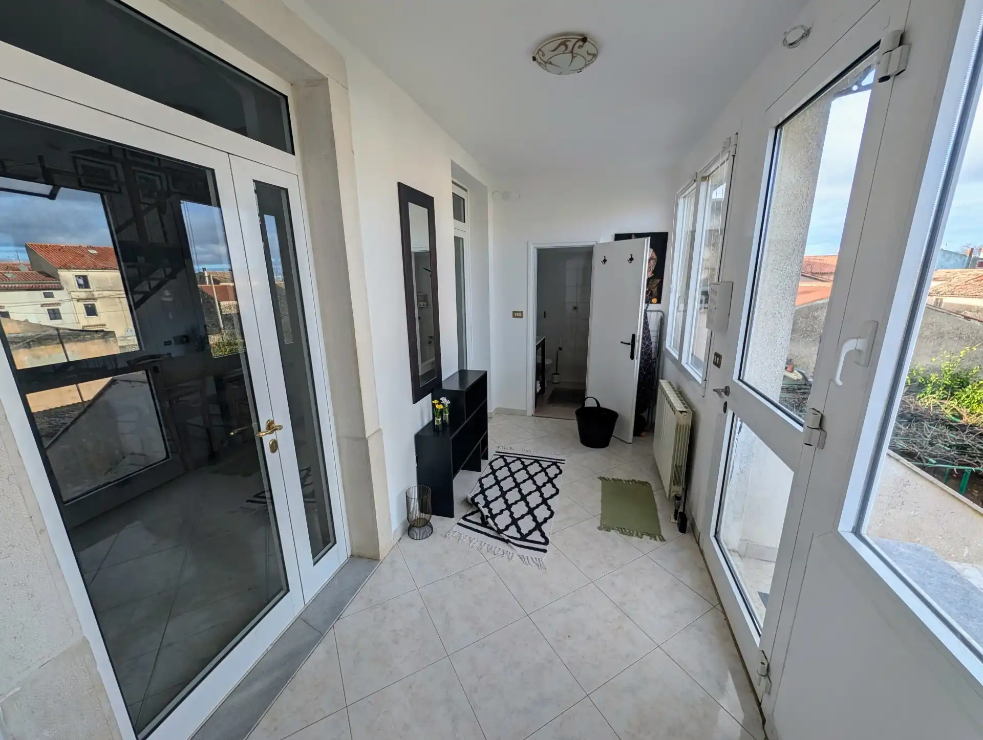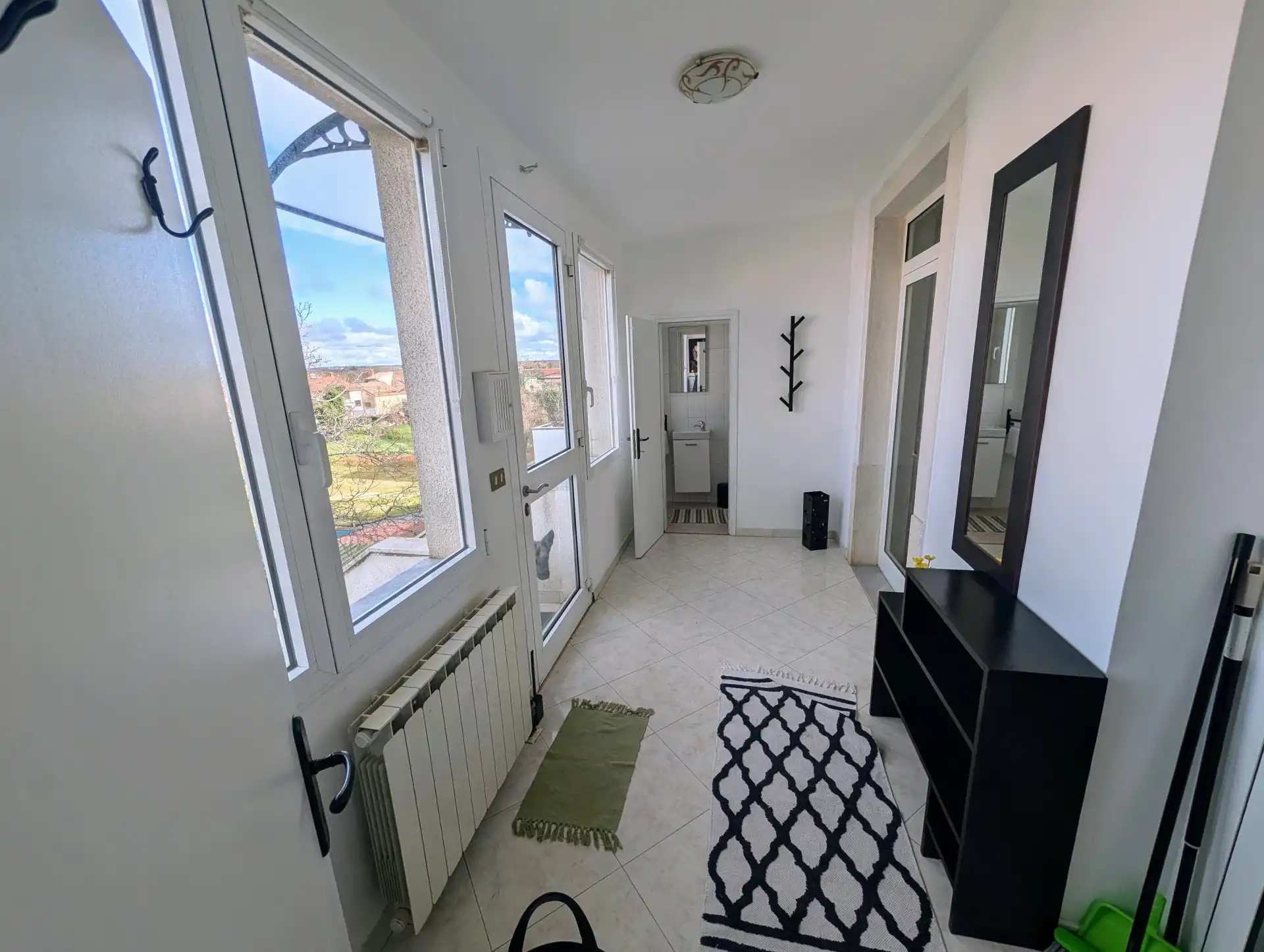Ako svoj odmor želite provesti s obitelji, prijateljima i kućnim ljubimcima u netaknutoj prirodi, uživati u suncu i moru ili isprobati istarske specijalitete, nudimo smještaj u ugodnom i prostranom apartmanu (veliki dnevni boravak i kuhinja s otvorenim prostorom, tri spavaće sobe, dvije kupaonice plus zaseban wc i terasa s pogledom na more). U krugu od 100 metara nalaze se trgovina prehrambenih proizvoda i ostale trgovine, restorani, pošta i ljekarna. Smješten je u Vodnjanu, na 144 m nadmorske visine, grad je u jugoistočnoj Istri, 5 km od mora i 10 km od Pule i zračne luke. Vodnjan je poznat po maslinovom ulju i vinu. Grad koji je sačuvao srednjovjekovni izgled obiluje brojnim crkvama, a crkva Svetog Blaža sadrži brojna umjetnička i kulturno vrijedna djela i zbirku sakralne umjetnosti. Možete uživati u mnogim biciklističkim stazama. Na 5 km od Vodnjana, okrenut Nacionalnom parku Brijuni, nalazi se nekoliko opremljenih plaža, kao i prelijepe prirodne plaže. Radujemo se što ću vam dobrodošlicu i zaželjeti ugodan boravak! Lokacija 44 ° 57'45,7 "N 13 ° 51'18.0" E 44.962691, 13.854998