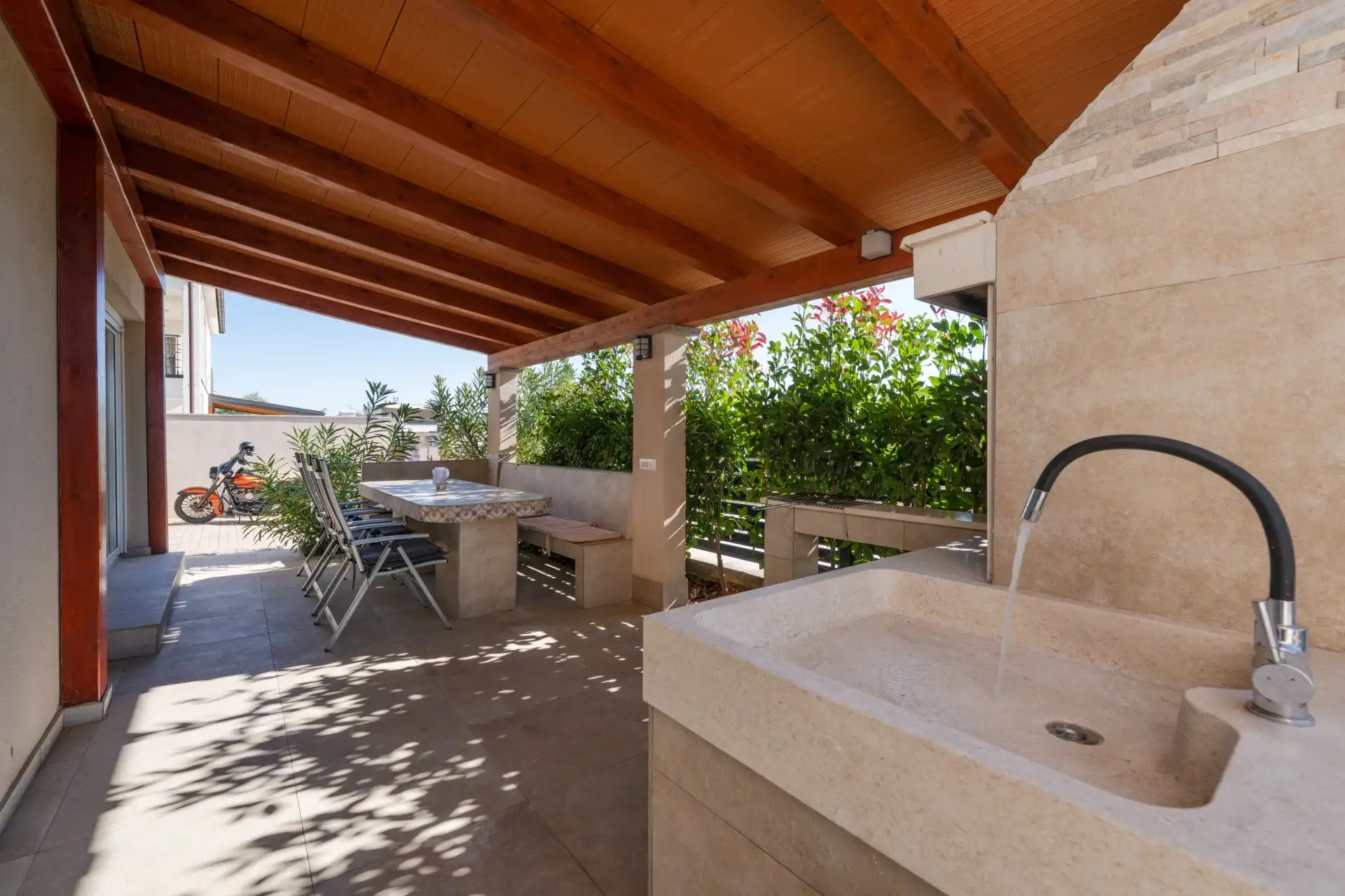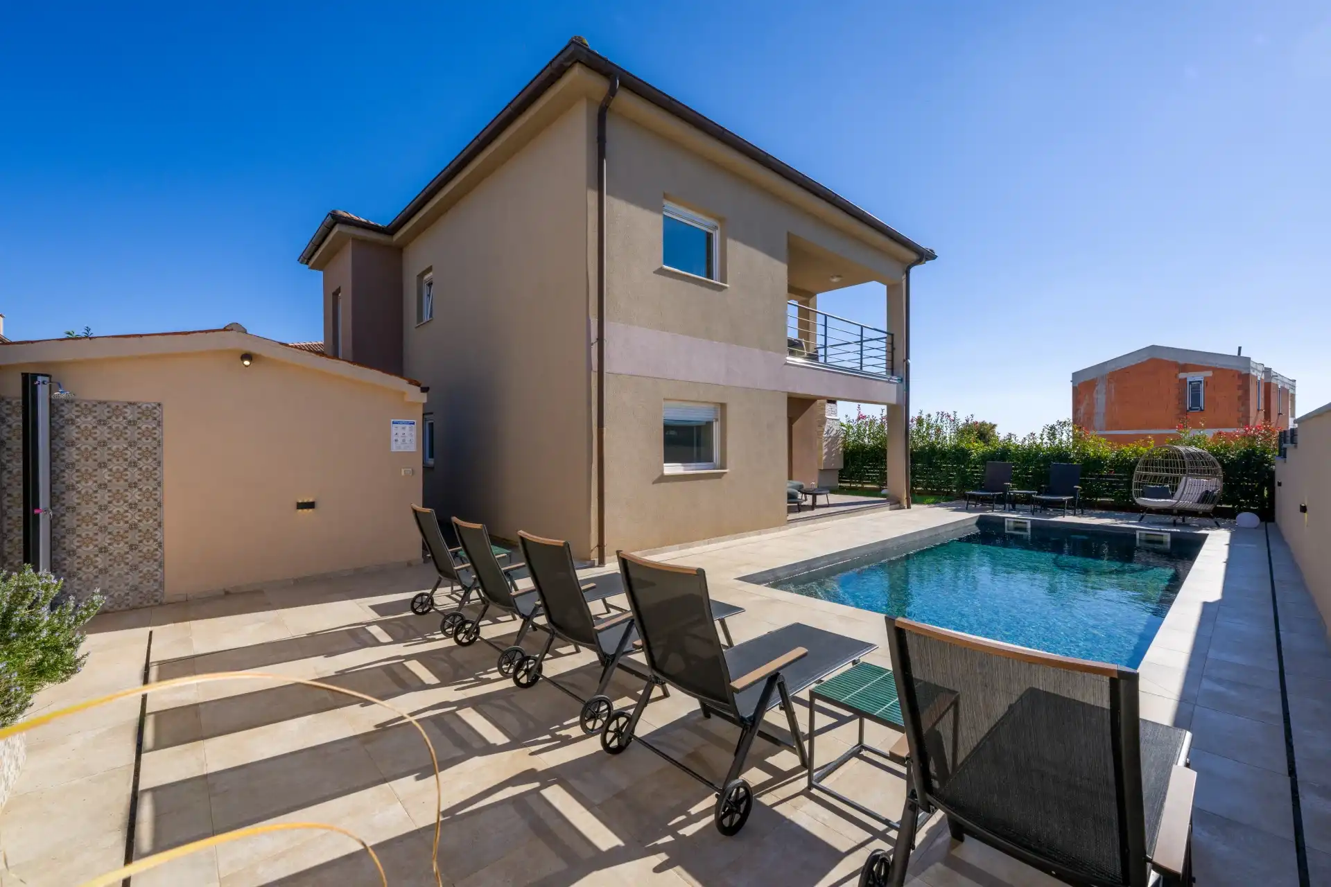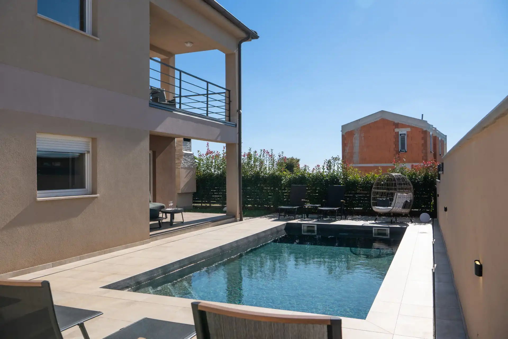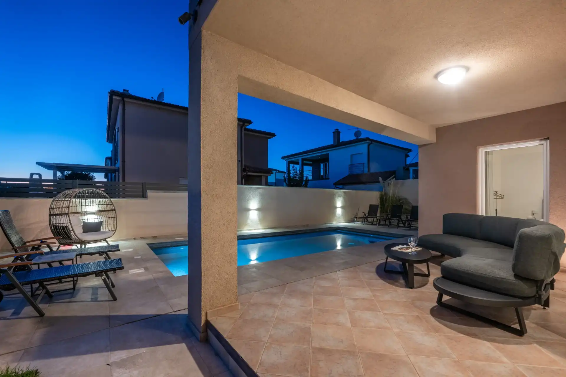 Vila Brionika smještena je u šarmantnom gradiću Vodnjanu, samo nekoliko kilometara od Pule. Ova kuća za odmor okružena je drugim vilama za odmor u živahnom turističkom području, što je čini idealnom bazom za istraživanje regije. Vila Brionika ima 4 spavaće sobe i 3 kupaonice. Ugodan dnevni boravak opremljen je kaučem na razvlačenje za dodatne goste i Smart TV-om. Vani možete uživati u modernom bazenu s ležaljkom, ugodnoj ljetnoj kuhinji s roštiljem i prekrasnom vrtu.
