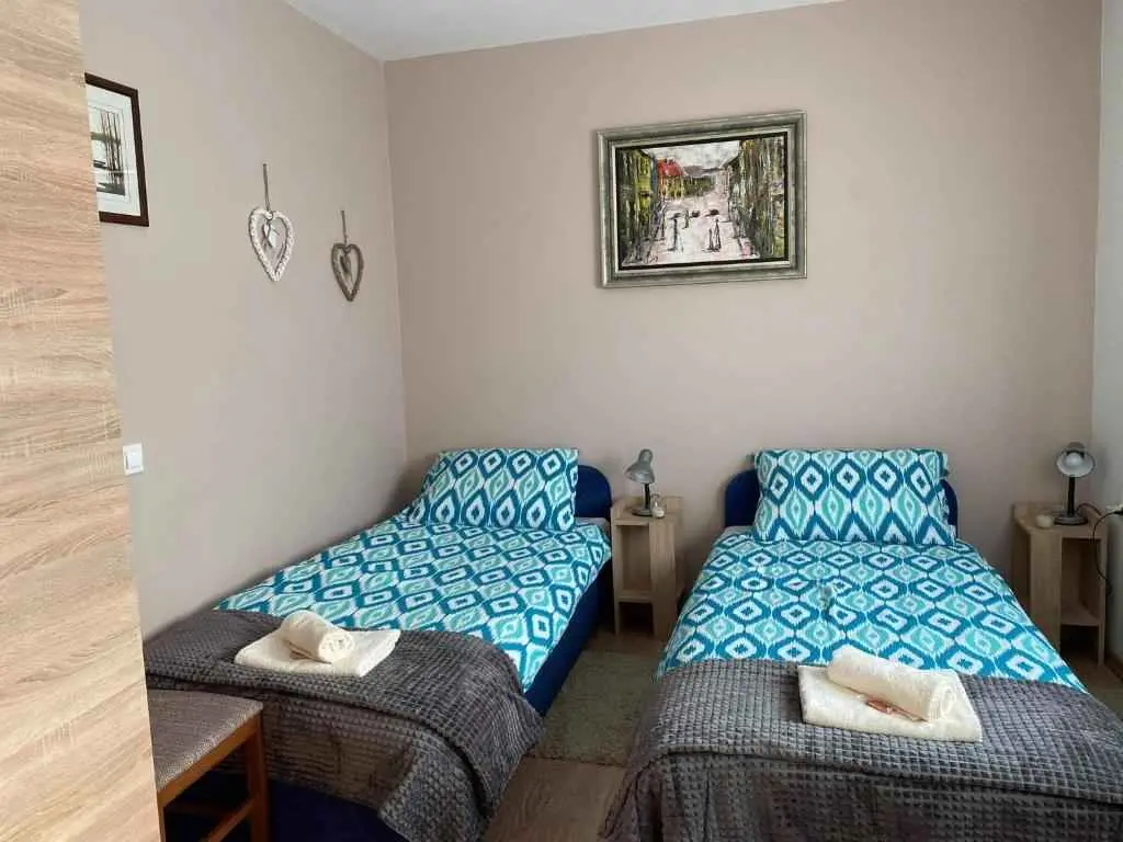 Želite li posjetiti Vukovar sa svojom obitelji, poslovnim partnerima ili prijateljima, spremni smo Vas ugostiti. Apartman SAN samostalna je stambena jedinica u prizemlju obiteljske kuće sa zasebnim ulazom u kojemu se nalazi i stan vlasnika. Apartman je 700 metara udaljen od centra grada Vukovara, a do prve trgovine i pekare udaljen je tek 150 metara. Apartman se sastoji od hodnika, dvije odvojene spavaće sobe, jedna dvokrevetna sa opcijom spajanja u veliki bračni krevet i jedna jednokrevetna soba, opremljene svom posteljinom. U svakoj sobi nalaze se pripadajući ormari, noćni ormarići, stolne lampe, te radni stol i stolica. Dnevni boravak u kome je kutna garnitura na razvlačenje može također poslužiti za spavanje do dvije osobe, TV (satelit), radio, klima, i besplatni Wi-Fi pristup internetu. Gostima je na raspolaganju i blagovaonica, kuhinja opremljena svim kuhinjskim priborom i opremom (hladnjak, pećnica, ploča za kuhanje, mikrovalna, kuhalo za vodu), te kupaonica opremljena sušilom za kosu, perilicom rublja te ručnicima i kozmetikom za goste. Gosti imaju na raspolaganju namještenu terasu, kao i osiguran besplatan parking vozila. Apartman je pogodan za sve vrste gostiju (poslovni ljudi, obitelji, grupe gostiju). Apartman se nalazi u dijelu grada pod nazivom Sajmište. Sajmište je stari dio grada Vukovara u blizini centra Grada. Želimo vam ugodan boravak. Duga 51 32000 Vukovar Mob: 00385 (0)98/537-573 E-mail: azenic.ivica@gmail.com