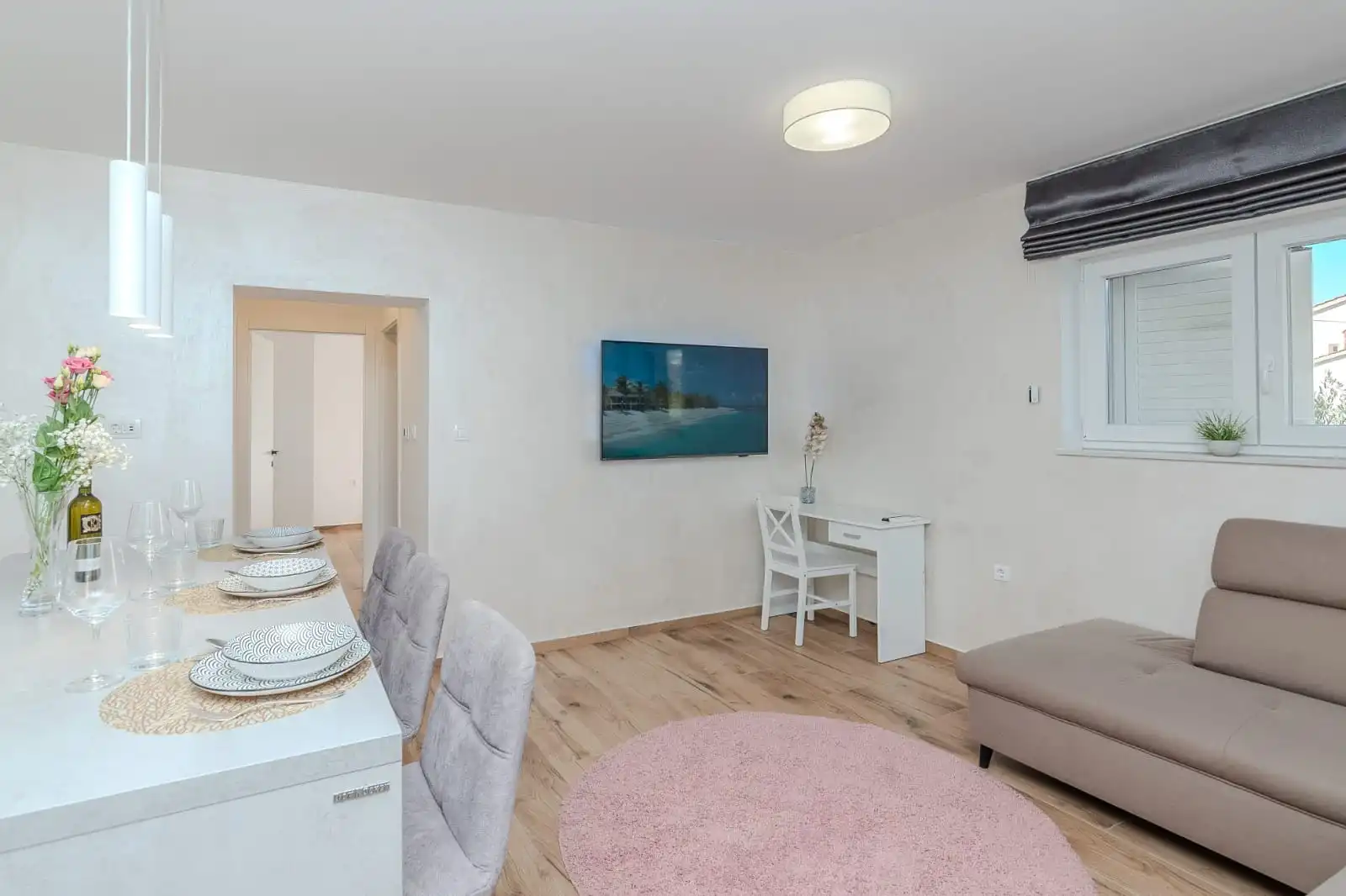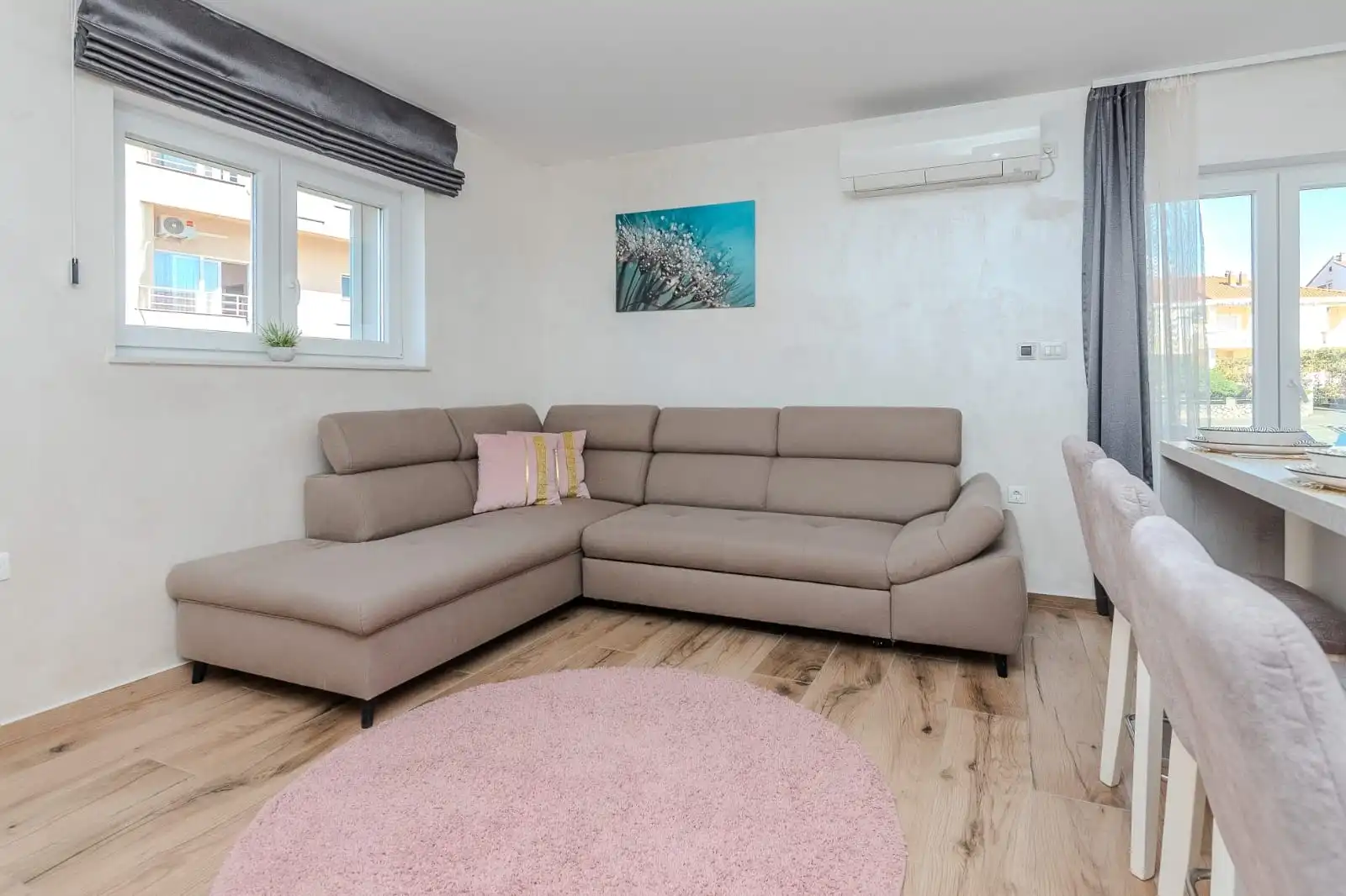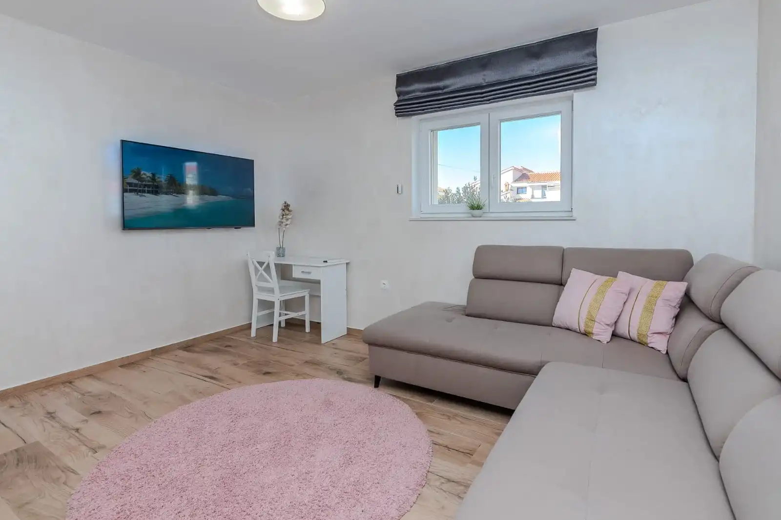 Dobrodošli u svoje savršeno utočište u Zadru. Naša nedavno renovirana nekretnina smještena je u prestižnom zadarskom naselju Diklo, svega 200 metara od plaže Borik, jedne od najpoznatijih gradskih plaža s bogatom ponudom sadržaja, beach barovima, restoranima i mogućnostima za vodene sportove. Naši moderno uređeni jednosobni apartmani u potpunosti su opremljeni kako bi vaš boravak bio bezbrižan i ugodan. Zabava: Opustite se uz 55-inčni Philips TV koji će zadovoljiti sve vaše potrebe za zabavom. Apartman 2+1 sastoji se od prostrane spavaće sobe te otvorenog koncepta dnevnog boravka s udobnim kaučem na razvlačenje, idealnim za smještaj treće osobe. Posebnu vrijednost daje prostrana terasa površine 17 m², savršena za opuštanje u privatnosti, dok spavaća soba ima i vlastiti izlaz na balkon s djelomičnim pogledom na more. Gostima je na raspolaganju zajednička praonica rublja za oba apartmana, kao i praktičan prostor u stubištu za odlaganje opreme za plažu. Osigurano je i besplatno privatno parkirno mjesto u sklopu objekta. Gosti vole naš kvart zbog njegove mirnoće, udobnosti i blizine plaže. Potrebno je samo nekoliko minuta hoda i beskrajna plaža je pred vama. Za ljubitelje hrane, kvart je okružen nekoliko restorana koji su udaljeni samo par minuta hoda od našeg stana: "Rafaelo", "Šime" i "Mama Mia". Restoran Niko je visoko cijenjeno mjesto poznato po autentičnoj dalmatinskoj kuhinji, svježoj ribi i izvrsnim lokalnim vinima. Ako želite imati opušteni ručak ili večeru, bar i grill "Famous" udaljen je 15 minuta hoda, uz plažu. Nakon ili prije ručka možete uživati na plaži. Naš kvart također nudi razne trgovine, supermarkete i sve potrebne sadržaje, što osigurava da vaš boravak bude praktičan i bezbrižan. "Plodine", "Eurospin" i "Muller" udaljeni su 3 minute vožnje. Imamo i jednu lokalnu tržnicu "Studenac", 405 metara od nas s ograničenim izborom, te supermarket “Tommy”, 700 metara. Lako je kretati se po gradu – javni prijevoz je udaljen 360 metara od kuće i vozi do centra grada za 15 minuta ili do glavne autobusne stanice. Postoji još jedna autobusna stanica – 650 metara od kuće, s češćim polascima. Zaljubljenici u povijest i kulturu cijenit će kratku vožnju do Starog grada Zadra, gdje možete istražiti bogatu baštinu grada, uključujući impresivnu Crkvu sv. Donata, Morske orgulje koje stvaraju jedinstvene melodije valova, te Pozdrav Suncu, fascinantnu instalaciju koja noću pretvara u svjetlosni show. Također, uvijek možete koristiti taksi uslugu ili uživati u romantičnoj šetnji uz more do centra grada. Uvijek pitajte za cijenu prije nego što prihvatite vožnju taksijem. Mi preporučujemo korištenje aplikacija Bolt i Uber za taksi, jer su praktične, pouzdane i jednostavne za korištenje, a putem njih uvijek znate koliko ćete platiti.