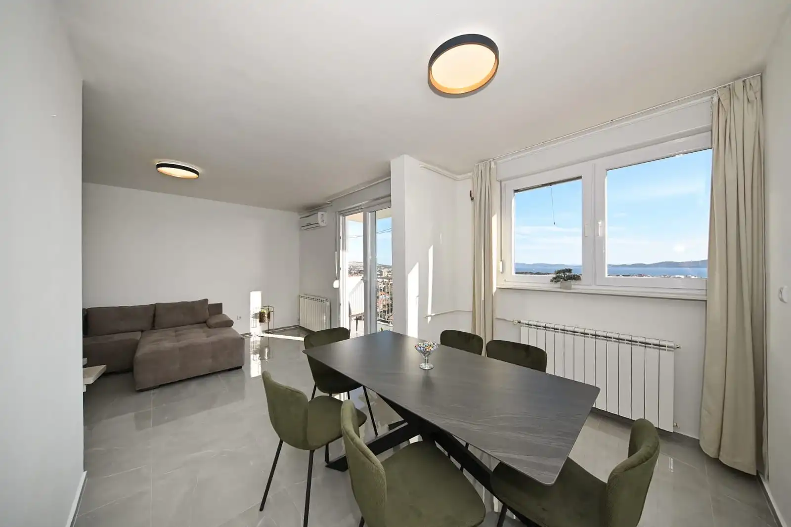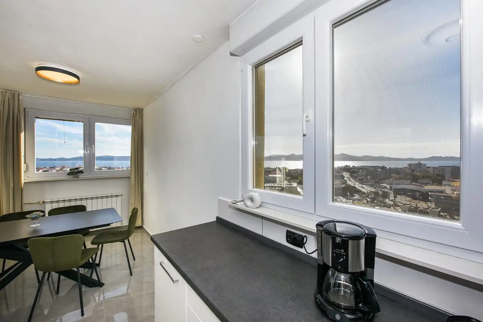 Apartman nudi najbolji pogled u cijelom Zadru – panoramu otoka, mora i starog grada. Smješten je u penthouseu na 14. katu, pri čemu se na katu nalazi isključivo ovaj apartman, što jamči potpunu privatnost i mir. Apartman raspolaže s dvije velike i prostrane spavaće sobe te dva WC-a. Sastoji se od potpuno opremljene kuhinje, blagovaonice, dnevnog boravka i ostave za osobne stvari. Moguće je unajmiti bicikle, a apartman je idealan za do 6 osoba. Smještaj je pješački udaljen od svih glavnih znamenitosti grada Zadra, kao i od najljepših i najpoznatijih plaža.
