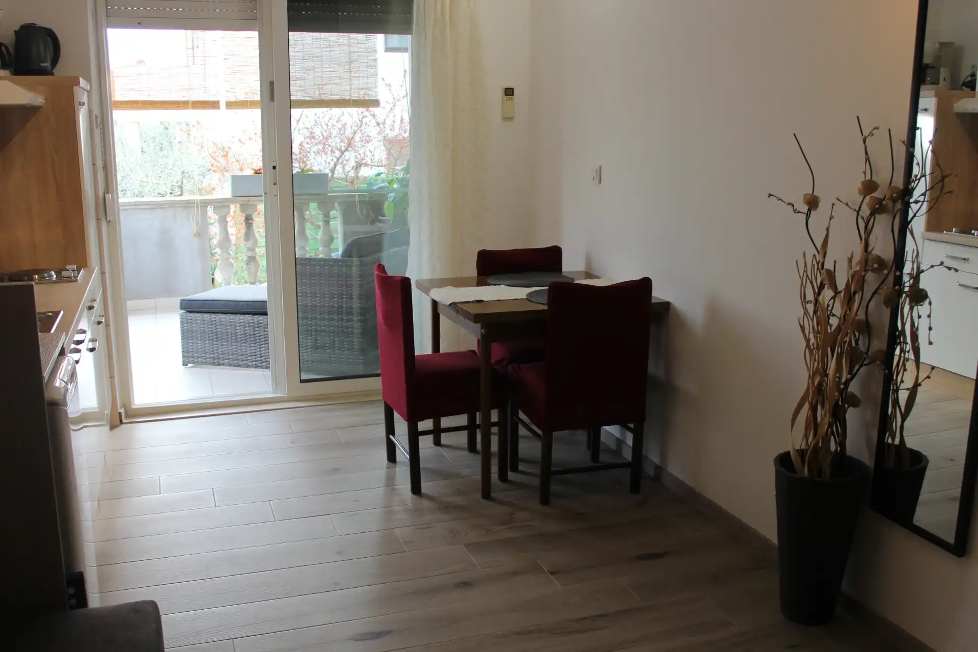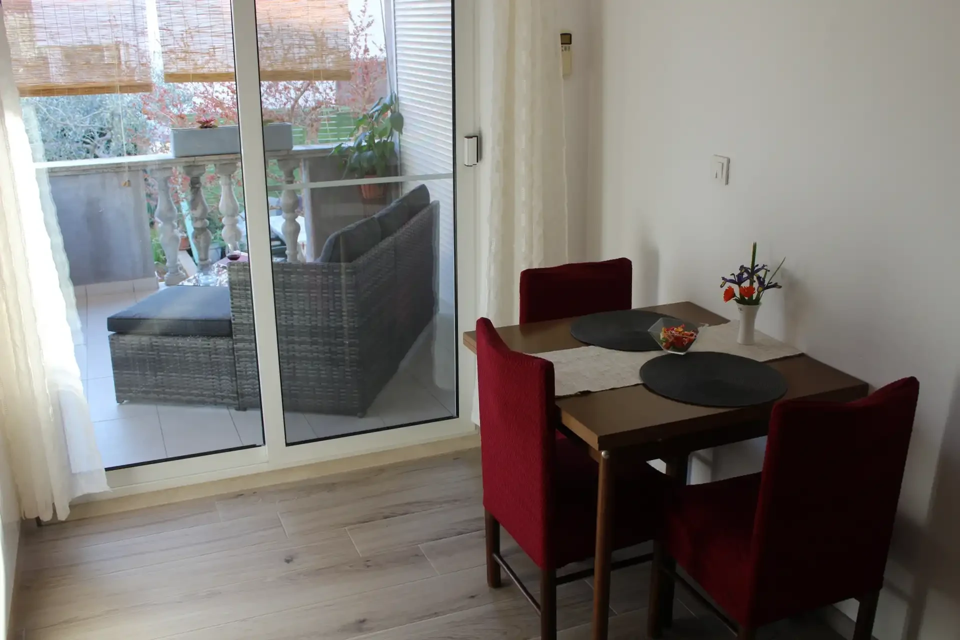 Apartmani Tea nalaze se na Boriku, atraktivnoj četvrti grada Zadra, jednoj od najtraženijih lokacija za odmor. Udobni apartmani za 2-3 osobe udaljeni su samo 1 km od plaže, najbliža trgovina udaljena je 50 m a restorani su na 200 m udaljenosti što čini ovaj smještaj idealnim izborom za goste koji žele praktičnost i mir. Sadržaji koji osiguravaju ugodan boravak: - Potpuno opremljena kuhinja - Brzi Wi-Fi internet - Klima uređaj - Privatna terasa - Osiguran privatni parking - Mogućnost povoljnog najma bicikla u blizini apartmana Mediteranski vrt i mirno okruženje - Apartmani nude prekrasan pogled na mediteranski vrt sa stablima maslina i aromatičnim biljem. Gosti mogu slobodno koristiti vanjski vrtni namještaj, idealan za opuštanje, čitanje ili jutarnju kavu. Lokacija je izuzetno tiha i mirna, savršena za goste koji traže odmor bez buke.