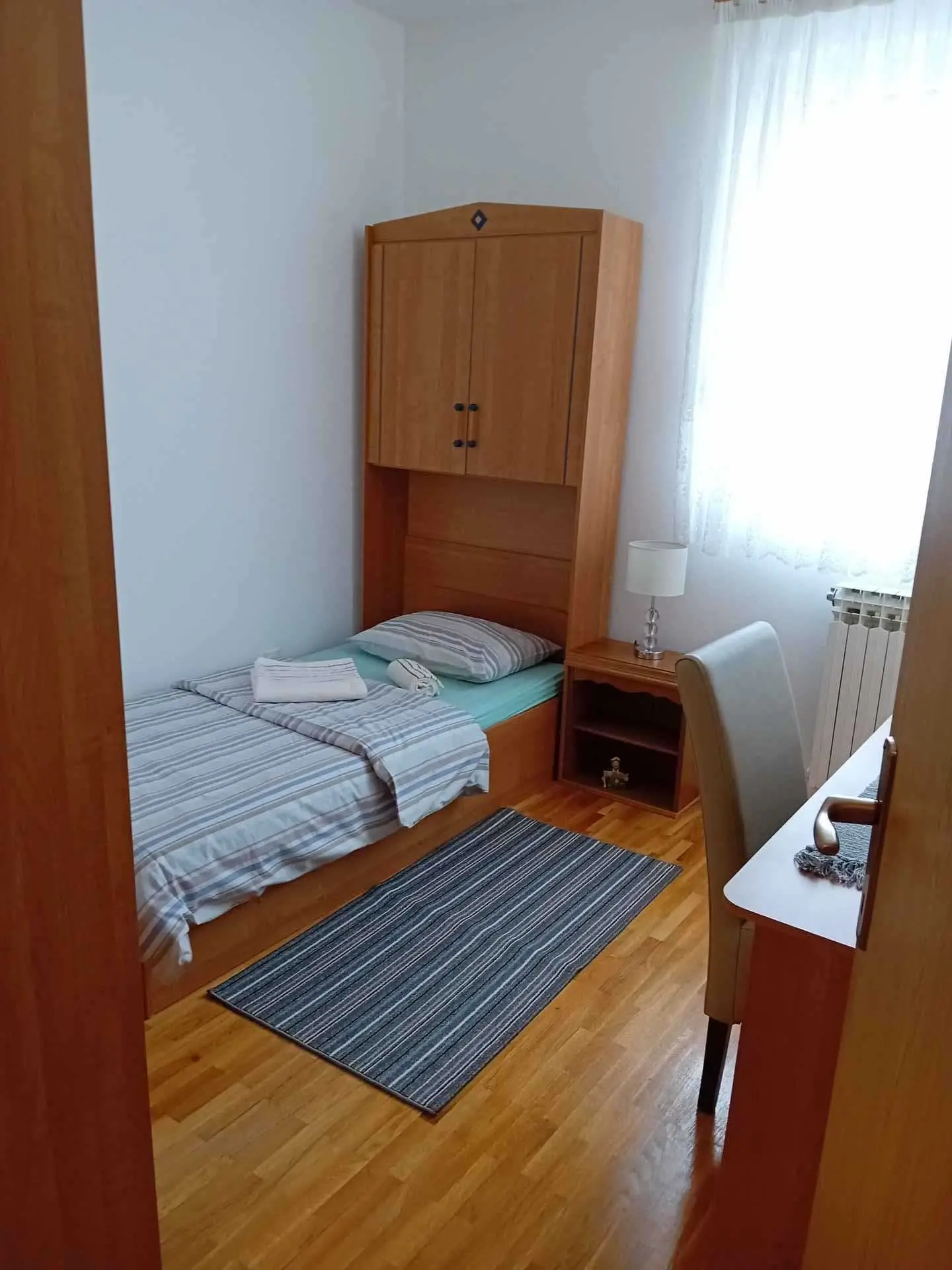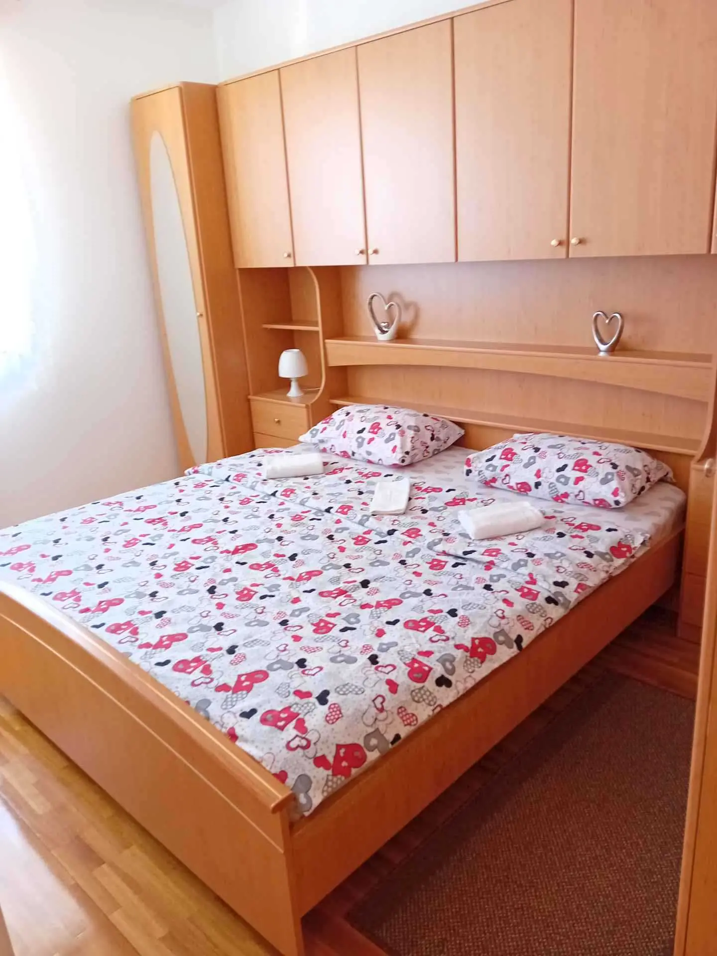 Az Apartment Antonio egy teljesen felszerelt kétszintes apartman. Az apartman 5 ágyas. Az apartmanban 1 nagy franciaágy, 1 1 fős ágy és egy további 2 fős kihúzható ágy található. A lakásban 2 db hordozható klíma található. Az apartman 150 méterre található a központtól egy téren, egy gyönyörű csendes utcában. Könnyen elérhető minden üzlet, étterem, gyorsétterem, kávézó, gyógyszertár, sportcsarnok, piactér. A lakáshoz saját parkoló tartozik, melyet elektromos rámpa őrzött.