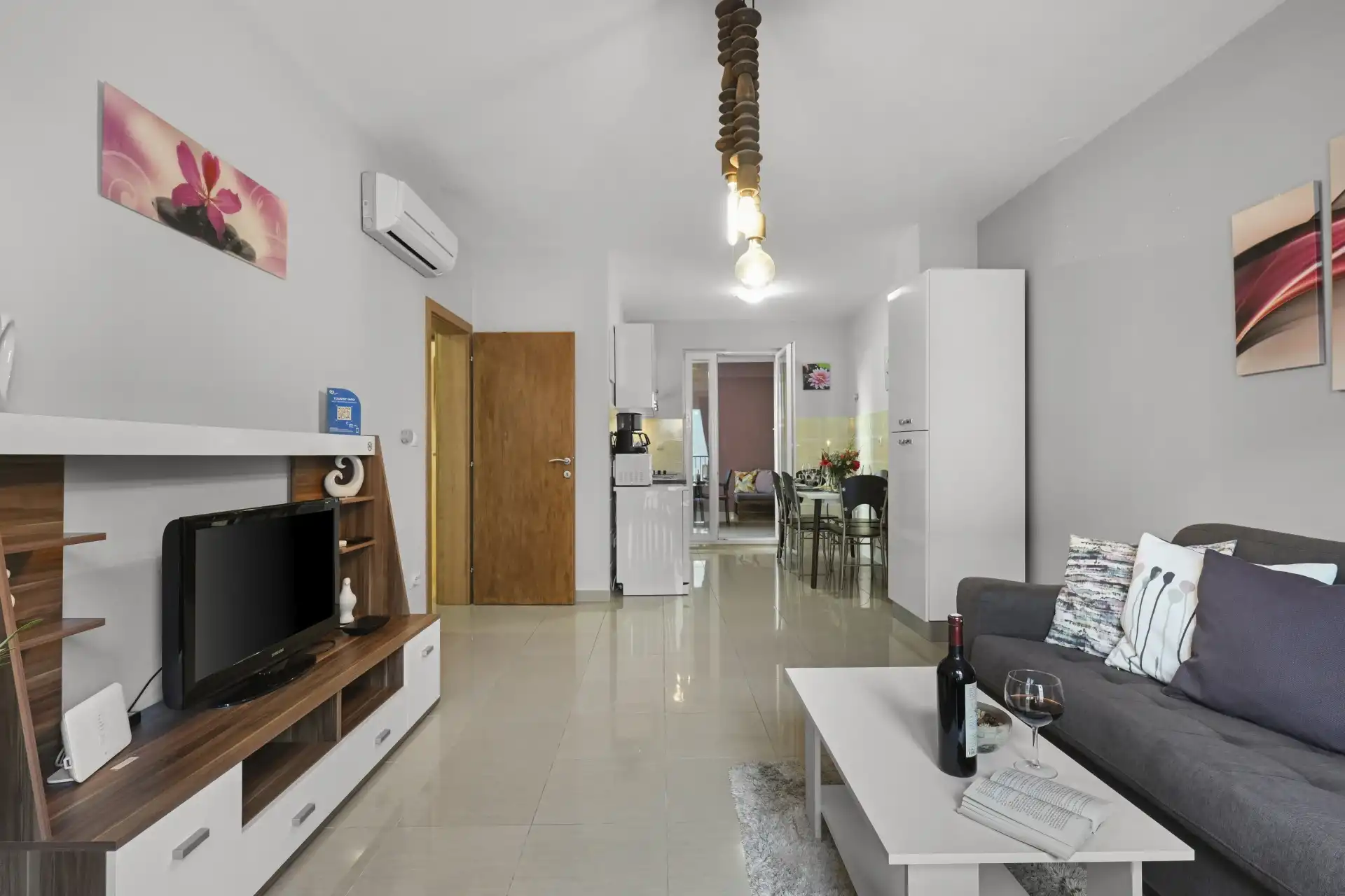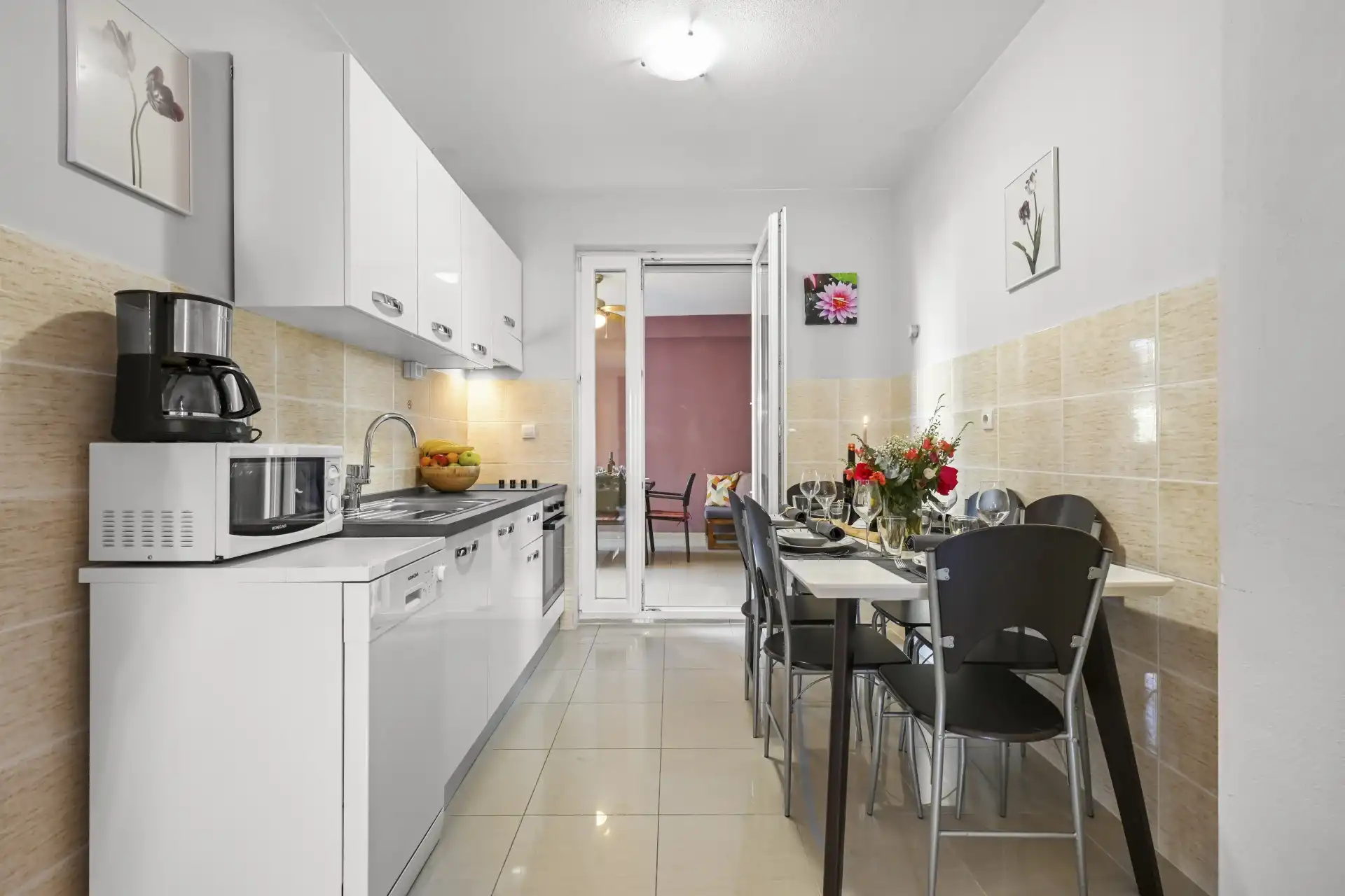 Sono disponibili due appartamenti in affitto nel centro di Biograd na Moru. Gli appartamenti sono completamente attrezzati: aria condizionata, frigorifero con congelatore, forno, lavatrice, lavastoviglie, TV max, Netflix, Wi-Fi ecc. Nelle immediate vicinanze, a 100 metri, si trova la spiaggia di Dražica, la più bella di Biograd, premiata con la Bandiera Blu per le spiagge più belle dell'Adriatico. Numerosi negozi, bar, ristoranti, banche e tutto il resto si trovano nelle vicinanze. L'appartamento Zara è classificato 3 stelle, mentre l'appartamento Majviva è classificato 4 stelle e dispone di parcheggio. L'appartamento ZARA può ospitare fino a 8 persone e si trova al primo piano di una casa familiare. Dispone di due camere da letto e un ampio soggiorno con divano letto. Di fronte si trova un'ampia terrazza con tavolo e sedie e una splendida altalena per rilassarsi e godersi il sole. È disponibile anche un lettino per bambini. L'appartamento MAJVIVA si trova al primo piano di un edificio più piccolo, proprio di fronte all'appartamento Zara, e dispone di due camere da letto e un divano letto nel soggiorno. Il parcheggio è disponibile nel cortile della casa.