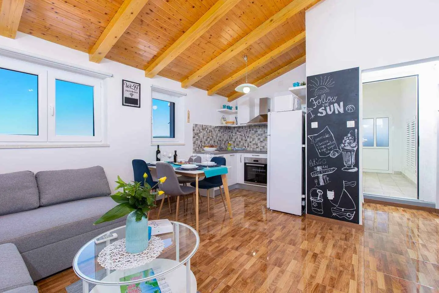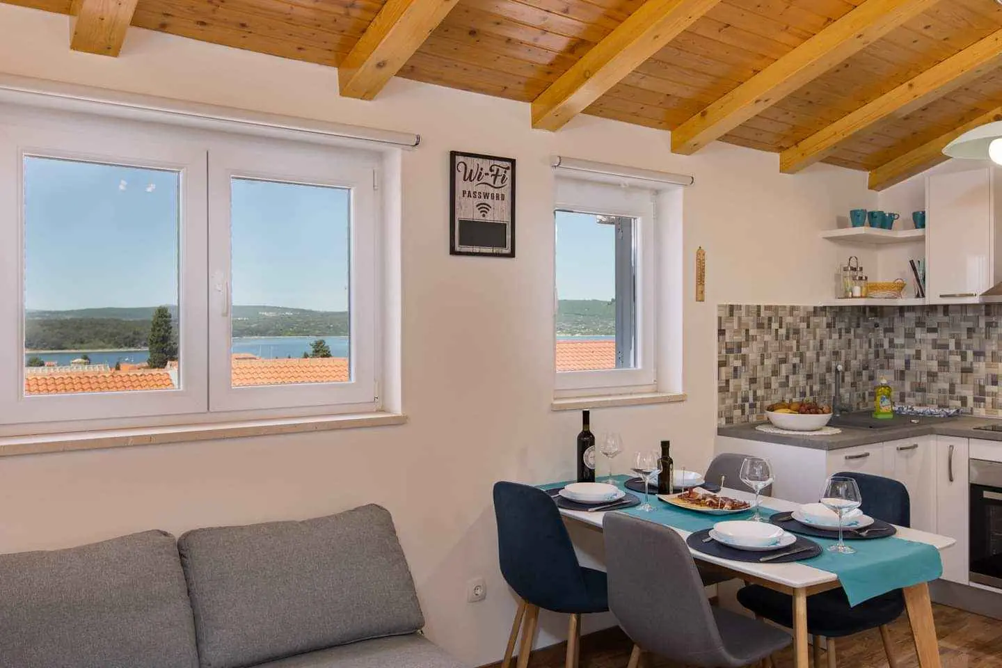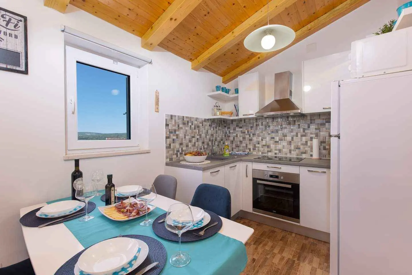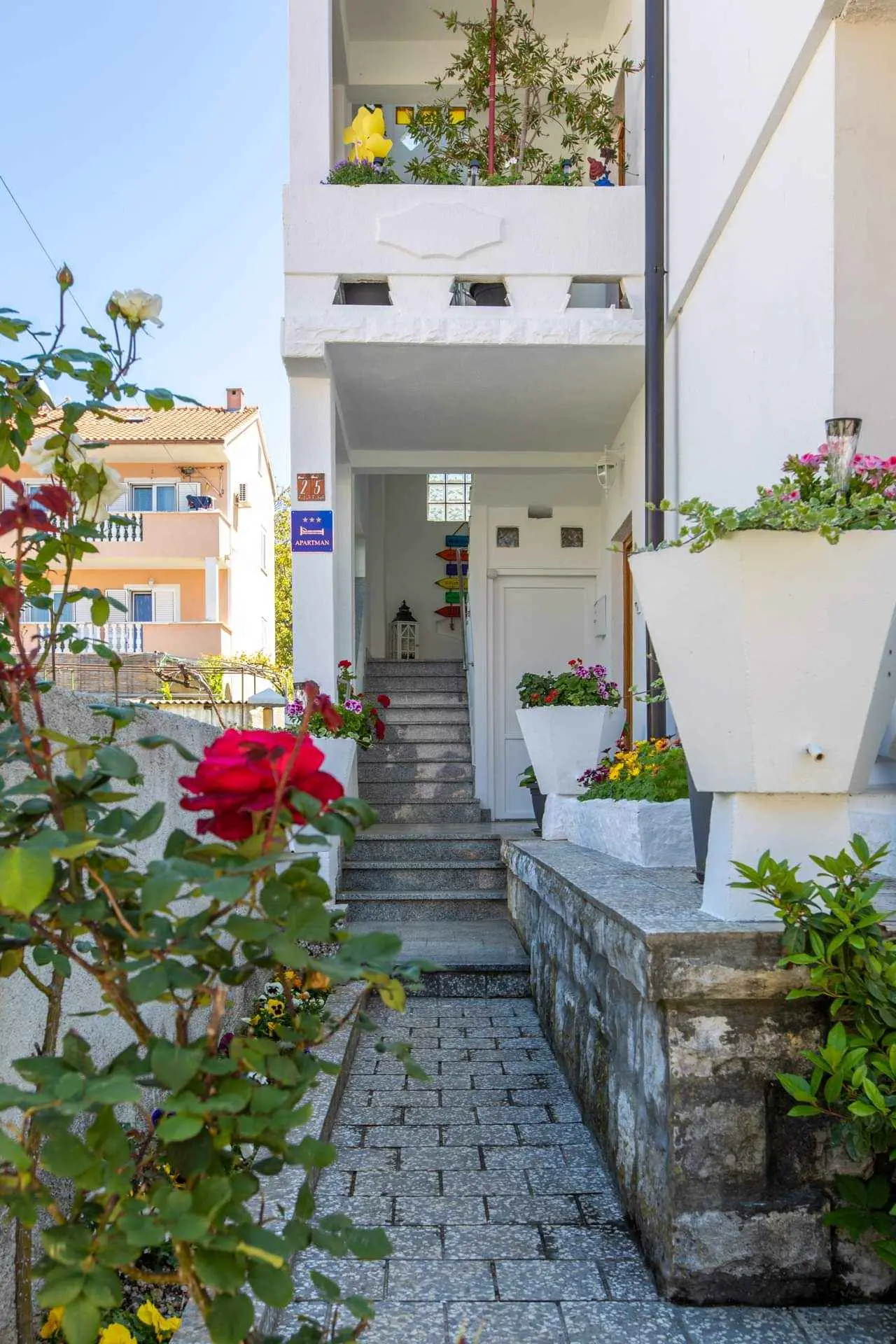 L'appartamento "The Rooftop" è un appartamento recentemente decorato situato all'ultimo piano della nostra casa di famiglia, che gli conferisce le proprietà dell'attico e un nome appropriato. L'appartamento è composto da due ampie camere da letto, un ampio bagno e un ampio soggiorno con annessa cucina e sala da pranzo. Uno dei punti di forza dell'appartamento è sicuramente la terrazza coperta privata con una bellissima vista sulla città di Punat e sull'isola di Košljun situata al centro della baia di Punat. La terrazza offre l'occasione ideale per vedere come il sole dorato tramonta nel bellissimo mare blu o semplicemente per rilassarsi a lume di candela e godersi una calda vigilia d'estate. I servizi forniti includono TV a schermo piatto, radio, connessione internet wireless gratuita, aria condizionata e molti altri. La casa ha un giardino, fiorito, un tavolo in legno con panche posto accanto ad un barbecue, ed un parcheggio custodito per gli ospiti. L'appartamento si trova nel centro di Punat, a 500 metri a piedi dalle spiagge ea 150 metri dal centro della città e dai negozi, rendendo facile per gli ospiti completare tutte le loro attività a piedi, mentre le loro auto sono al sicuro nell'appartamento. parcheggio gratuito.