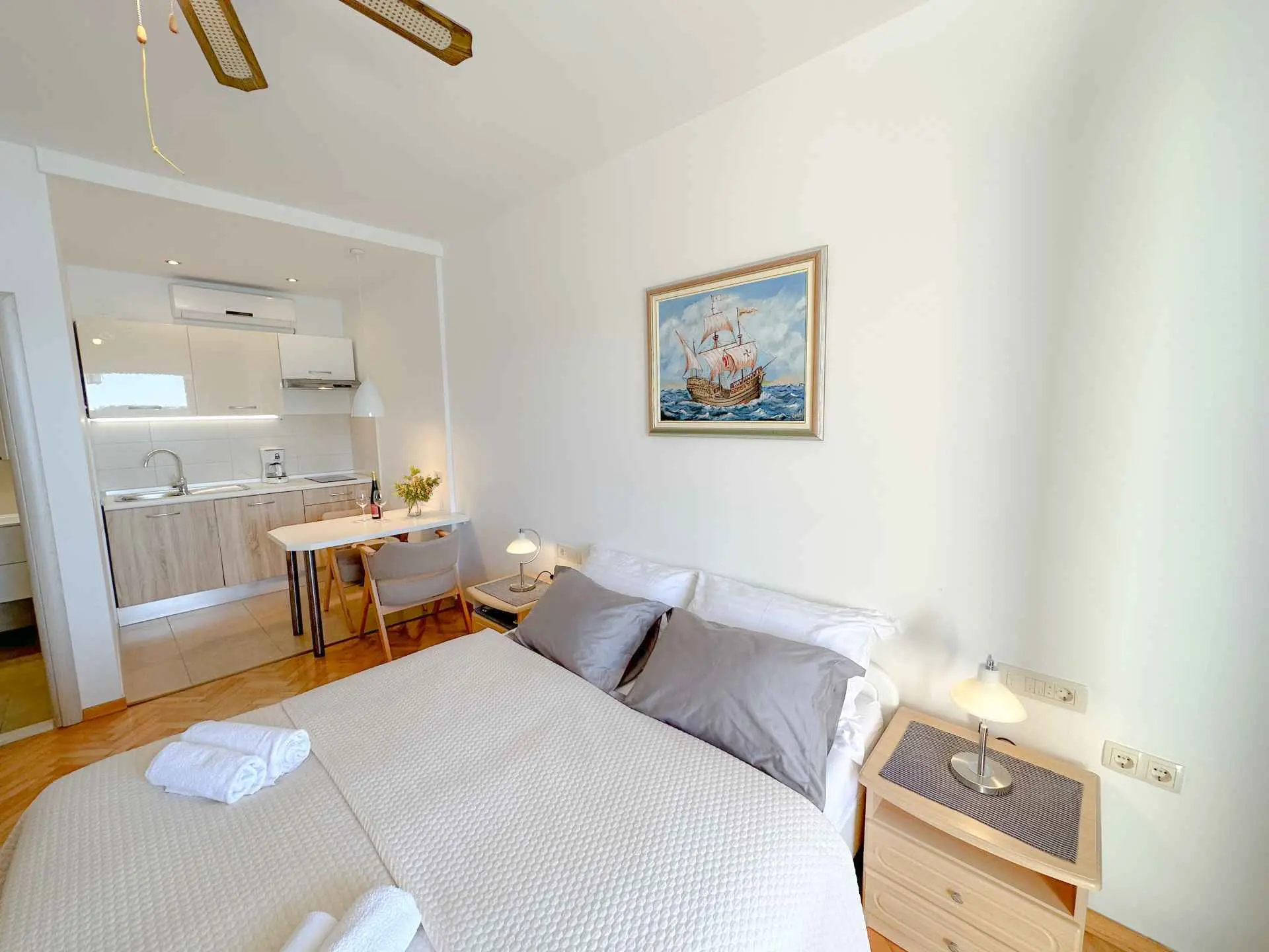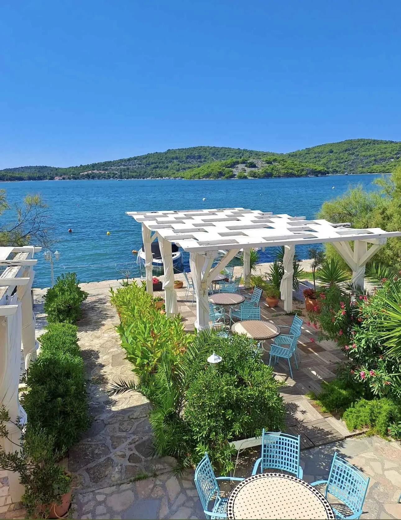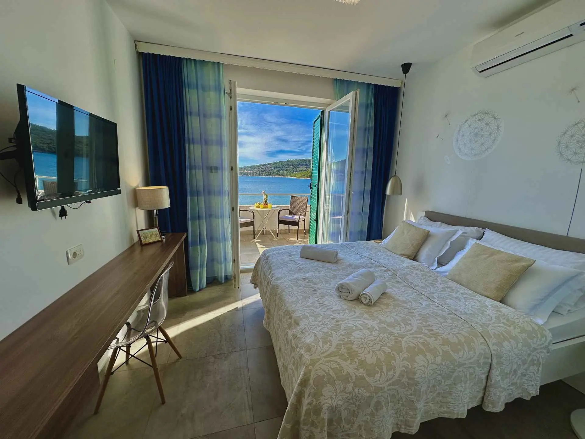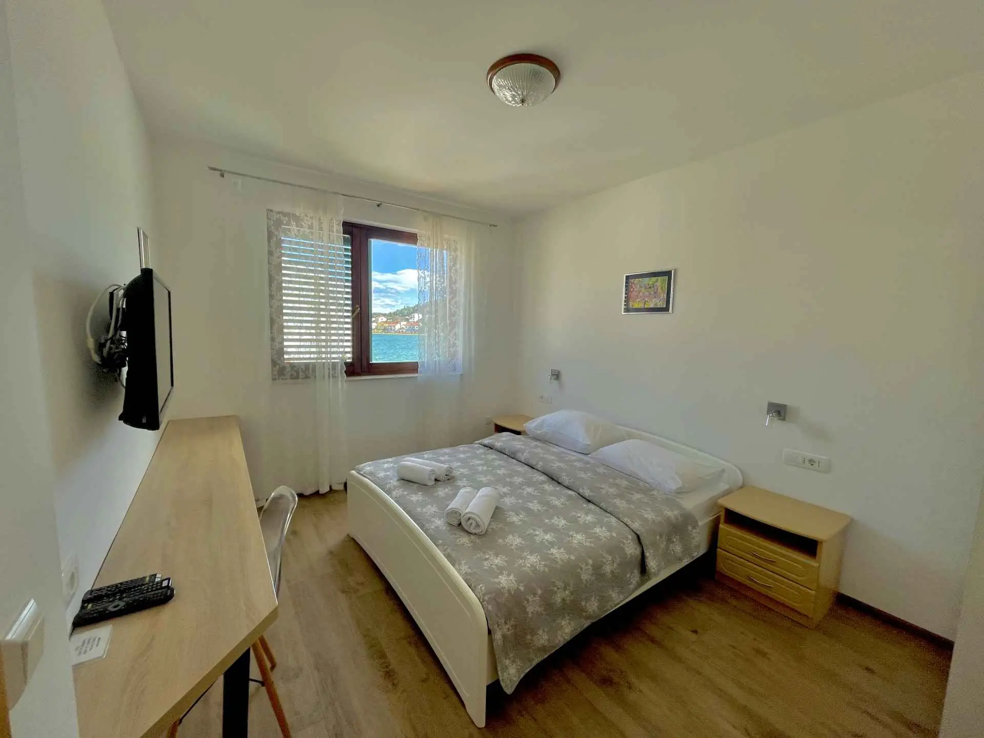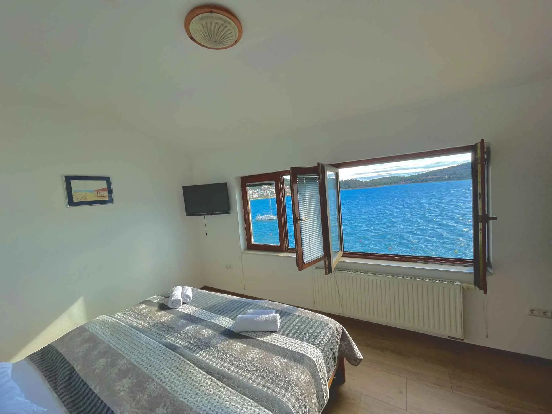 Gli appartamenti Antonio si trovano direttamente sul mare a Tisno. Dispone di camere doppie modernamente arredate, monolocali e un appartamento per 4+1 persone. Gli ospiti possono usufruire del cortile direttamente sul mare, che contiene sdraio e tavoli. È previsto il parcheggio e la possibilità di collegamenti in barca.