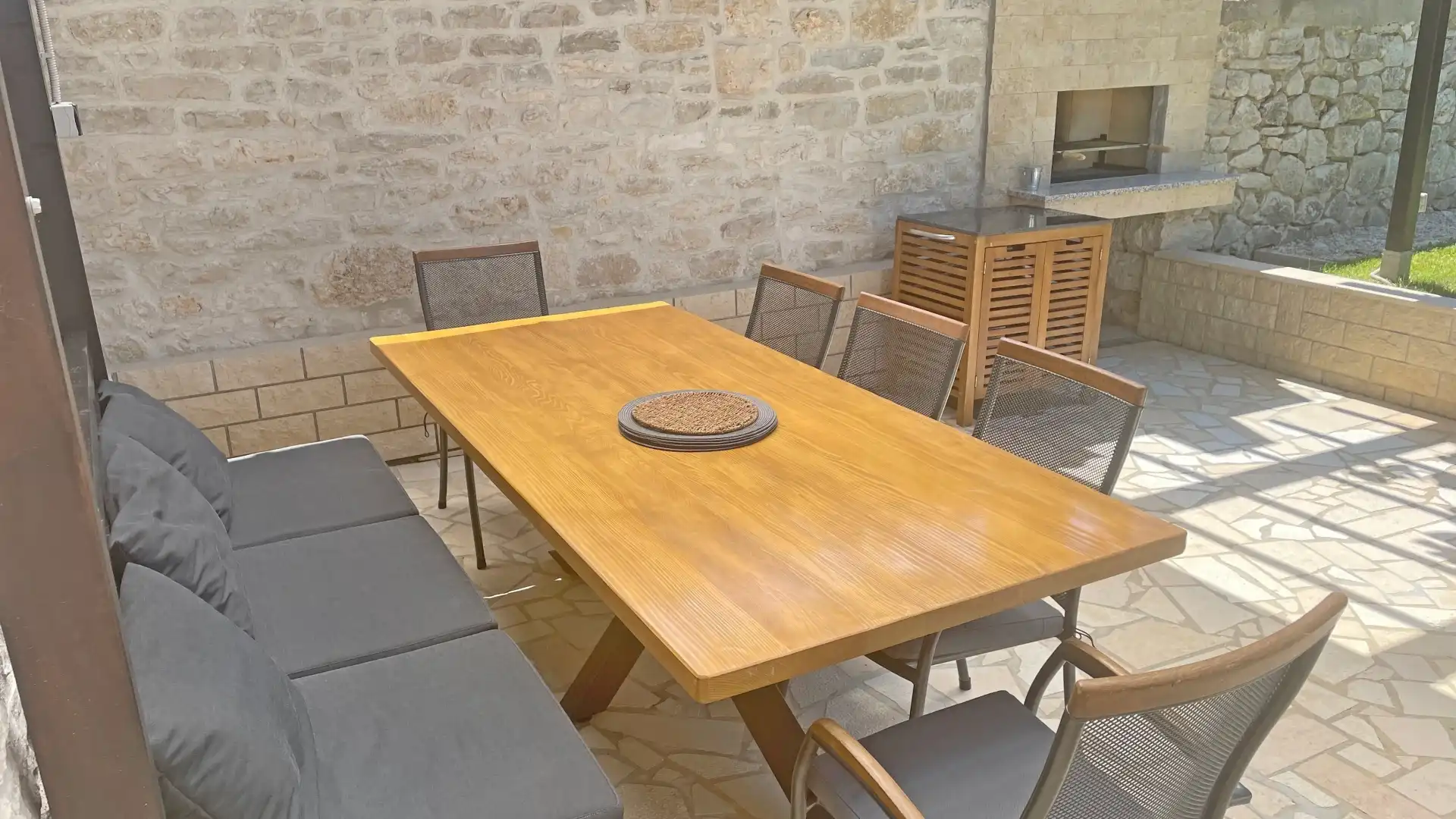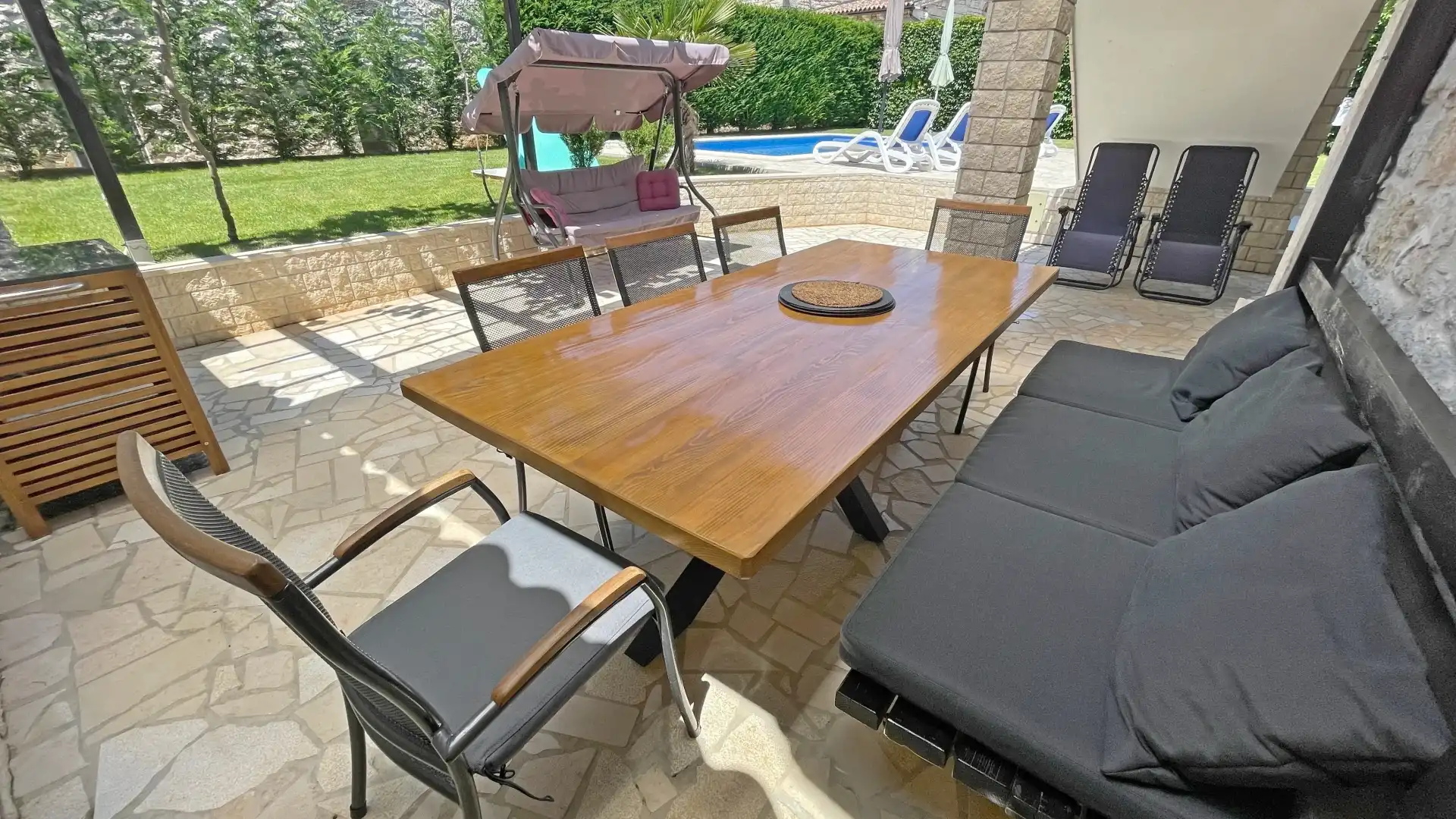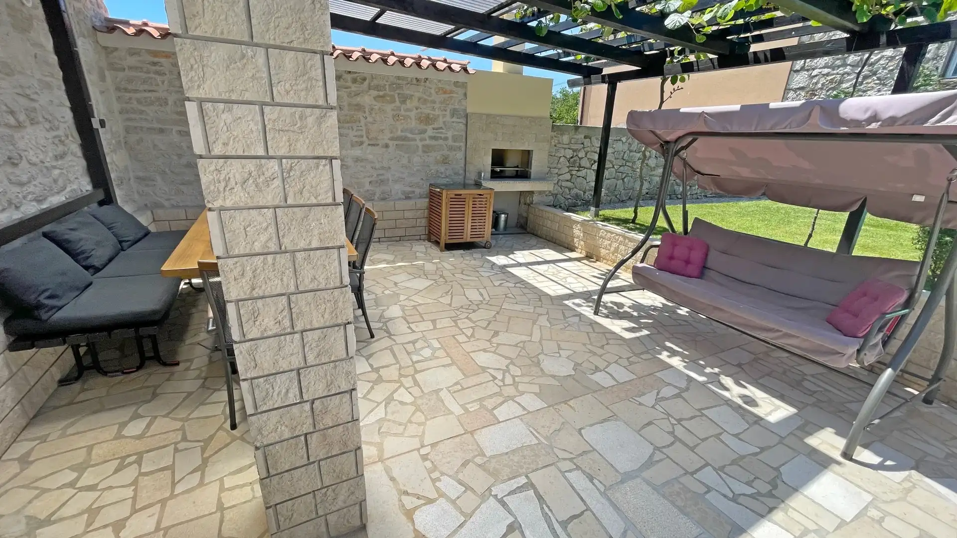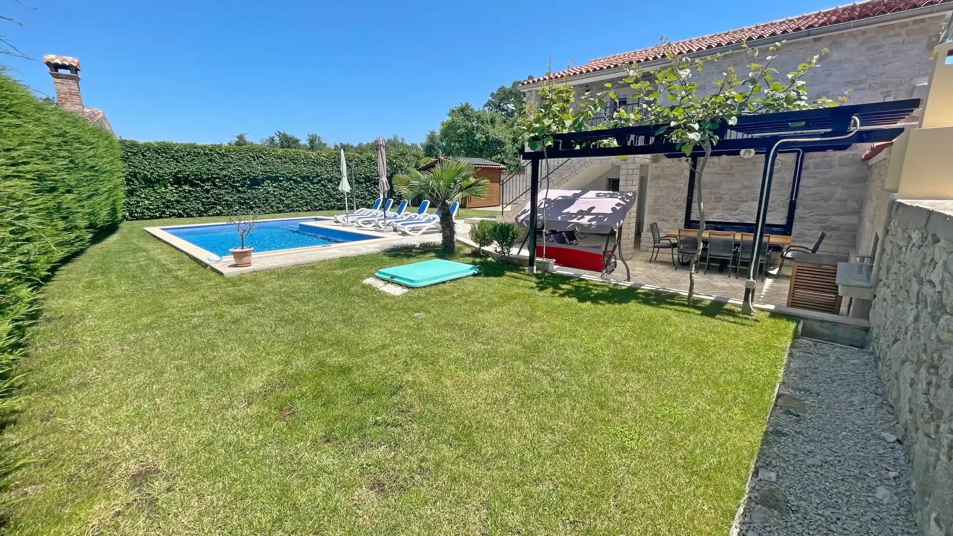 Di recente costruzione in tradizionale stile istriano, questa casa vacanze con piscina si trova a Valkarin, un bellissimo paesino vicino a Parenzo. La spiaggia più vicina e il centro di Parenzo distano circa 4 km. La romantica villa offre tutto il necessario per una vacanza indimenticabile in Istria. È spazioso e arredato in modo confortevole. Con quattro camere da letto, può ospitare fino a otto persone. Le quattro camere da letto hanno due letti matrimoniali e due letti singoli. Inoltre, ci sono tre bagni, una zona soggiorno e pranzo e una cucina molto moderna e completamente attrezzata. È disponibile la connessione Wi-Fi gratuita. Dopo una lunga giornata al mare, la terrazza e la piscina della villa invitano a rilassarsi e prendere il sole. I barbecue possono essere provati sulla griglia all'aperto proprio a bordo piscina. Sono disponibili un parcheggio e un parco giochi per bambini. Anno di ristrutturazione: 2018, Casa indipendente, Proprietà recintata, Il proprietario non abita nella proprietà, Uso privato dell'immobile. Incluso nel prezzo: Tassa di soggiorno, Spese energetiche, Aria condizionata, Lenzuola e asciugamani, Pulizie finali, Internet, Asciugapiatti Nonostante la vicinanza alla località più famosa dell'Istria, Parenzo, la casa offre pace e privacy. E se diventa troppo tranquillo, Parenzo lascia pochi desideri di vacanza insoddisfatti, sia che tu stia viaggiando con la famiglia o con gli amici. Una delle più recenti attrazioni di Parenzo è uno dei migliori e più grandi parchi acquatici della Croazia, l'Aquacolors. C'è musica regolare e dal vivo nella zona.