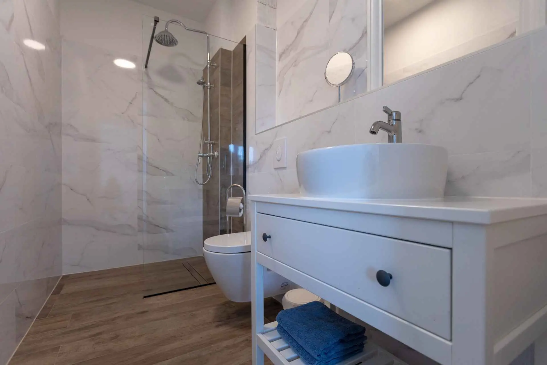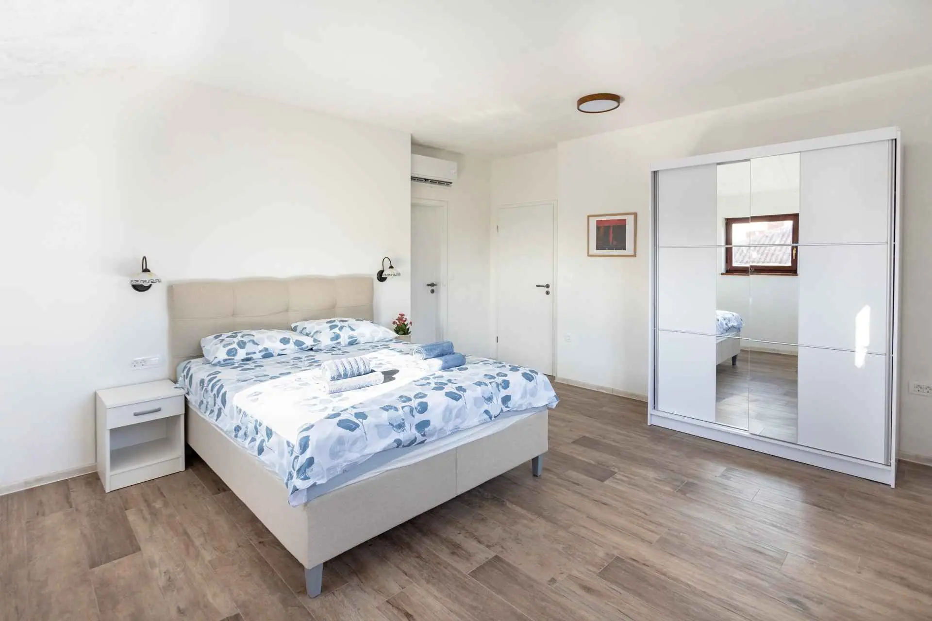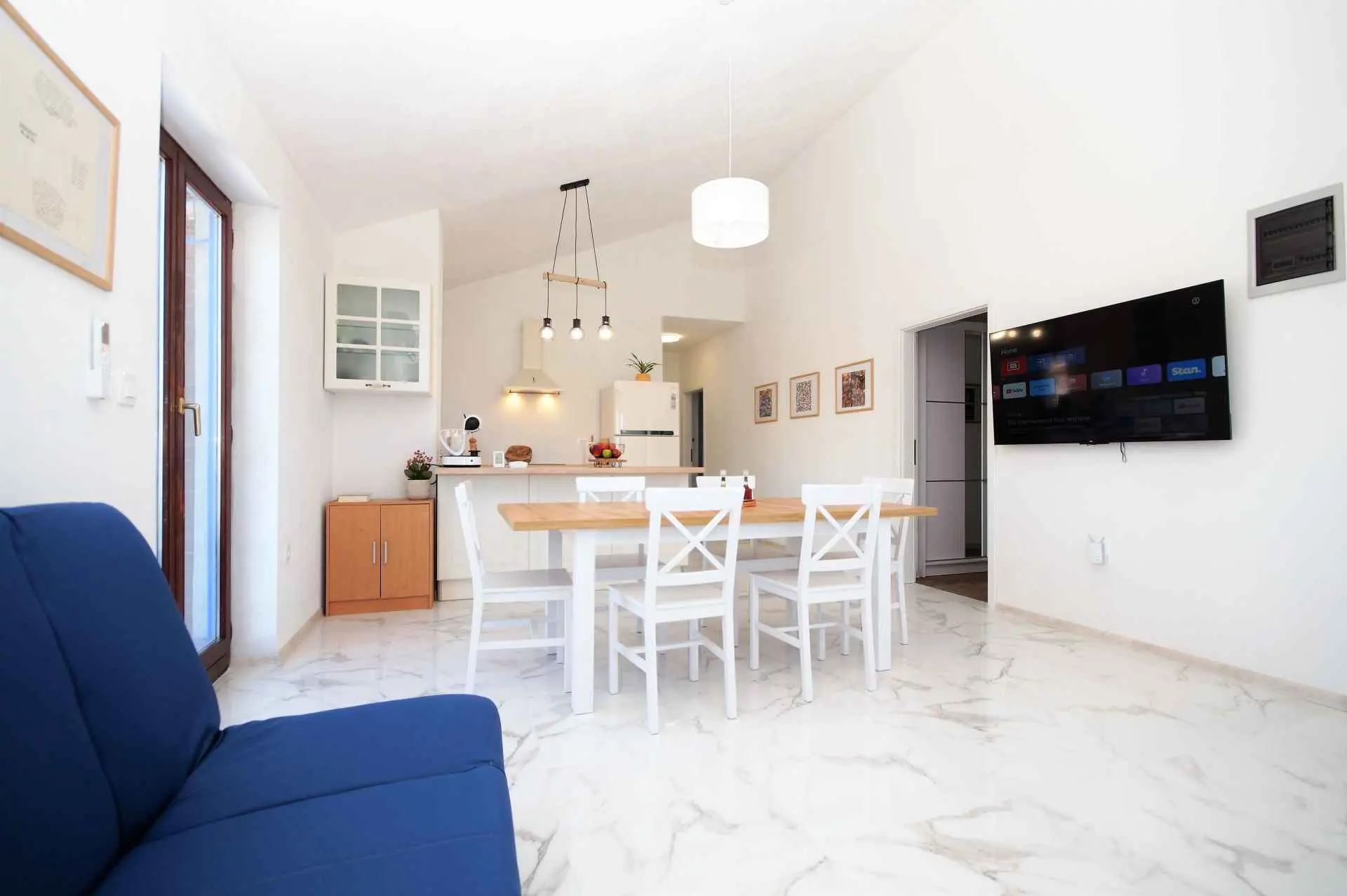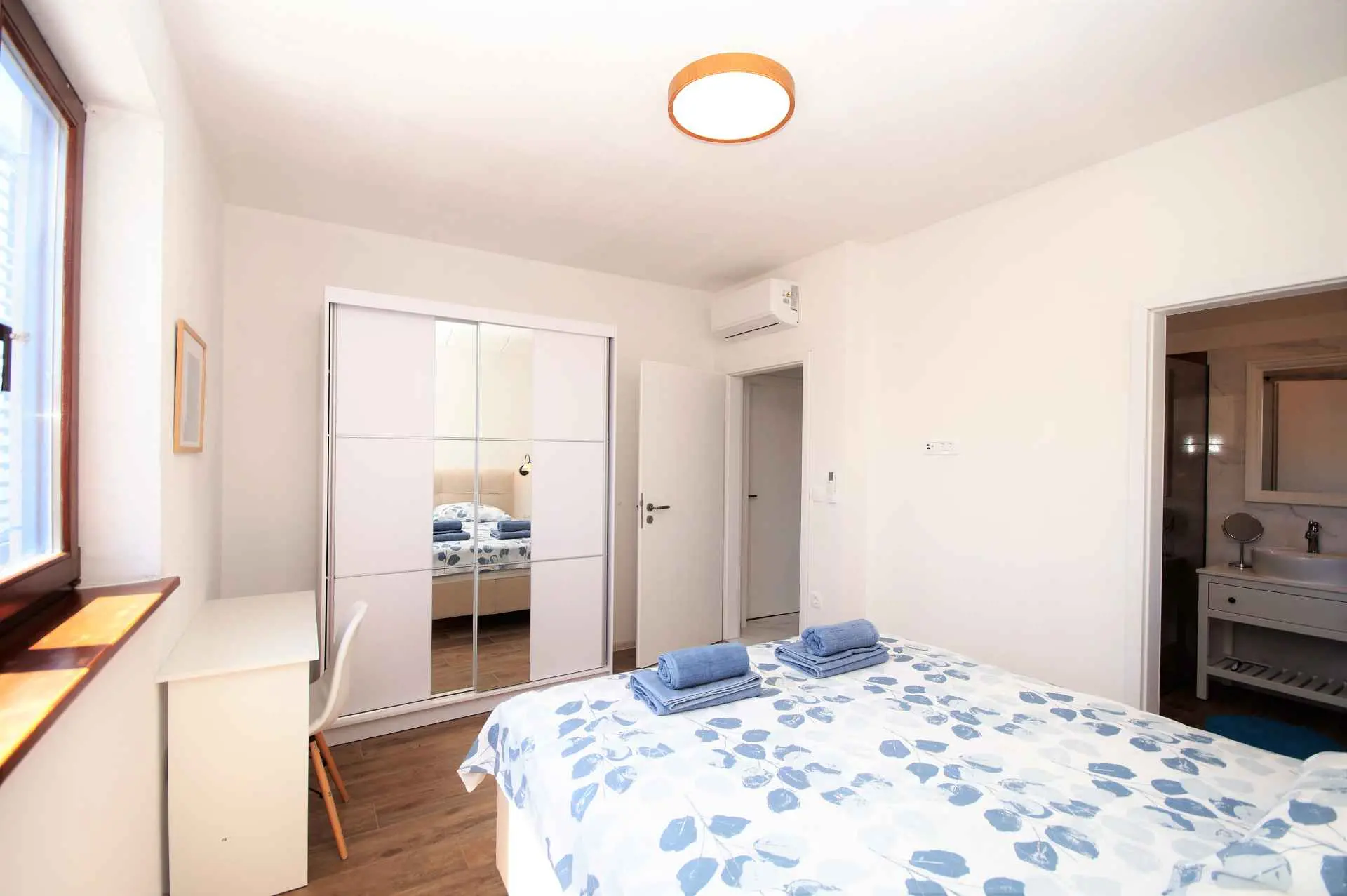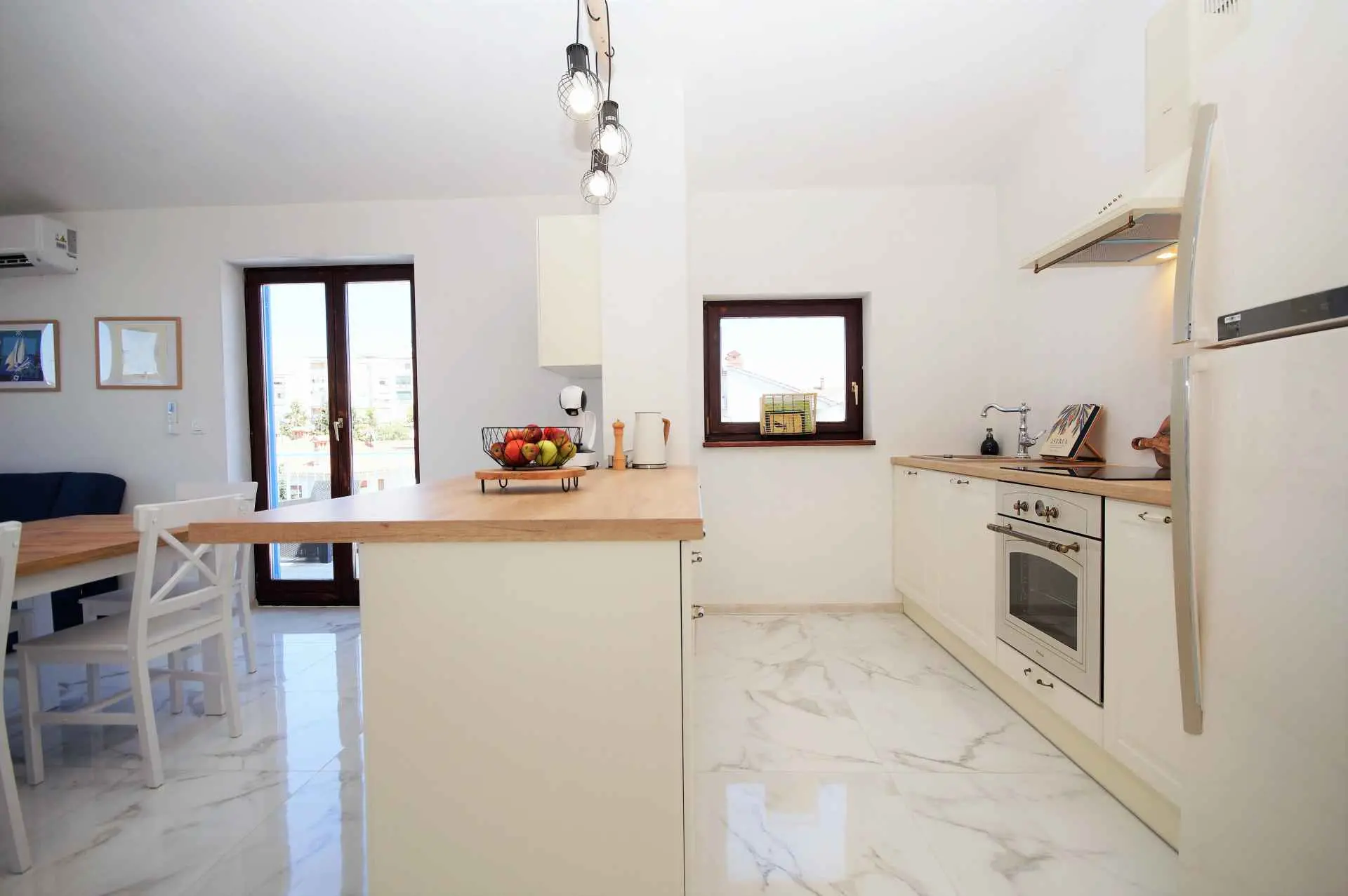 Appartamento attico recentemente ristrutturato in una tradizionale casa familiare, situata in un piccolo vicolo cieco nell'accogliente e storico quartiere di Veruda. Vicino a tutte le migliori spiagge di Pola, il centro città e tutti i musei distano solo 2 km. L'appartamento è completamente ristrutturato di recente. Si compone di tre camere da letto climatizzate, ciascuna con il proprio bagno, un ampio soggiorno con sala da pranzo e cucina, e due bellissimi ampi terrazzi.