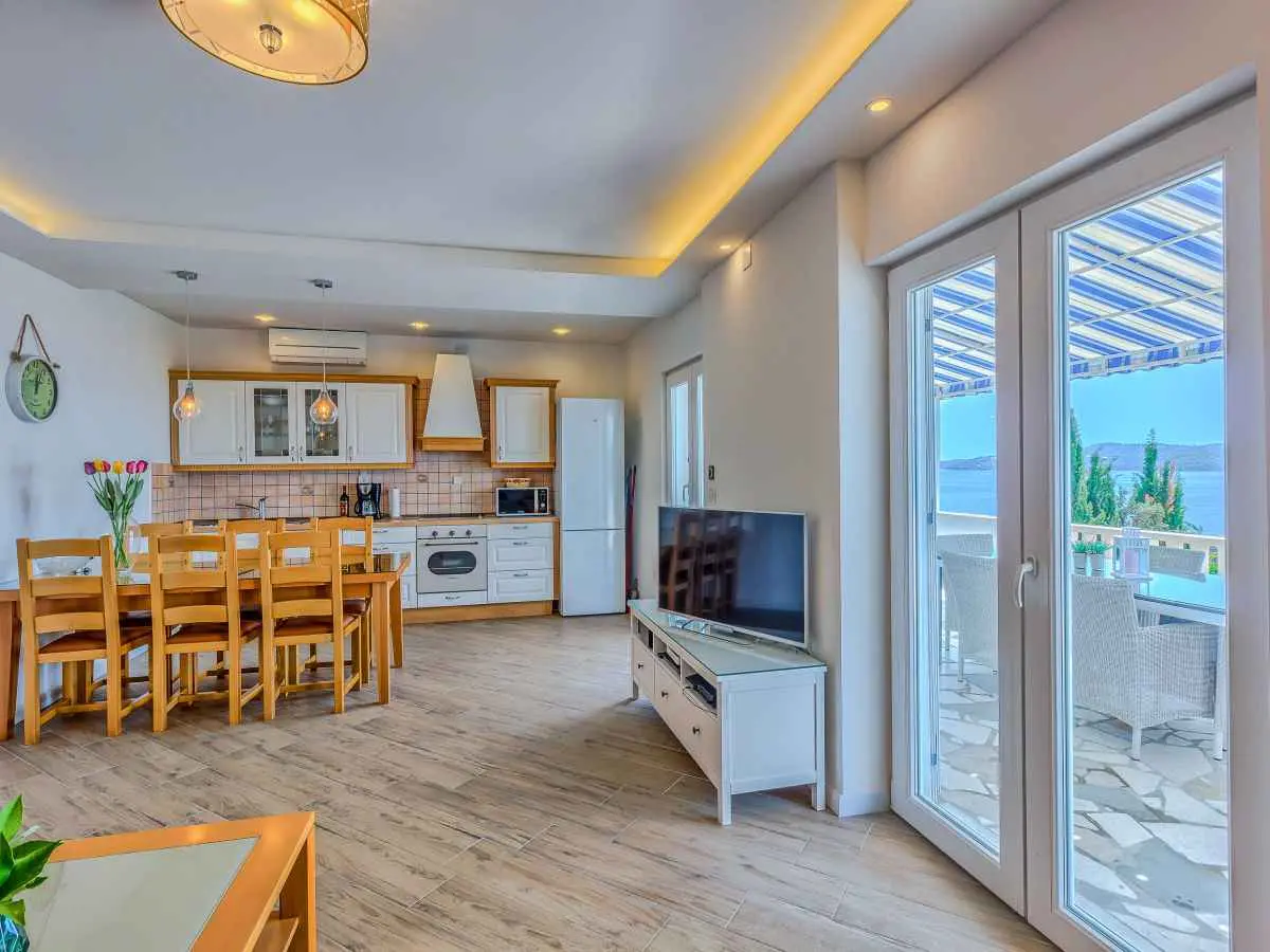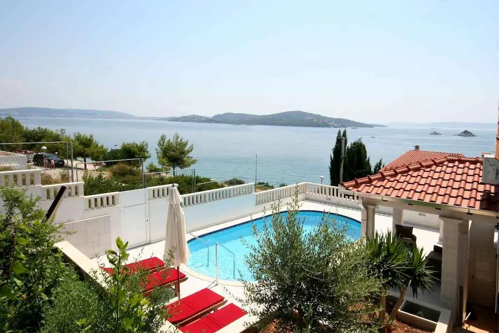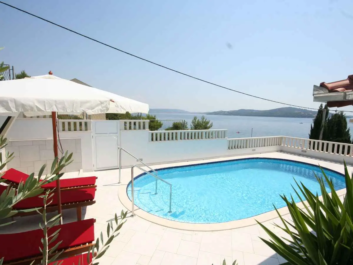 La casa ha un orientamento sud di fronte al mare. Si trova in una zona tranquilla alla fine della strada. Casa vacanze indipendente da 6 persone, a 30 metri dal mare con piscina privata esterna riscaldata. La casa ha accesso diretto alla spiaggia. La piscina esterna riscaldata misura 8x4 m (profondità da 1 a 1,5 metri). Avviso: IL TURNOVER DEGLI OSPITI avviene solo il sabato (Check-in e Chack-out solo il sabato). La prenotazione minima è di 7 giorni. La casa NON È IN AFFITTAZIONE dal 1 novembre al 31 marzo. La piscina è ad uso esclusivo degli ospiti. La proprietà ha una grande terrazza di 35 mq e una terrazza con piscina di 50 mq con splendida vista sul mare. 6 persone dormono in 3 camere da letto. La camera da letto numero uno si trova al primo piano e dispone di un letto matrimoniale. La camera da letto numero due si trova al primo piano e ha due letti singoli. La camera da letto numero tre ha un letto matrimoniale ed è dotata di doccia e servizi igienici privati. Si trova al piano terra ed ha un ingresso indipendente dall'esterno. Tutte e tre le camere hanno i propri dispositivi di climatizzazione separati. Parcheggio coperto per 2 auto nel cortile della proprietà. La casa si trova a Seget Vranjica che dista 5 km da Trogir e 30 km dalla città di Spalato. L'aeroporto più vicino è l'aeroporto di Spalato a 12 km. Ogni camera da letto e soggiorno dispone di un dispositivo di aria condizionata separato. Il numero totale di dispositivi di climatizzazione è 4. Sarai solo in casa, i proprietari vivono in un'altra casa a Solin (Spalato) a 30 km di distanza. A disposizione degli ospiti 4 biciclette gratuitamente (2 per adulti e 2 per bambini)