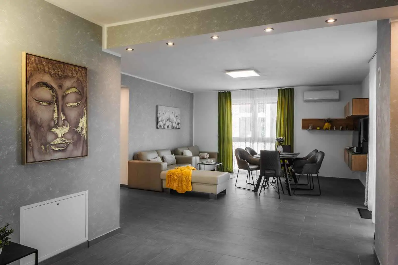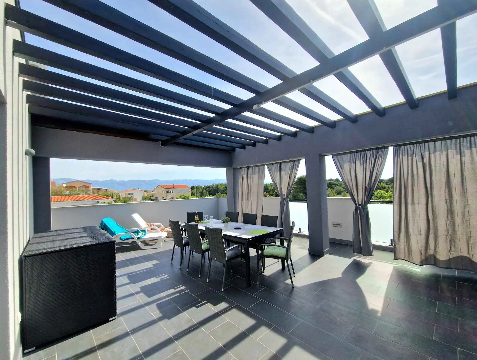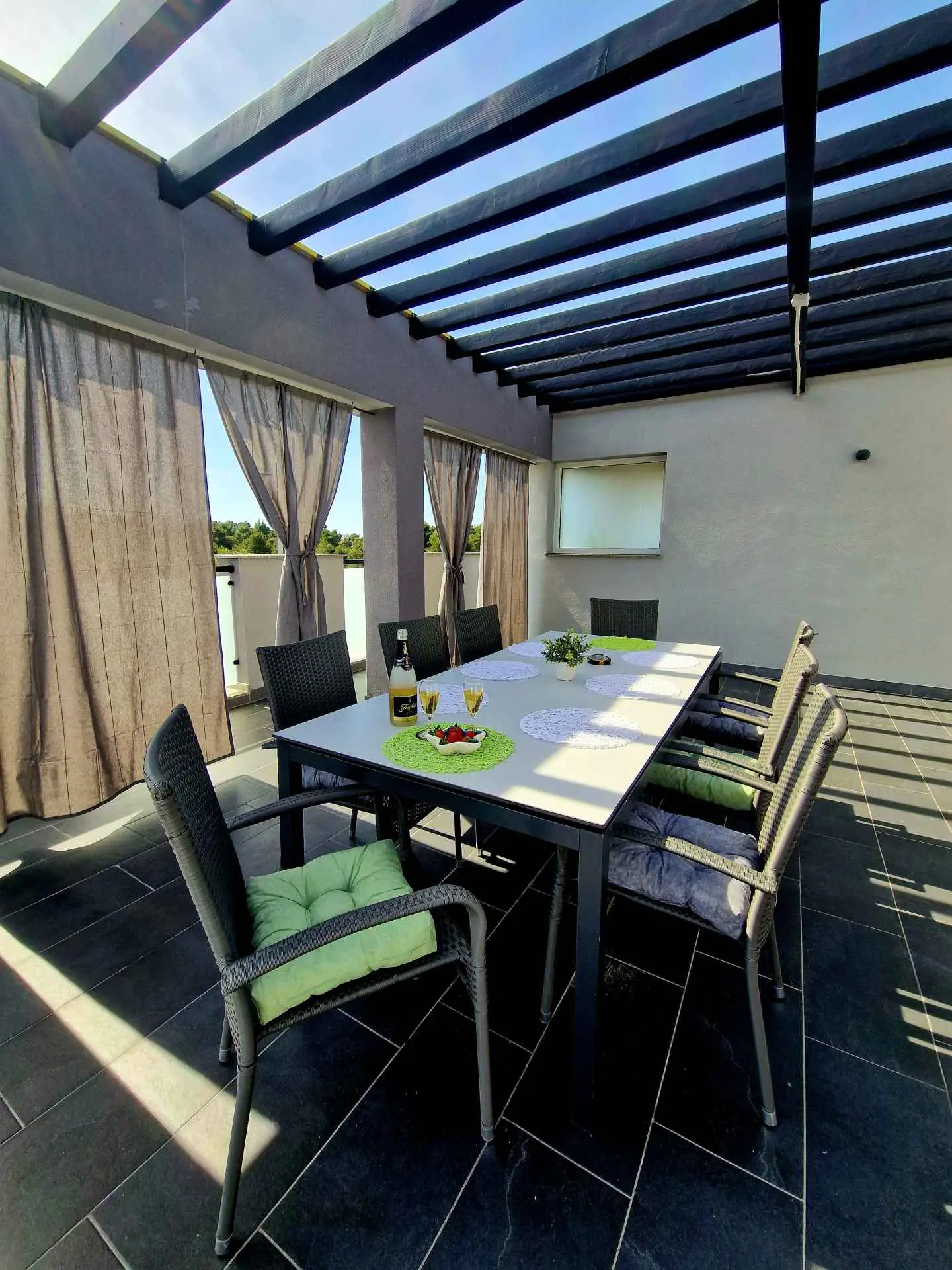 Cari ospiti, benvenuti in una delle 300 isole dell'arcipelago di Zara, un luogo che dista solo 20 km dall'antica città dalmata di Zara, con il lato settentrionale rivolto verso l'isola di Pag, il mitico monte Velebit e la storica città di Nona - l'isola Vir. Dalle numerose spiagge e calette ai centri di intrattenimento, l'isola offre qualcosa per tutti. I nostri appartamenti sono situati in una zona tranquilla a soli 400 metri dalla spiaggia di Zitna. Offriamo 2 appartamenti, ciascuno di 100 m² con terrazza di 50 m².